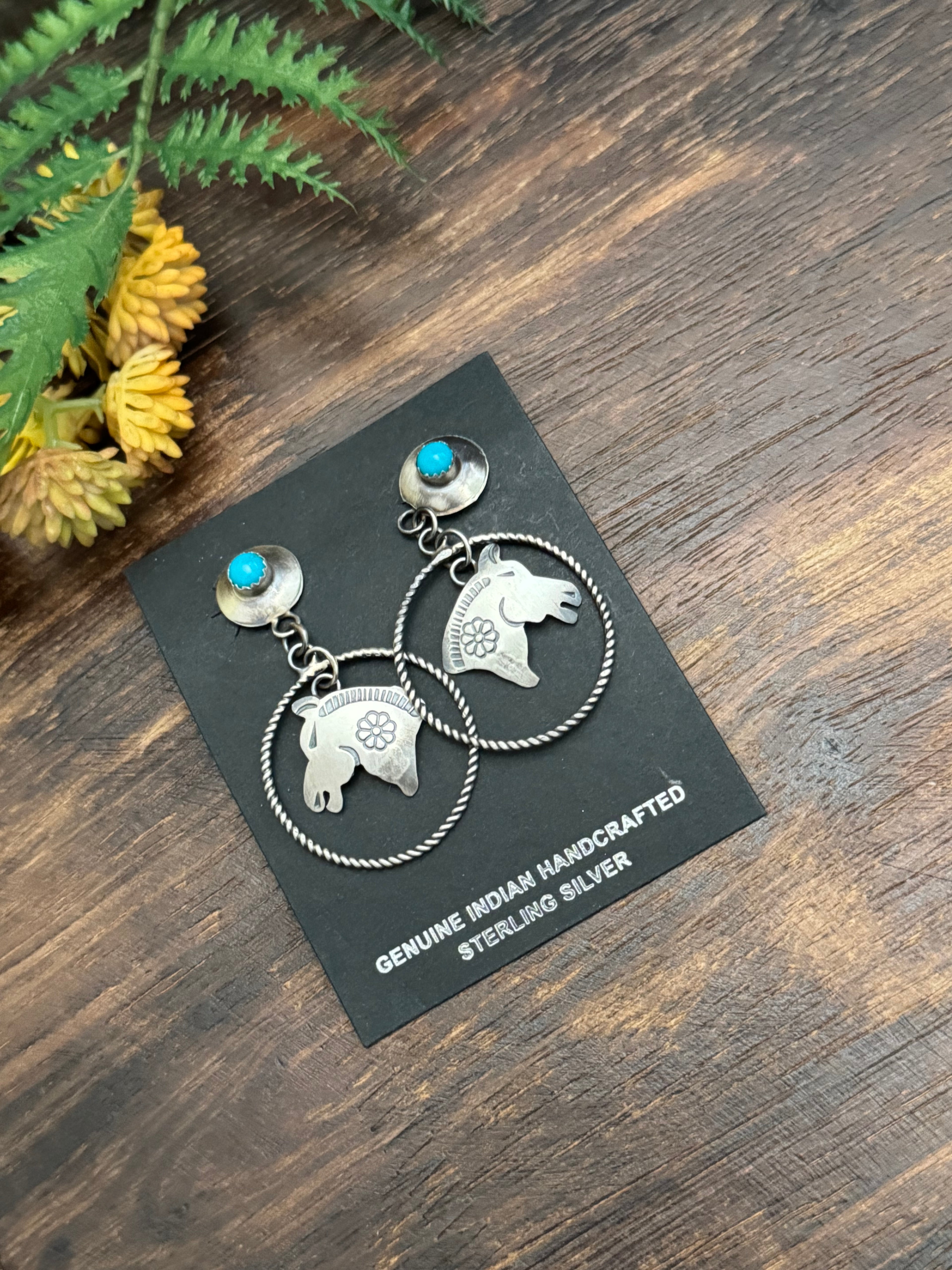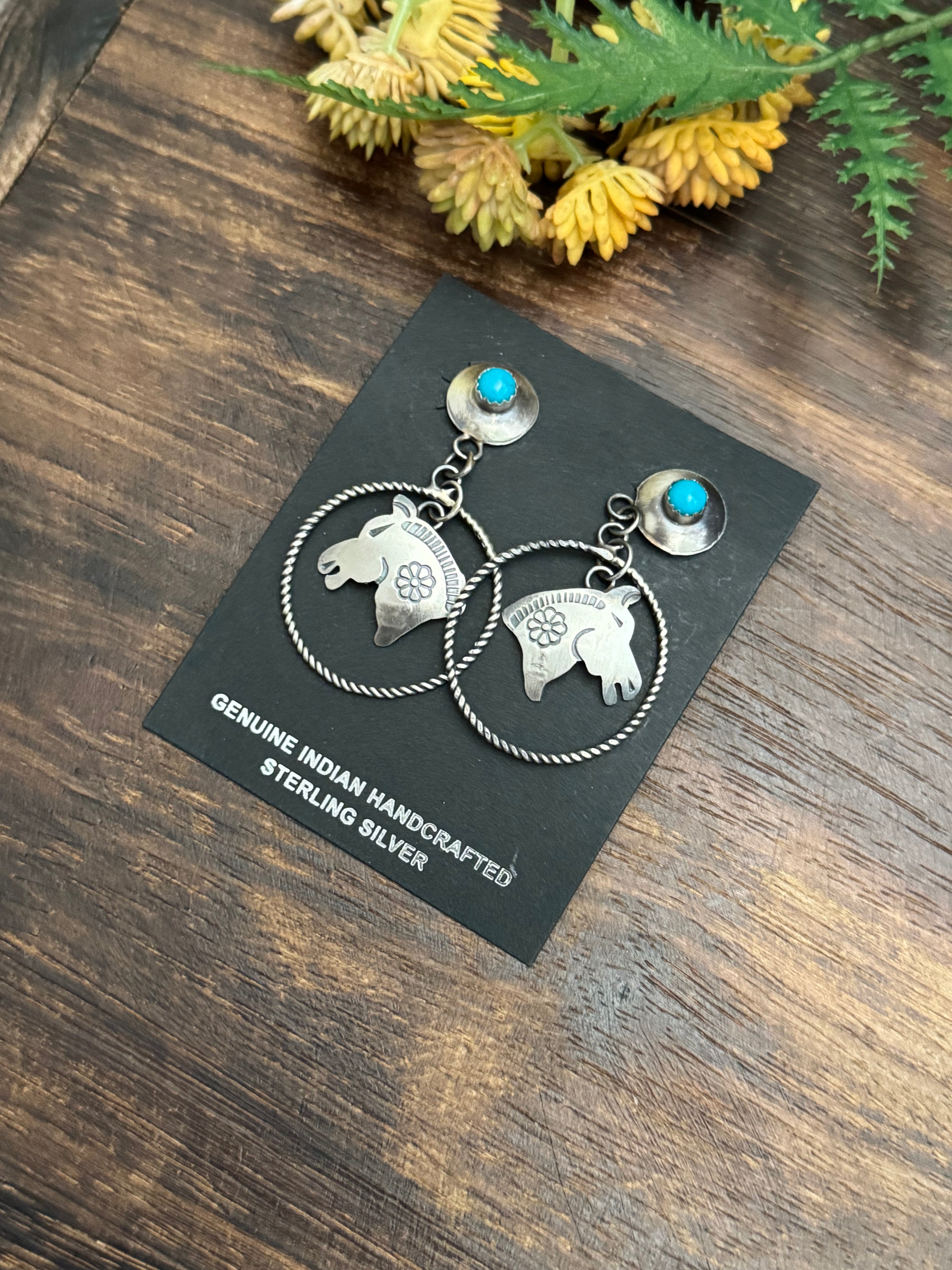 Tim Yazzie Kingman Turquoise & Sterling Silver Post Dangle Concho Earrings