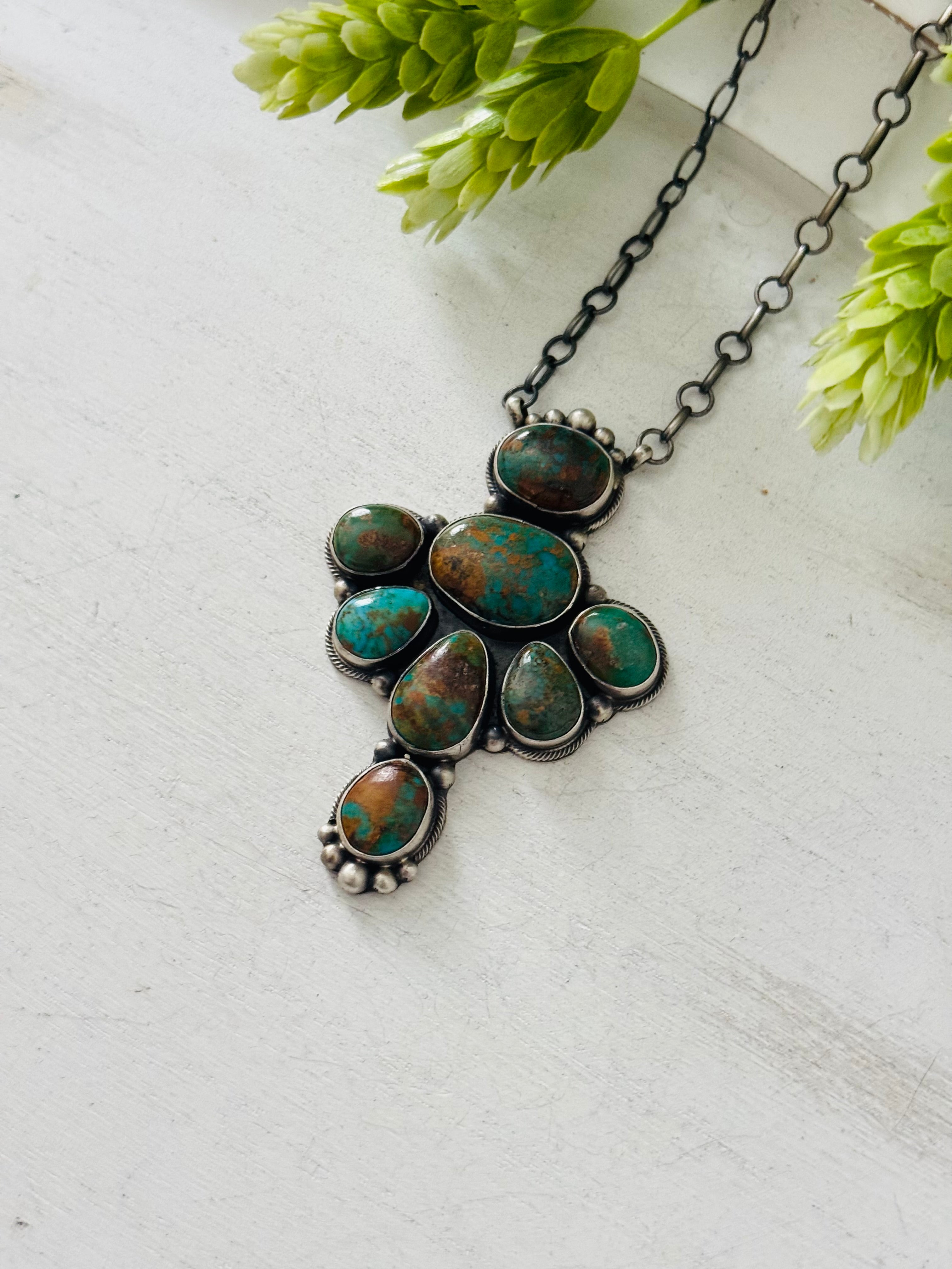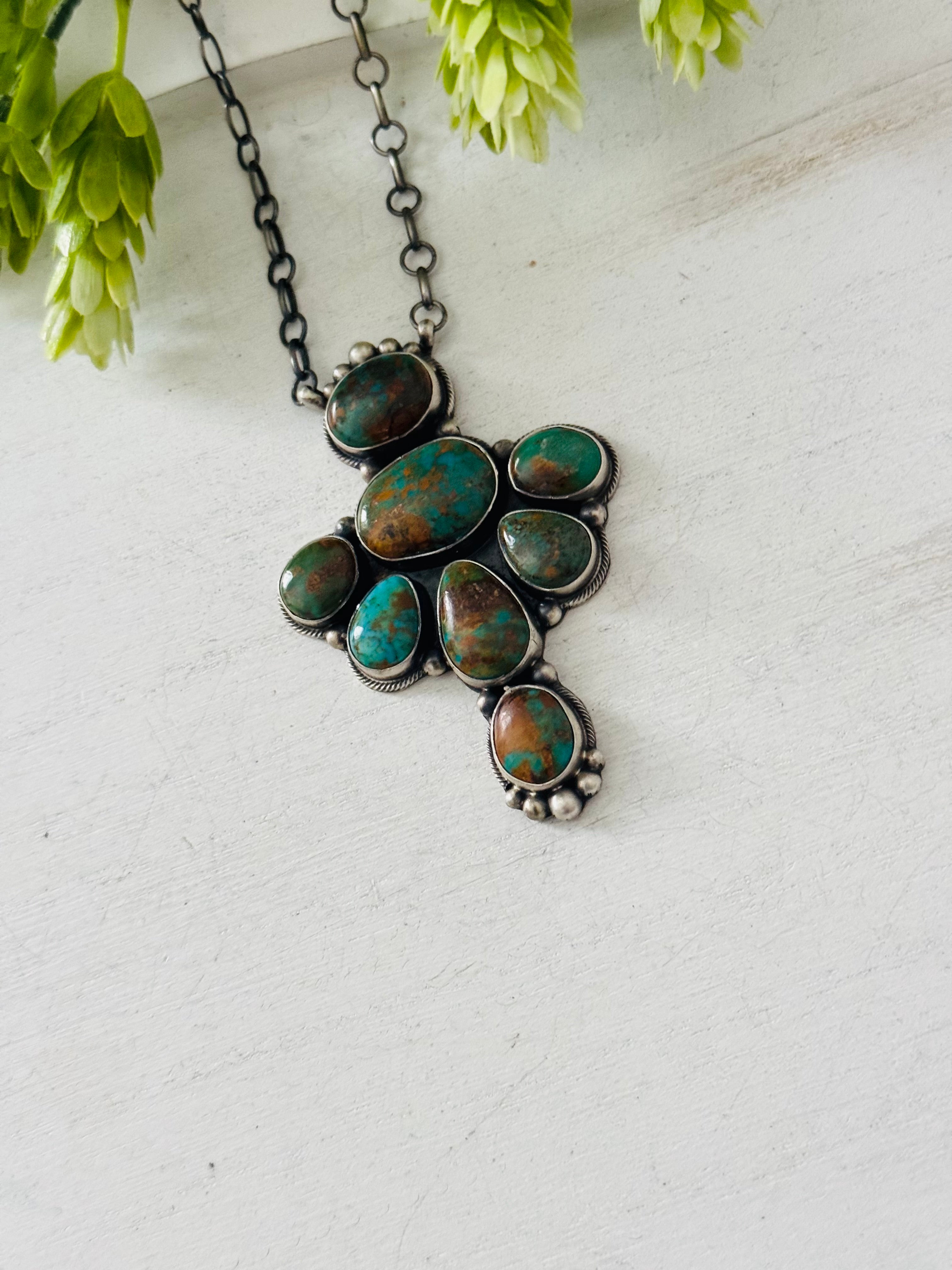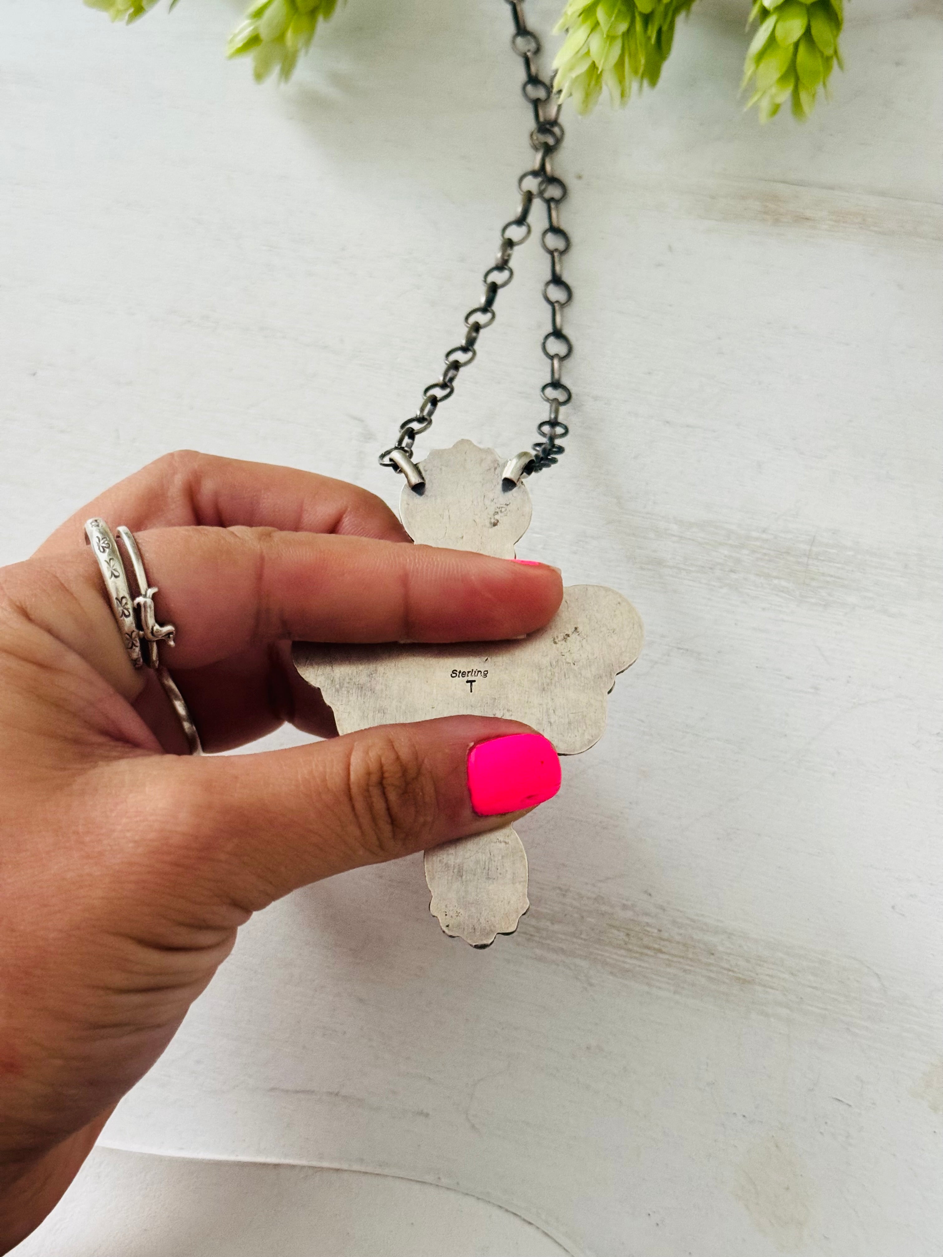 Beautiful Necklace. Timothy Yazzie Royston Turquoise & Sterling Silver Necklace. It measures 24 inches long with hang while the chain measures 18 inches long. Signed by the artist and stamped sterling silver.