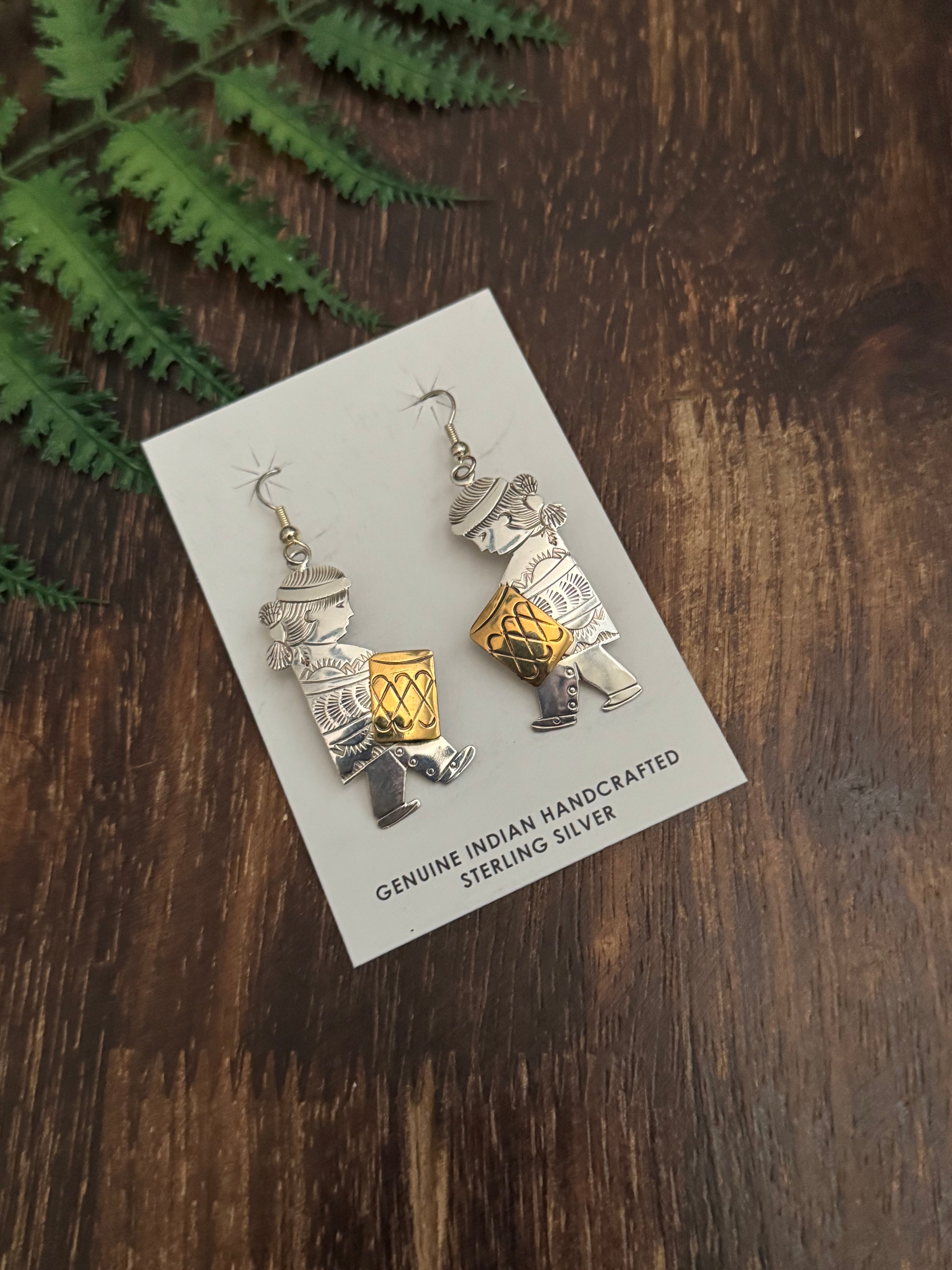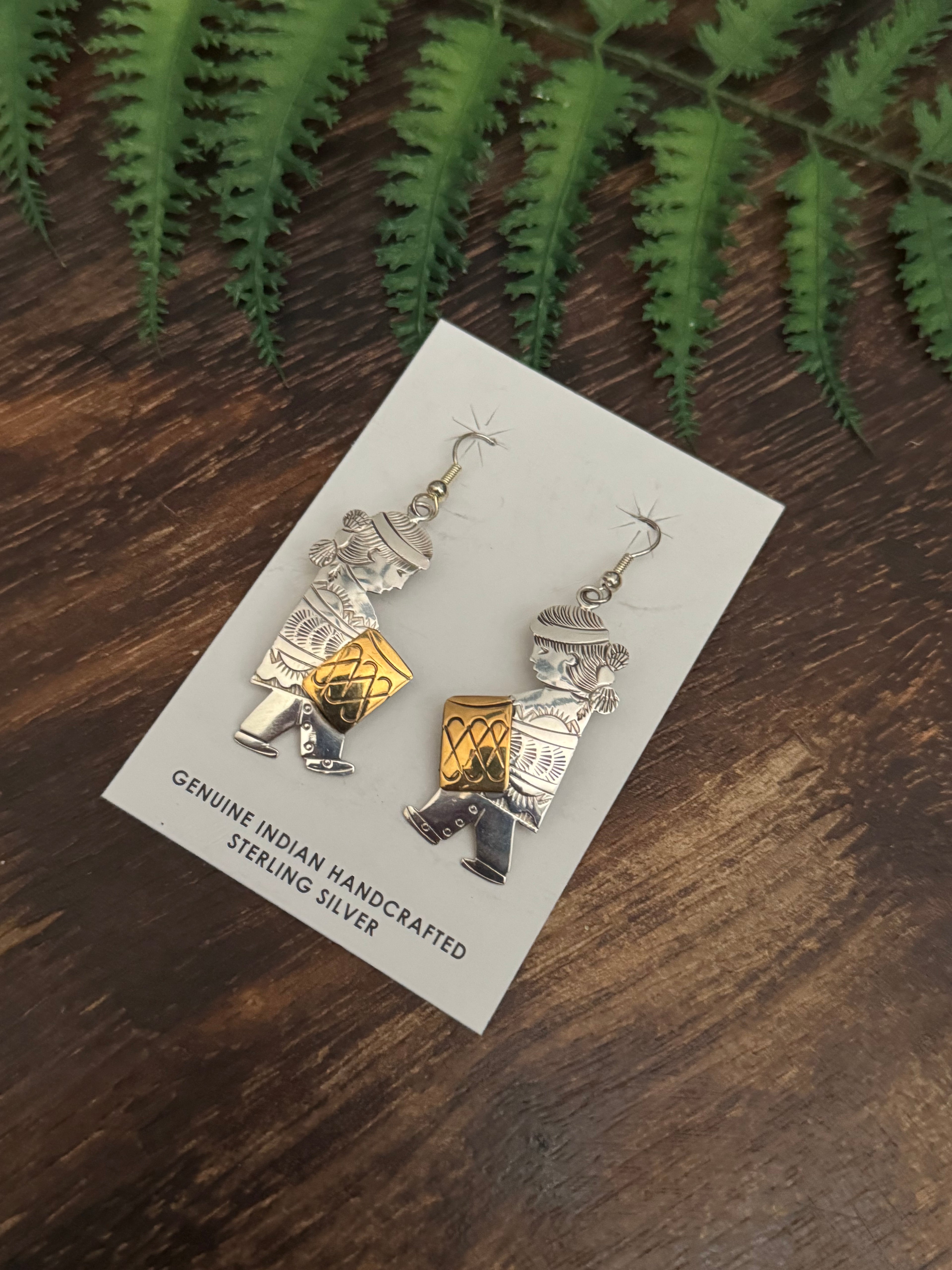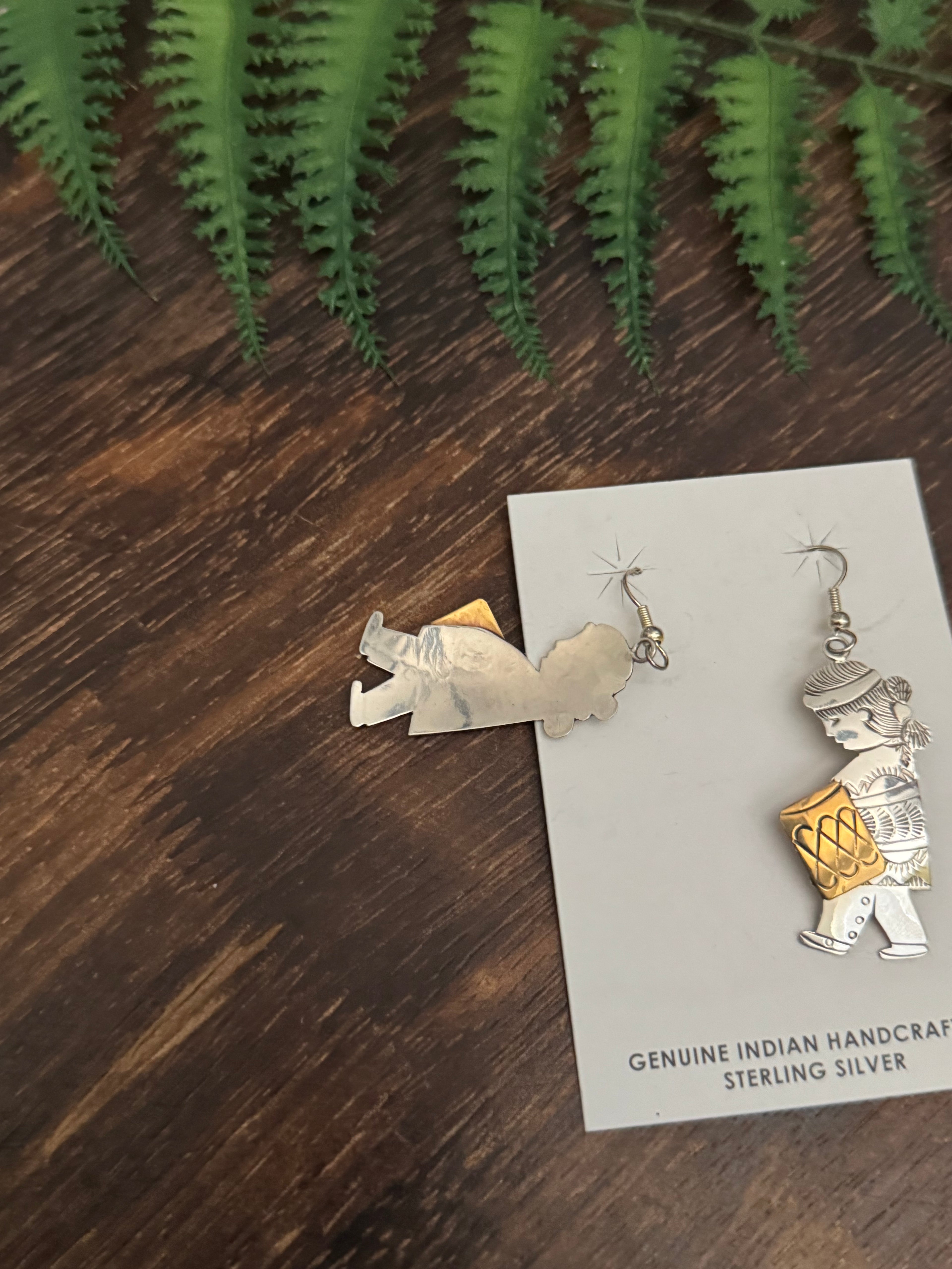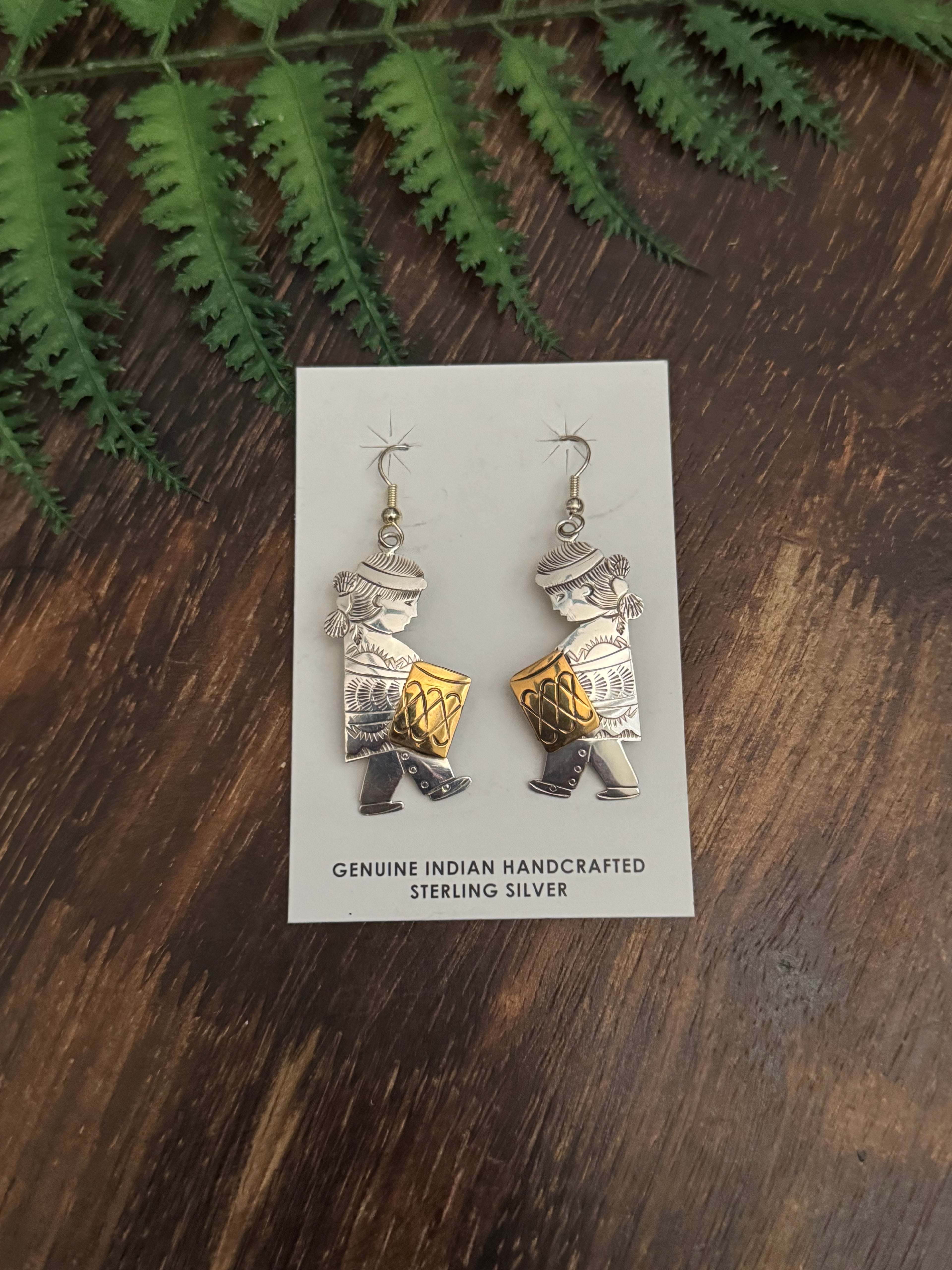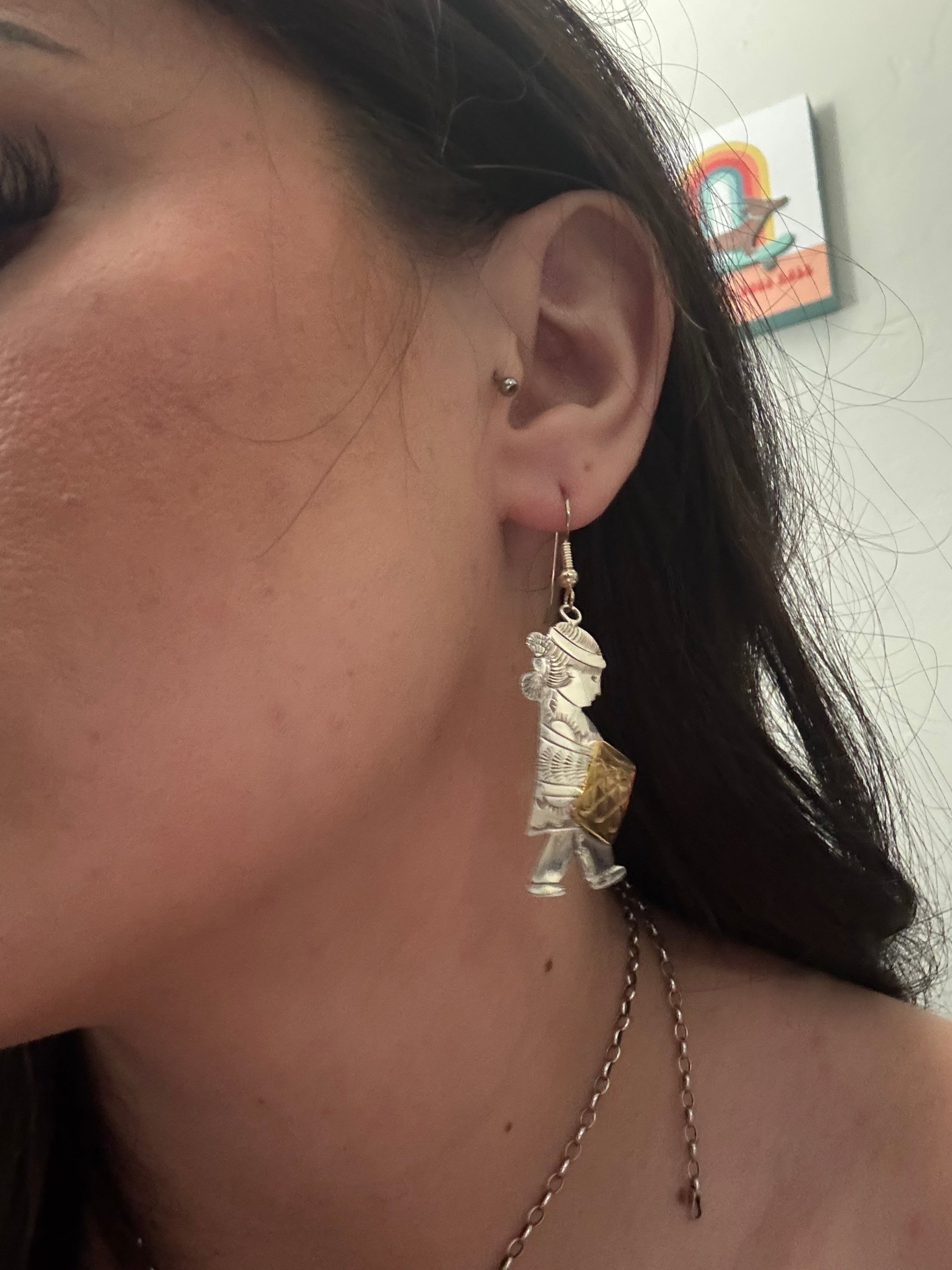Bob Becenti Sterling Silver Dangle Earrings. It measures 2 3/8 inches long and 3/4 of an inch wide. Stamped and signed