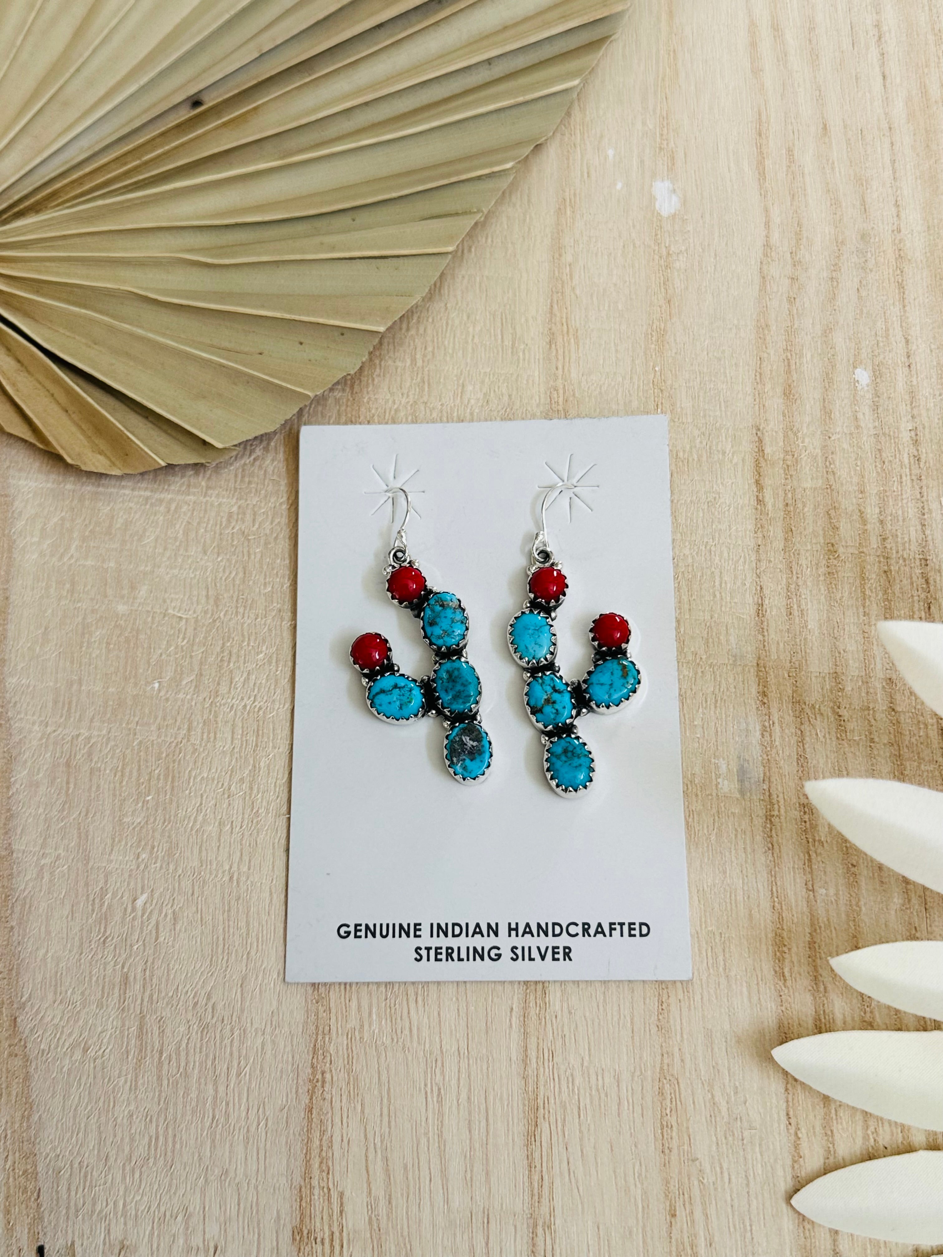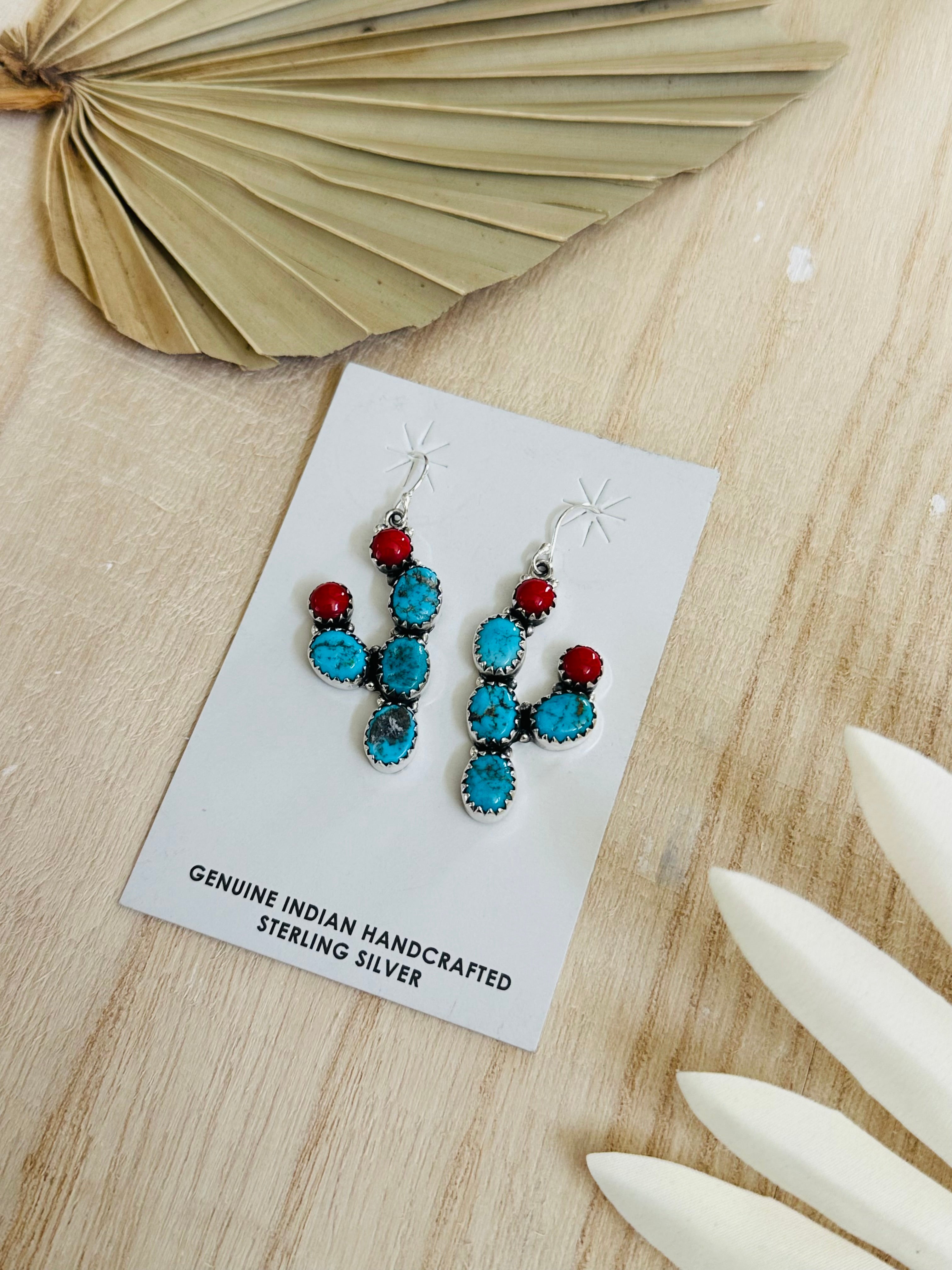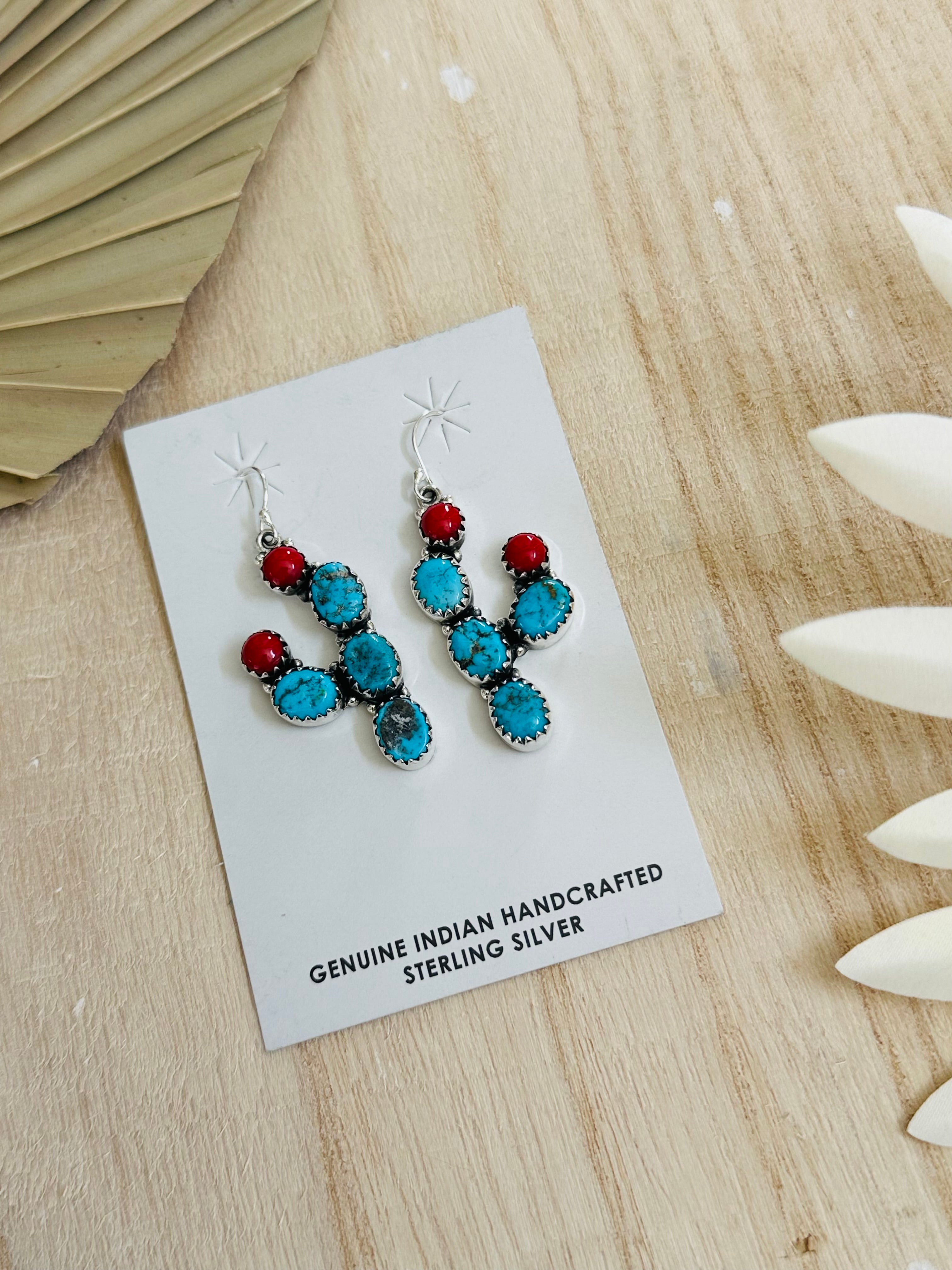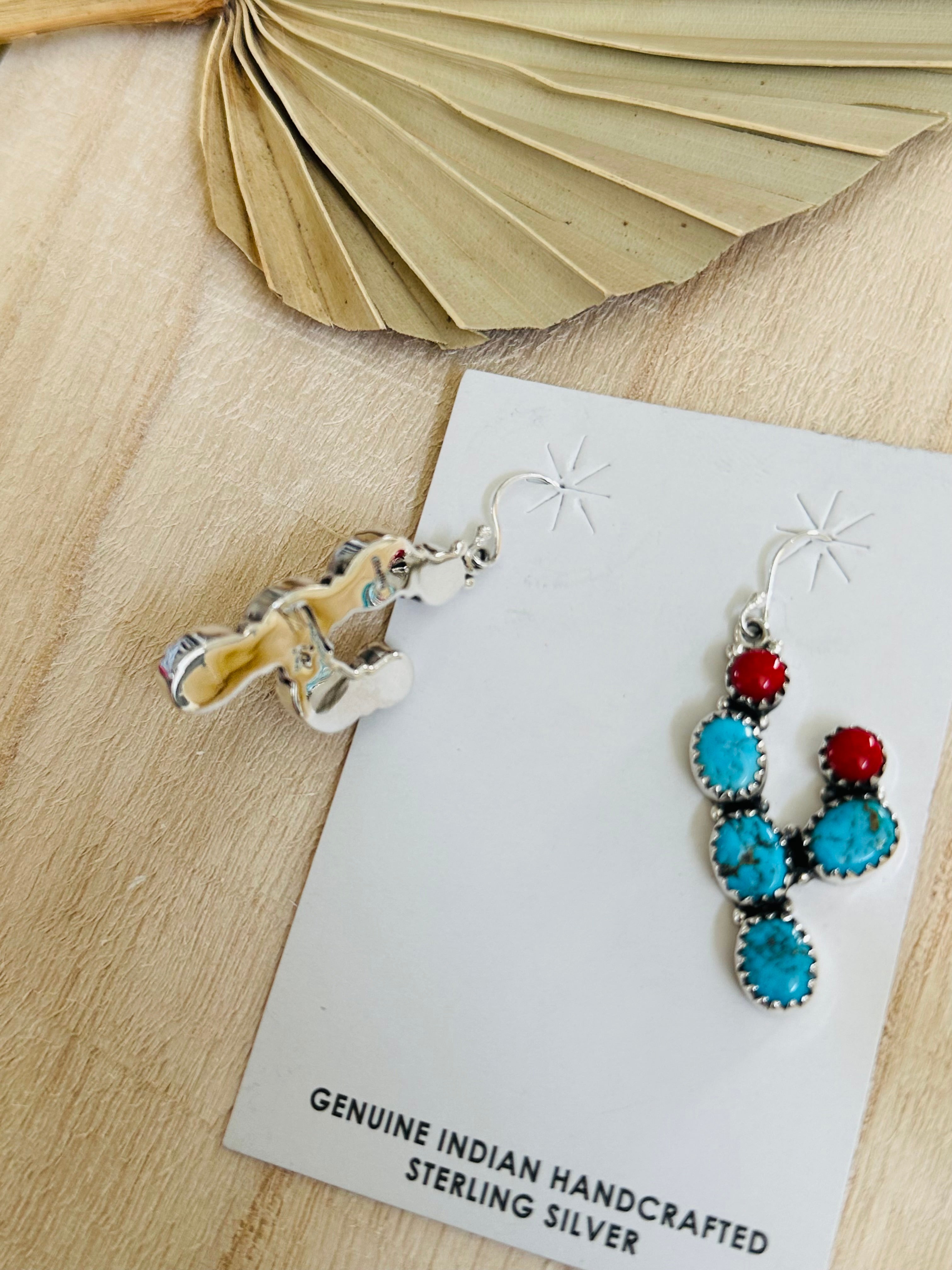 Tony Yazzie Multi Stone & Sterling Silver Cluster Earrings. It measures 2 inches long and 3/4 of an inch wide!! Signed by the artist and stamped sterling silver. Stones will differ due to natural stones.