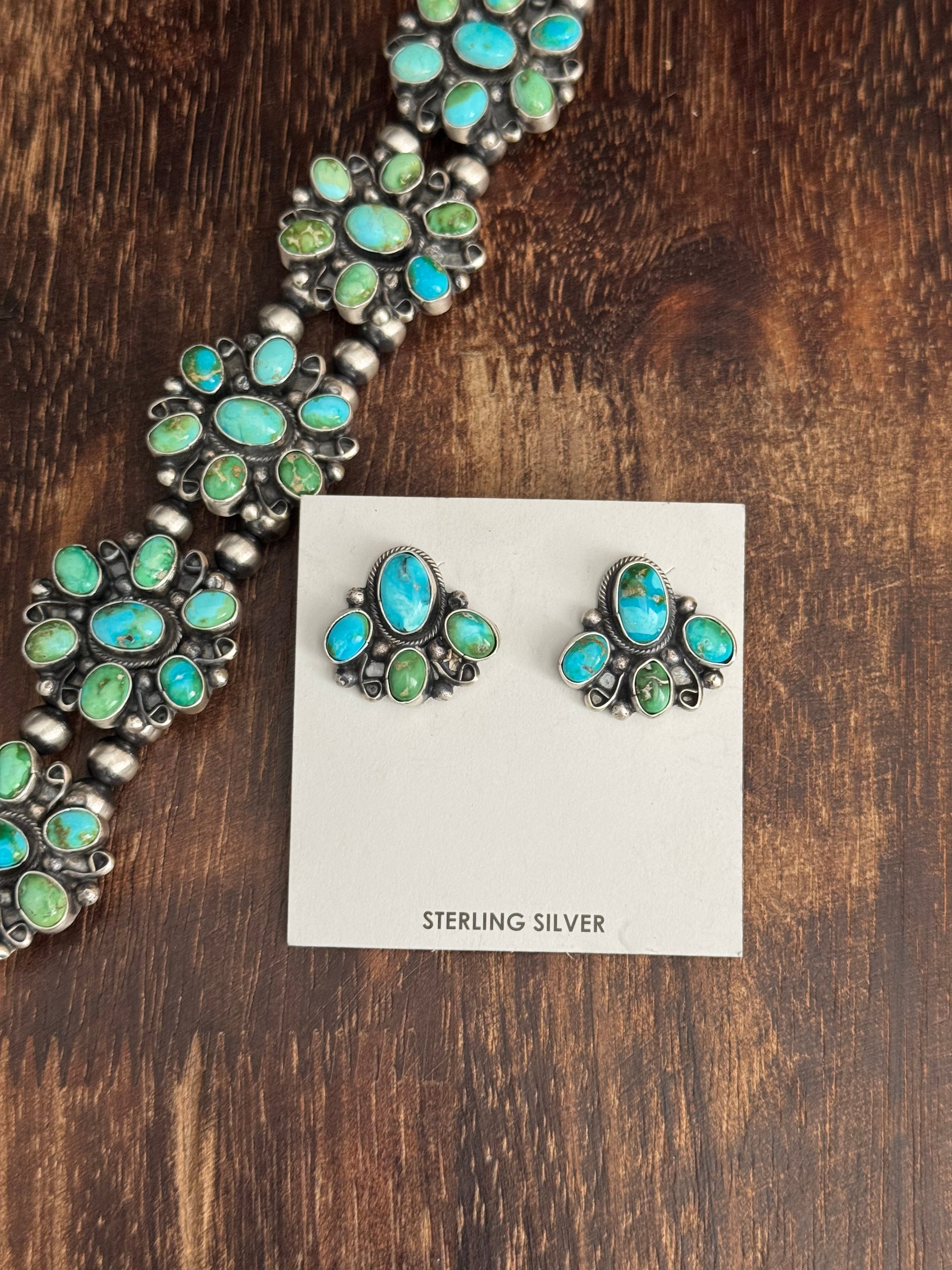 Travis J. Sonoran Mountain Turquoise & Sterling Silver Cluster Squash Necklace Set