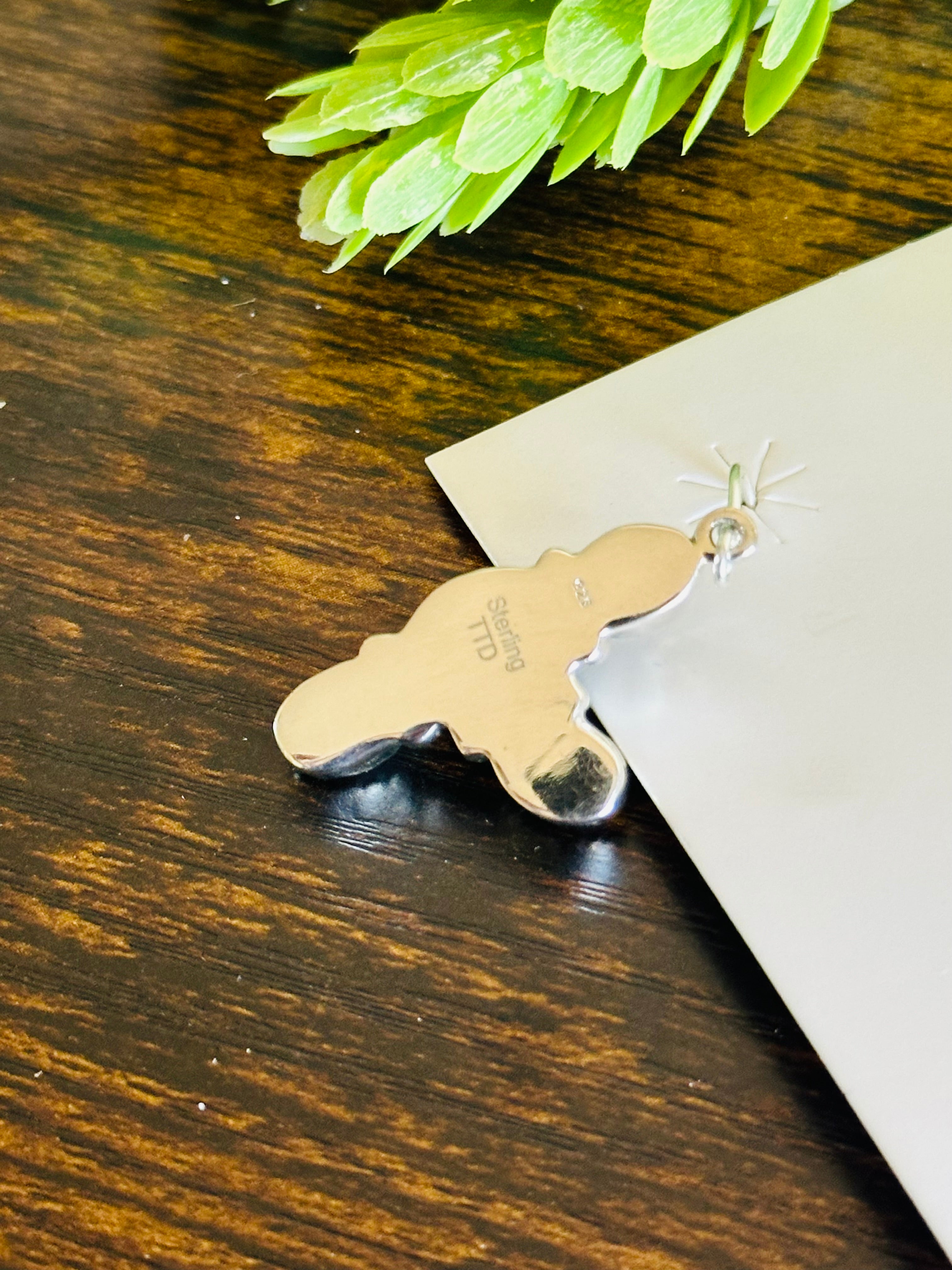 Adorable earrings. Southwest Handmade Peruvian Pink Opal & Sterling Silver Dangle Earrings. It measures 1 5/8 inches long and 5/8 of an inch wide. Signed by the artist and stamped sterling silver. Stones will differ due to natural stones.