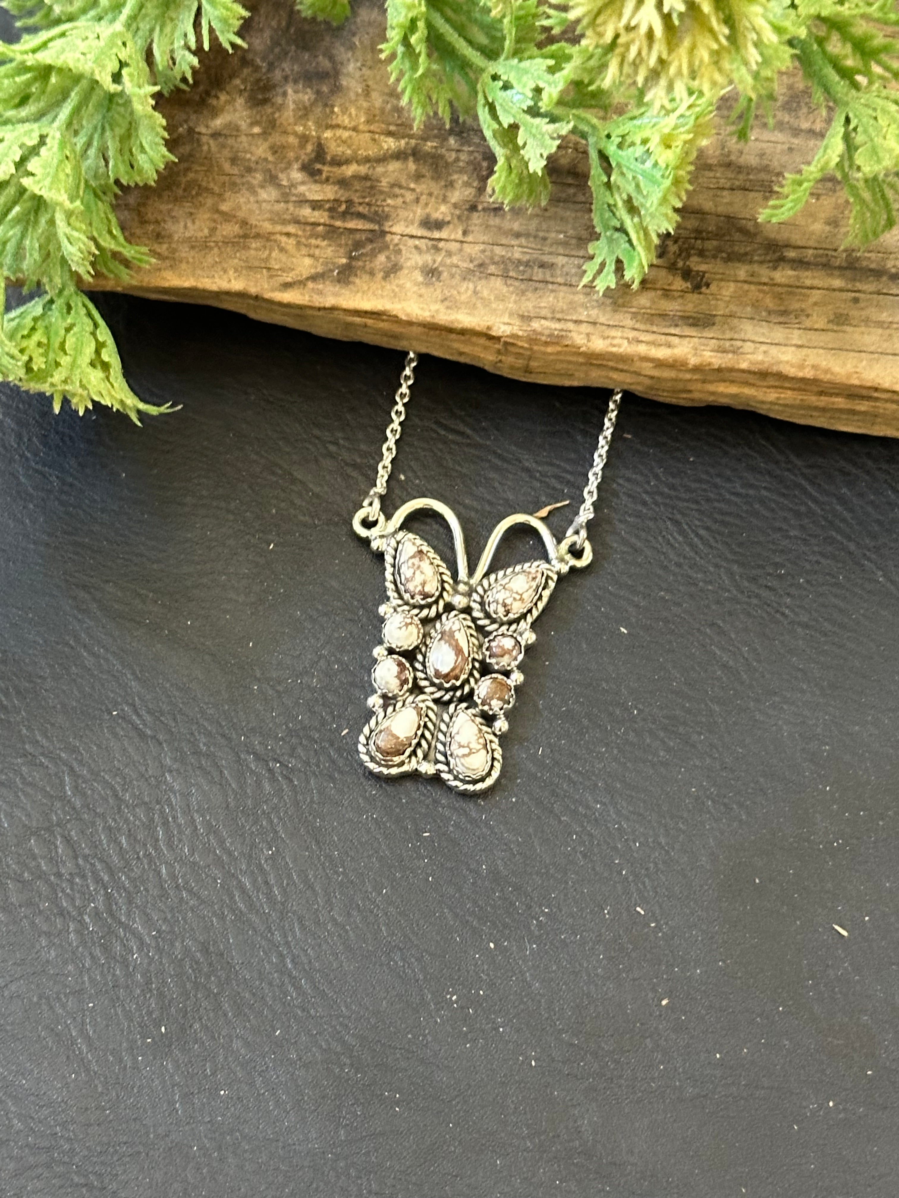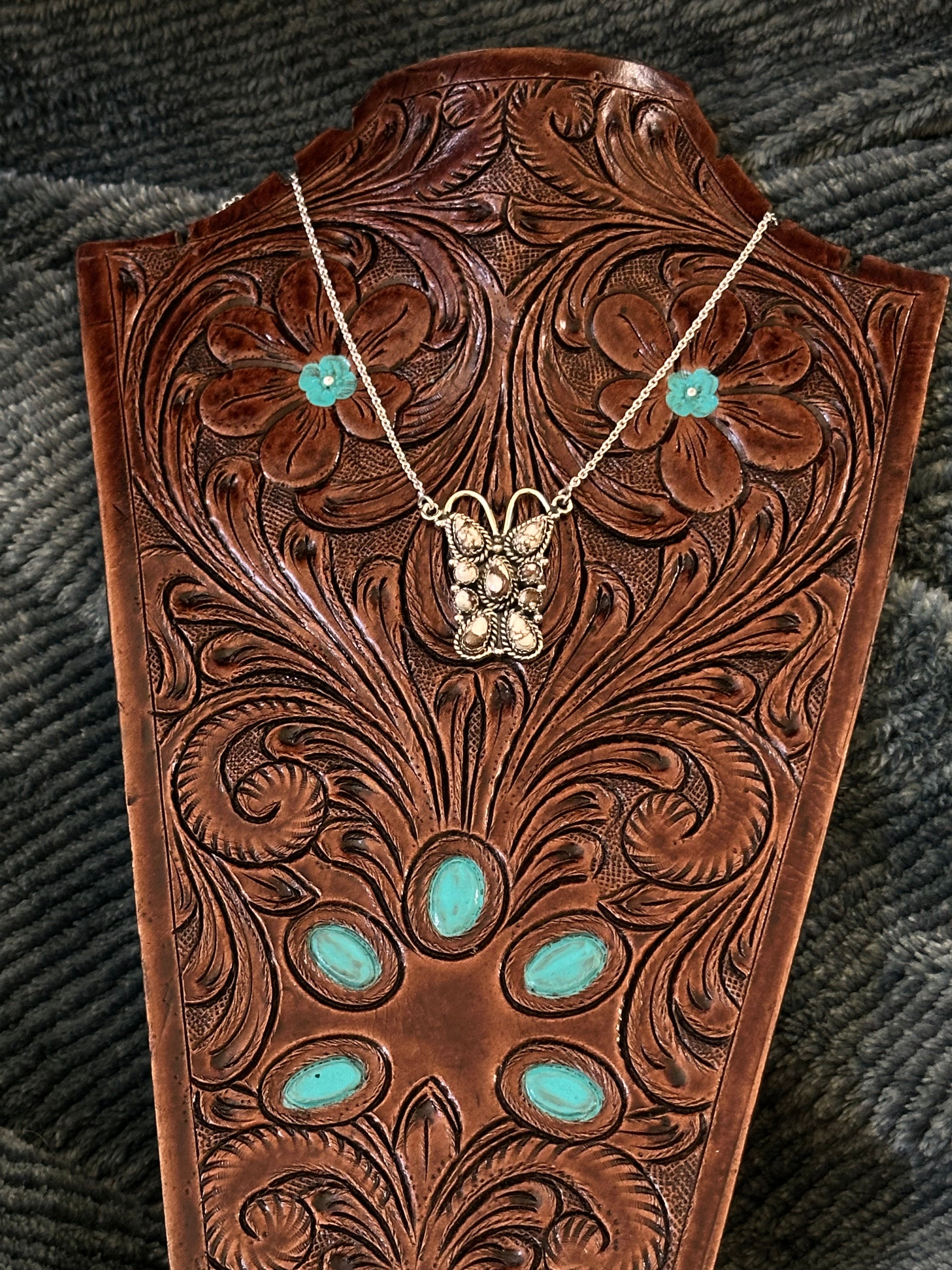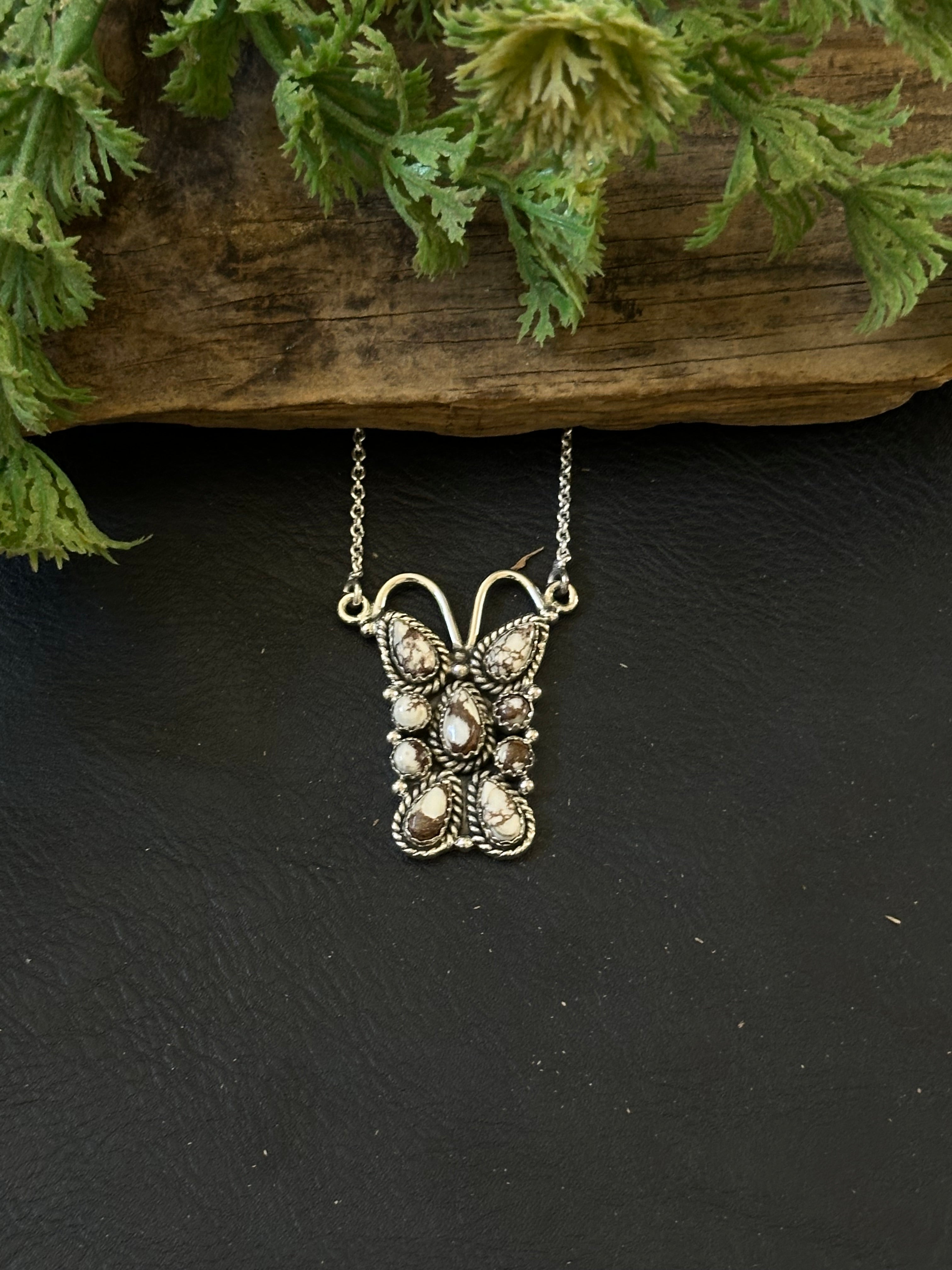 Beautiful necklace, great sterling around stone. Southwest Handmade Wild Horse & Sterling Silver Cluster Necklace. It measures 20 inches long with hang while the chain by itself measures 17 inches long but can adjust down to 15 inches long. Signed by the artist and stamped sterling silver. Stones will differ due to natural stones.