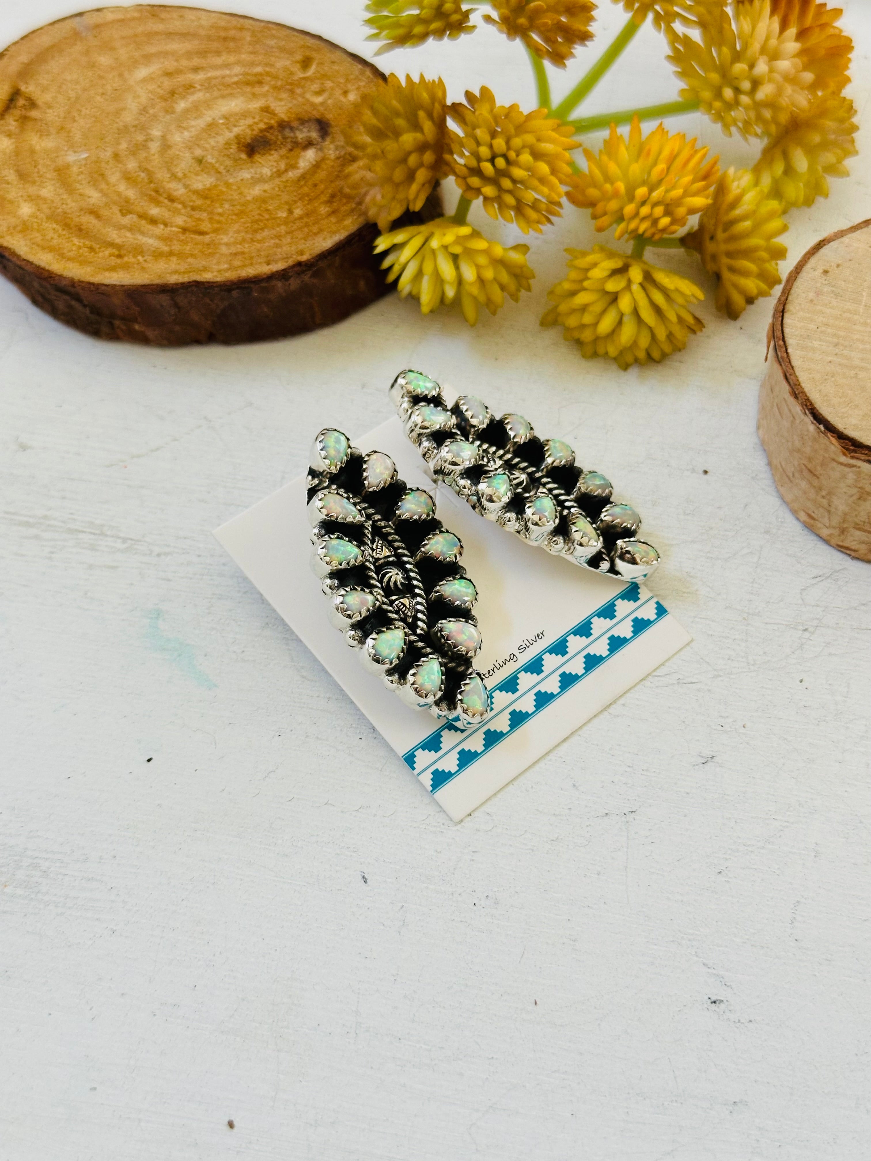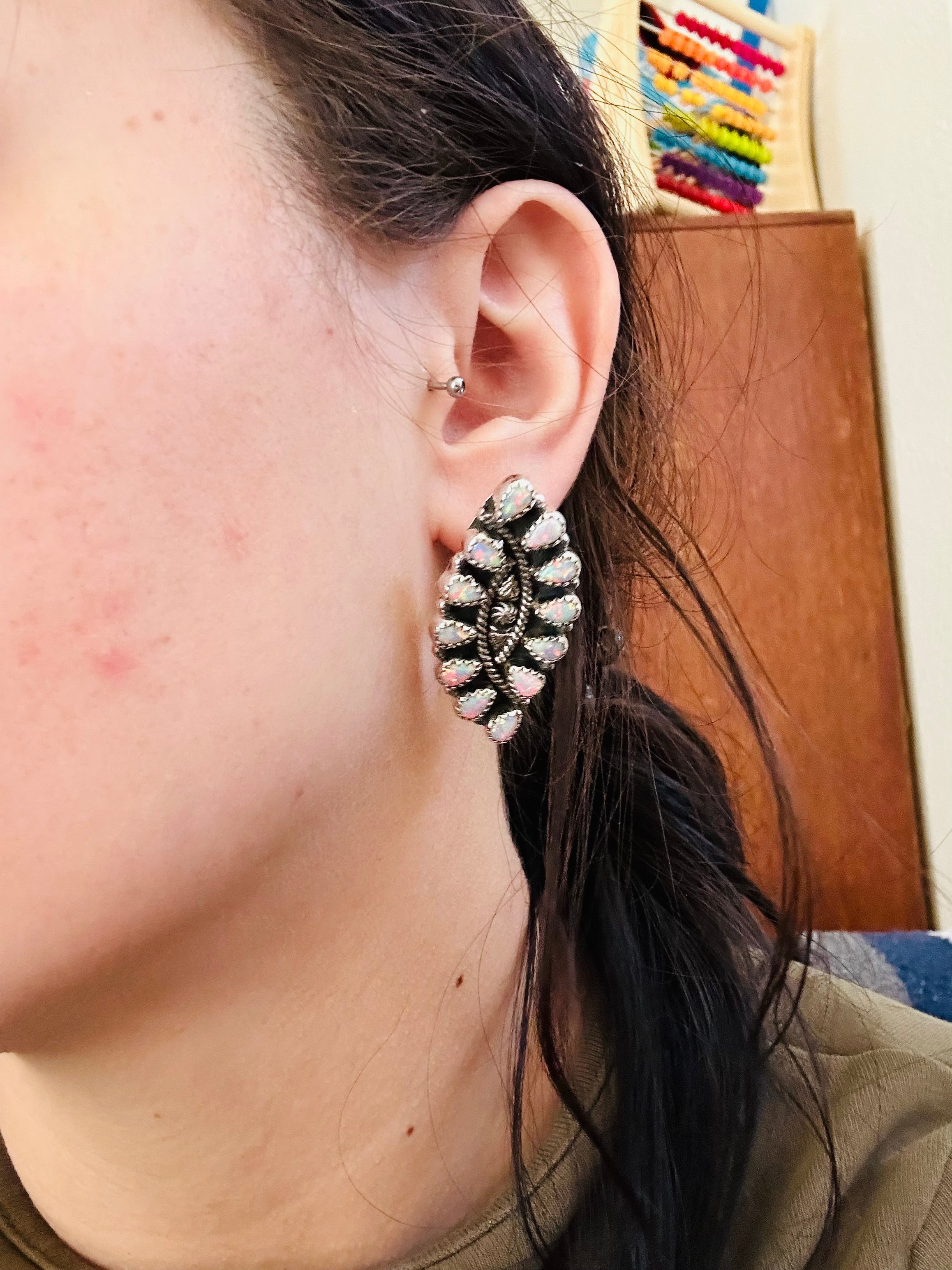 Adorable earrings. Southwest Handmade Opal & Sterling Silver Post Dangle Earrings. It measures 1 3/4 inches long and 3/4 of an inch wide. Signed by the artist and stamped sterling silver. Stones will differ due to natural stones.