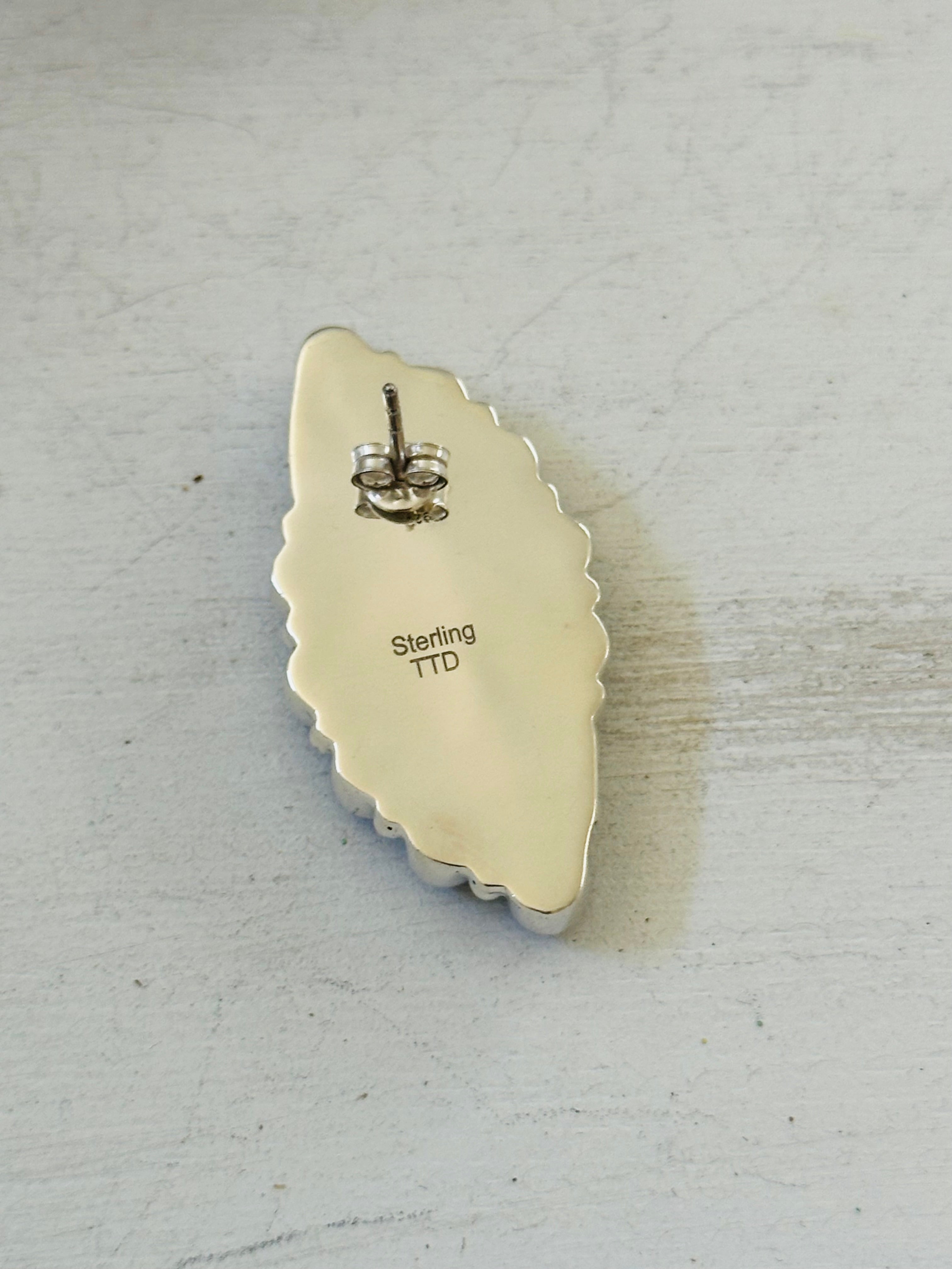 Adorable earrings. Southwest Handmade Opal & Sterling Silver Post Dangle Earrings. It measures 1 3/4 inches long and 3/4 of an inch wide. Signed by the artist and stamped sterling silver. Stones will differ due to natural stones.