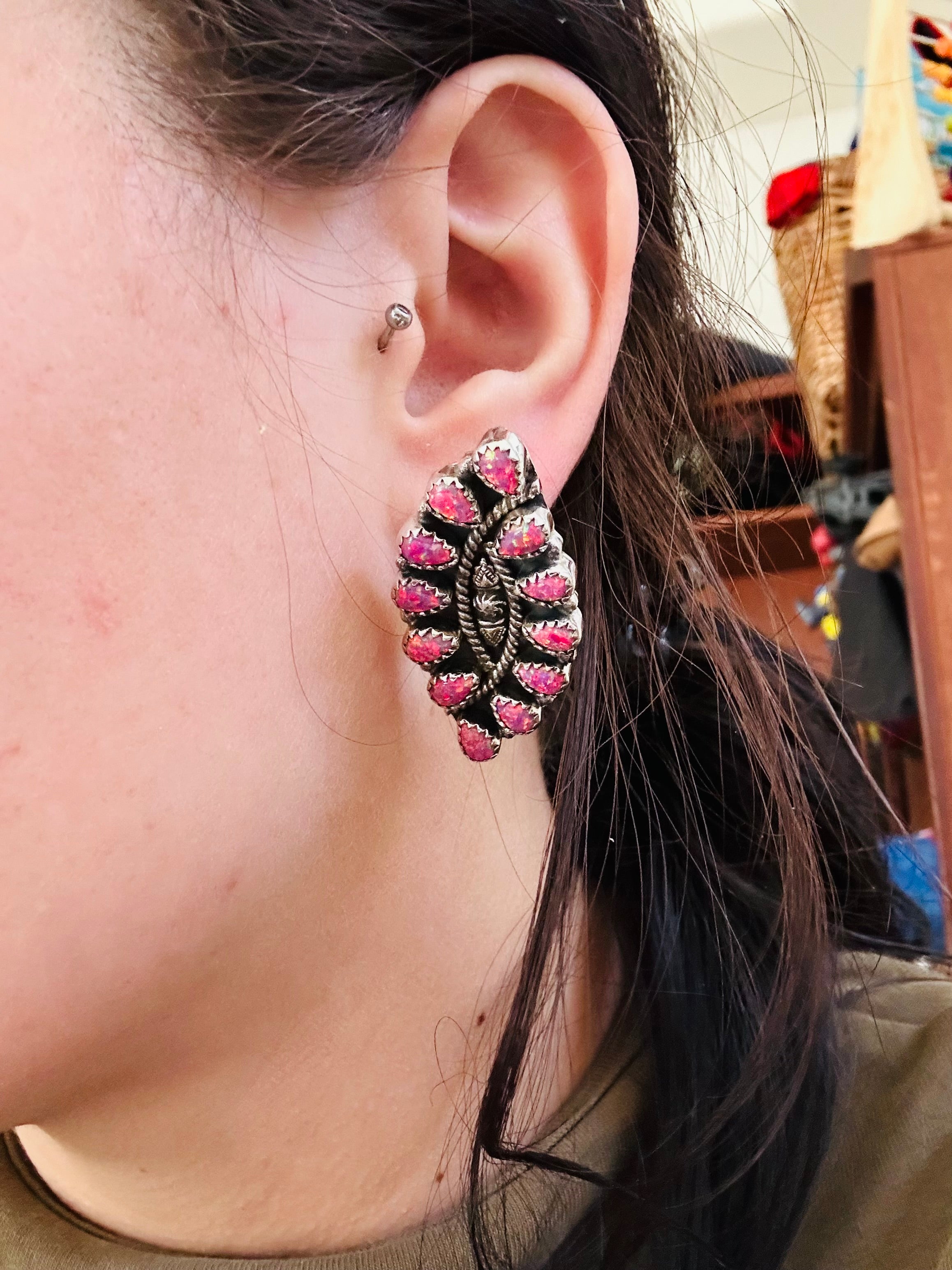 TTD “Twin Flame” Pink Opal & Sterling Silver Earrings