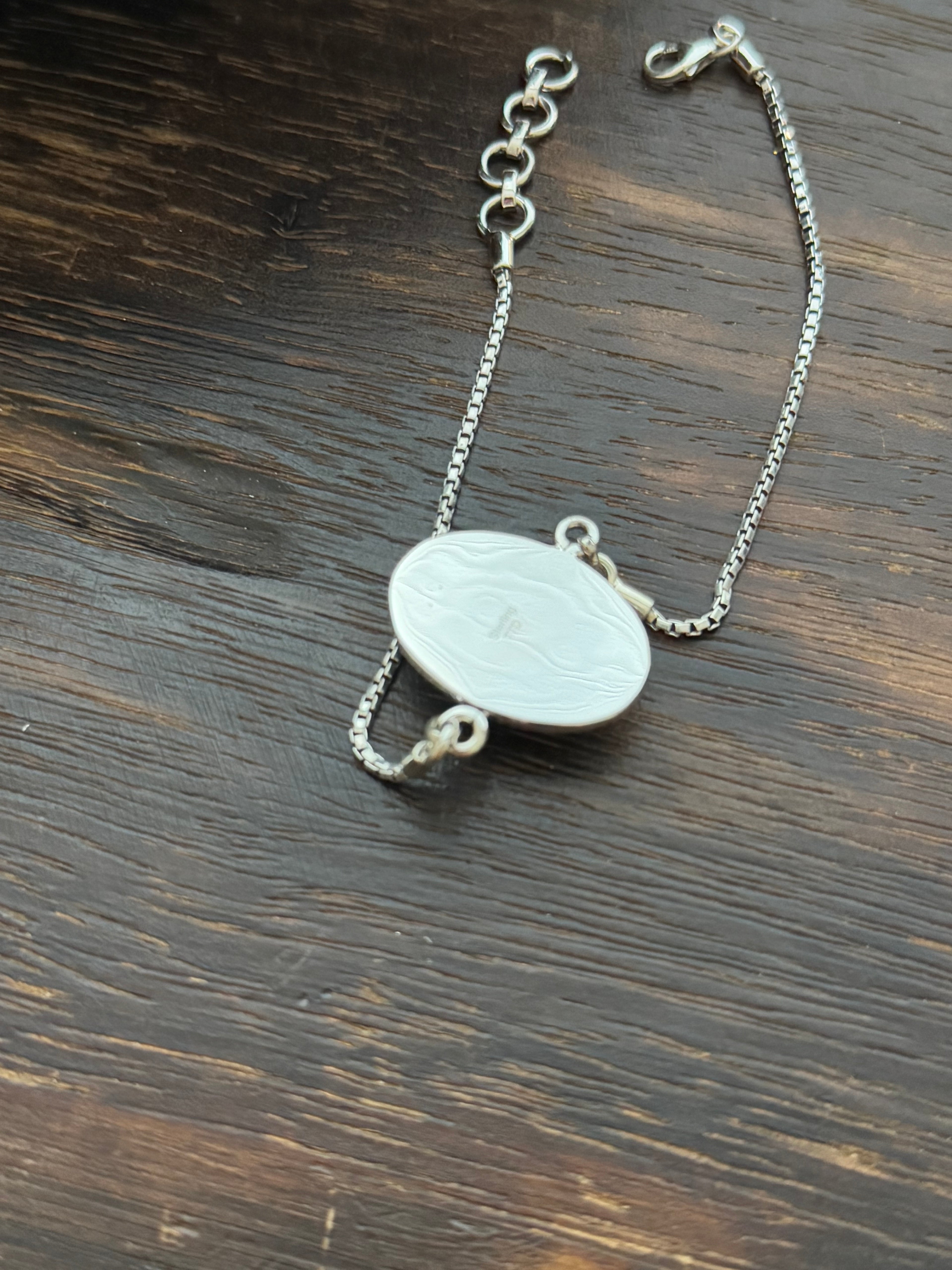 TTD Sterling Silver Bracelet. It measures 1 inch wide and 8 7/8 inches long. Can be adjusted down. Signed by artist and stamped sterling silver.