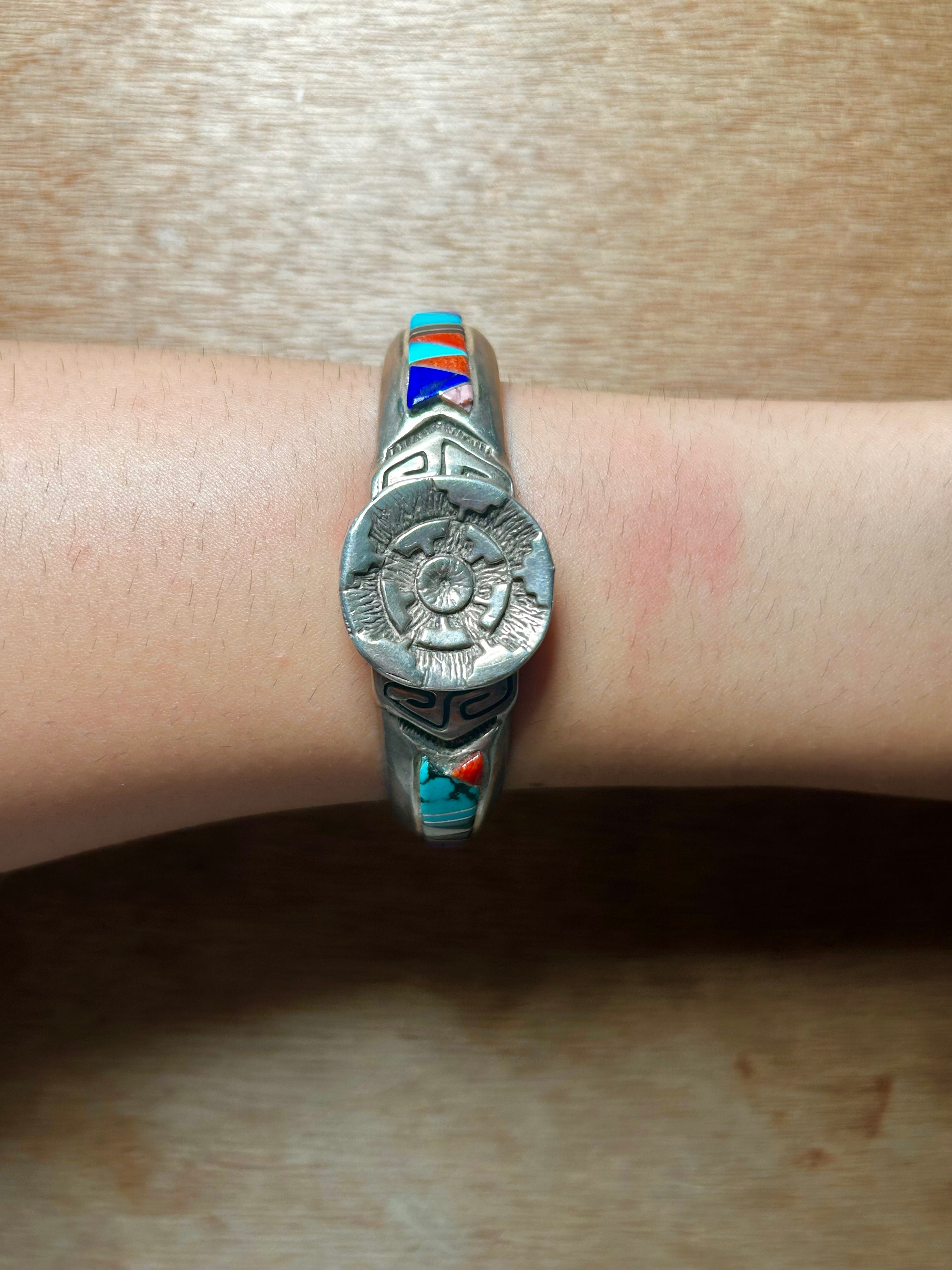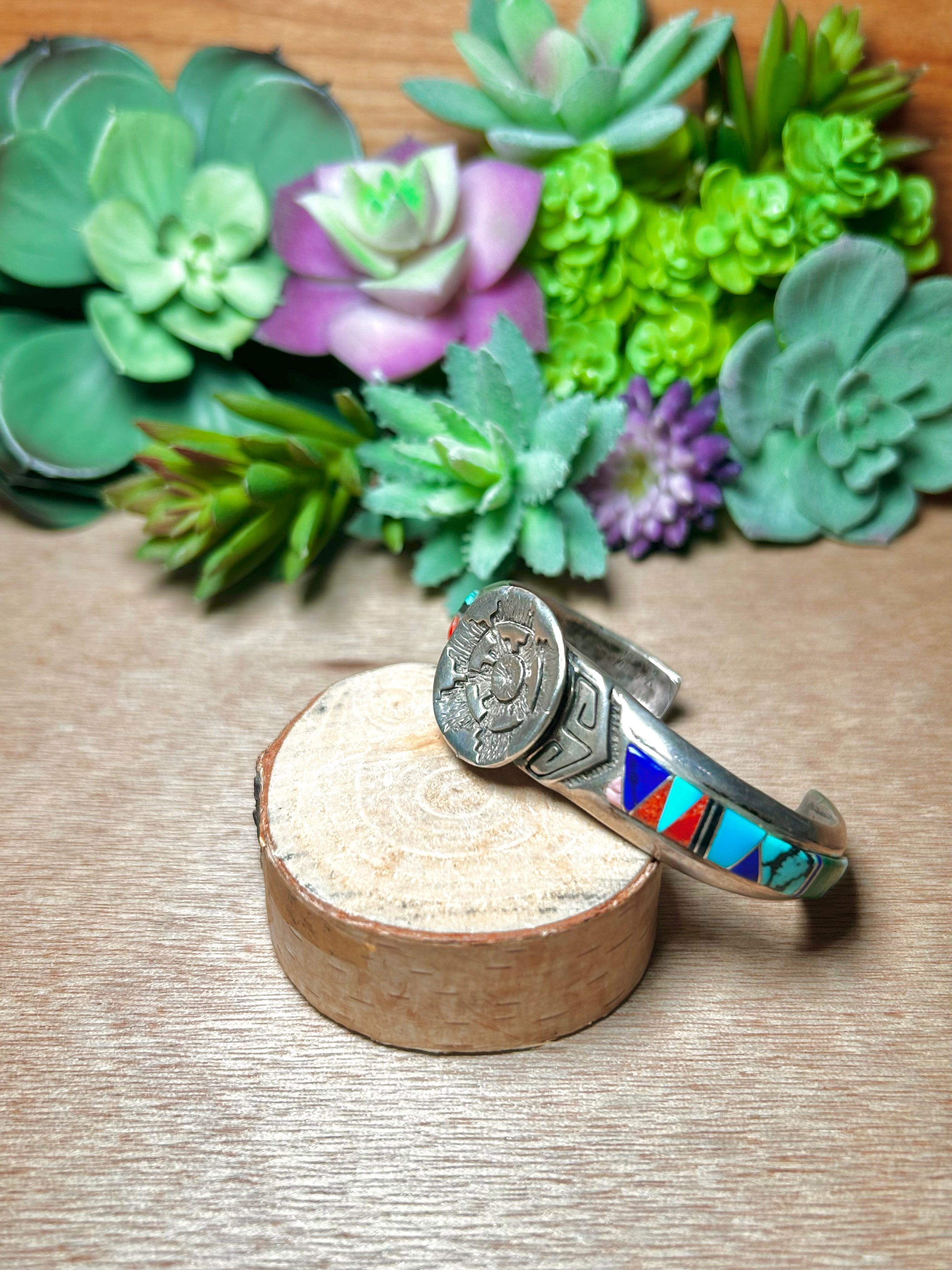 Vintage Navajo Multi Stone & Sterling Silver Cuff Bracelet