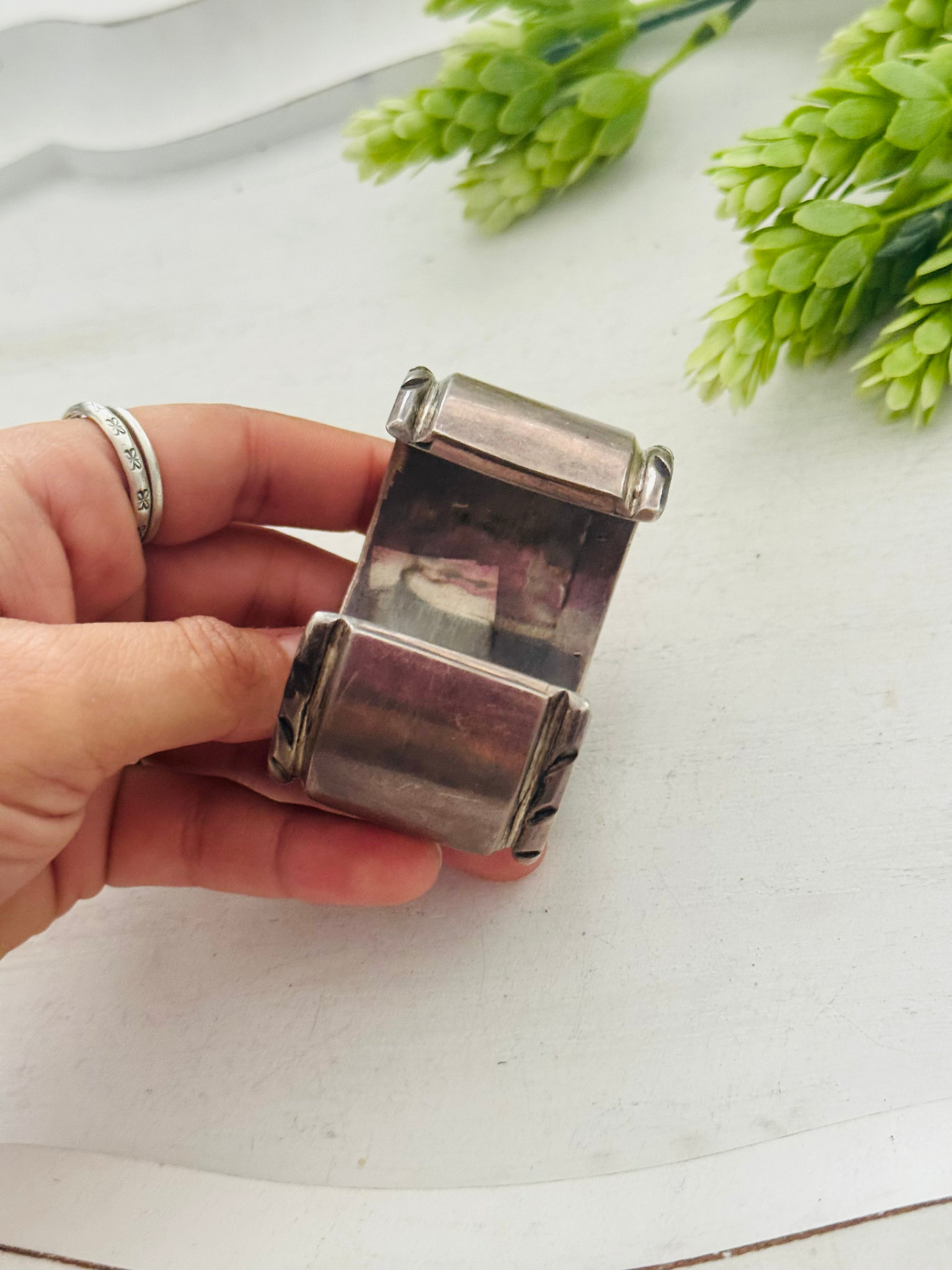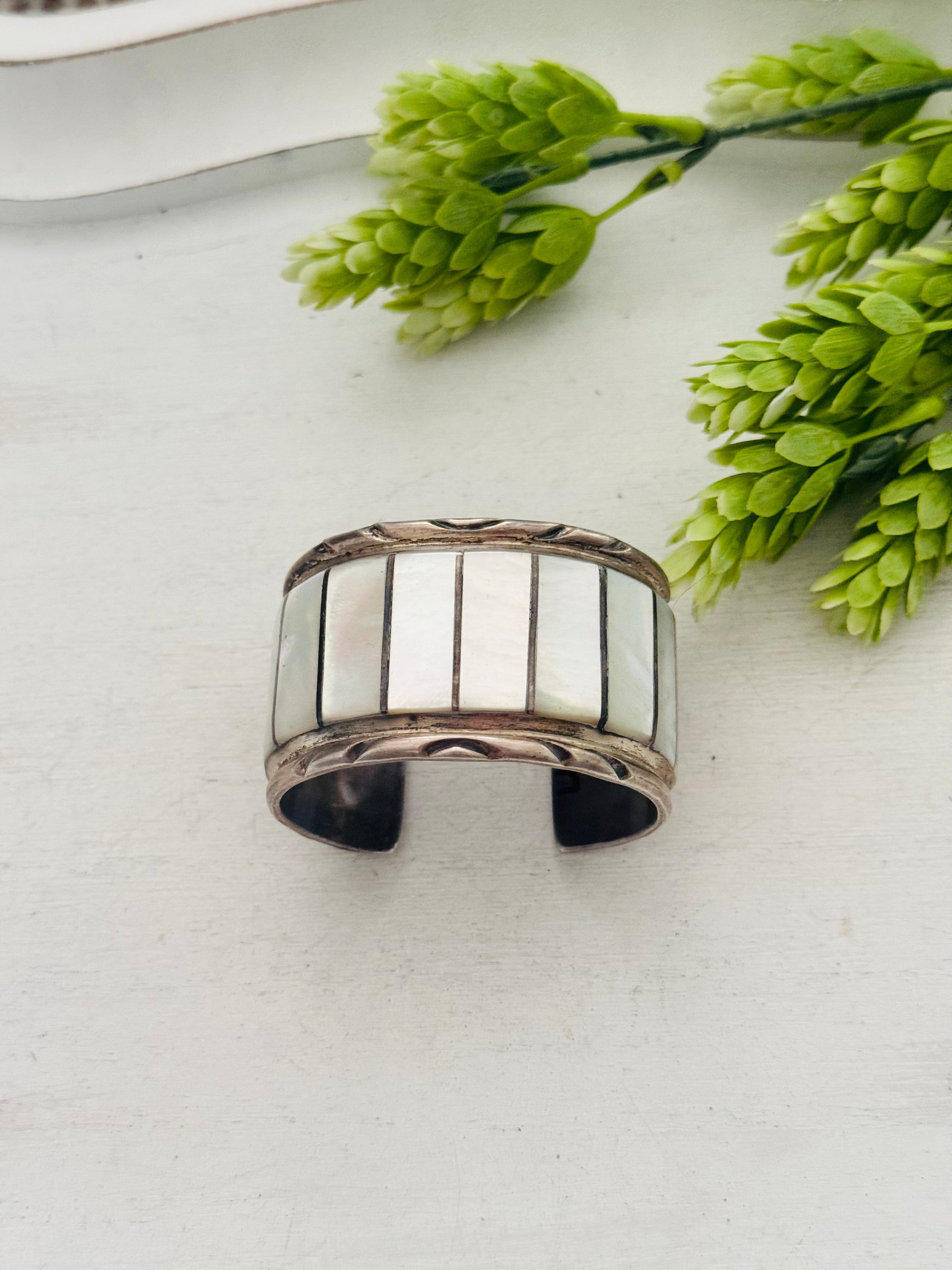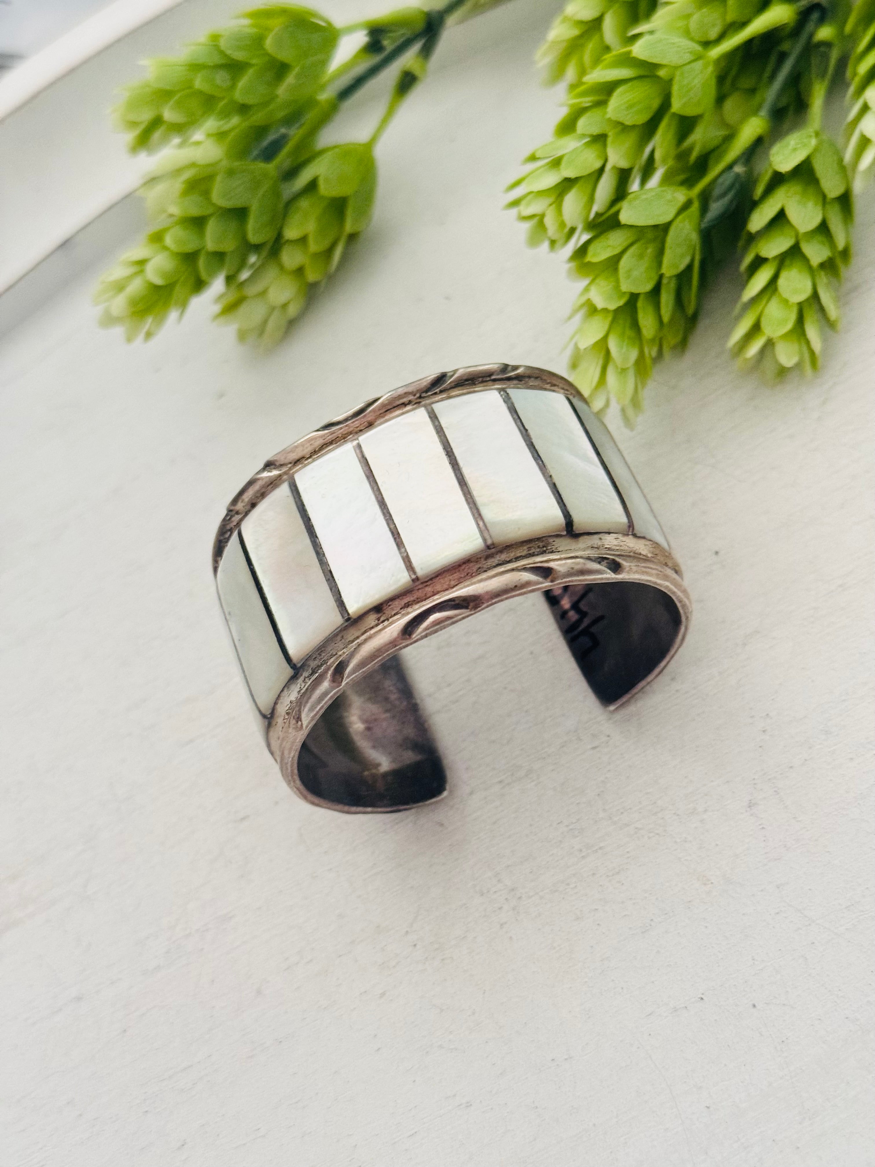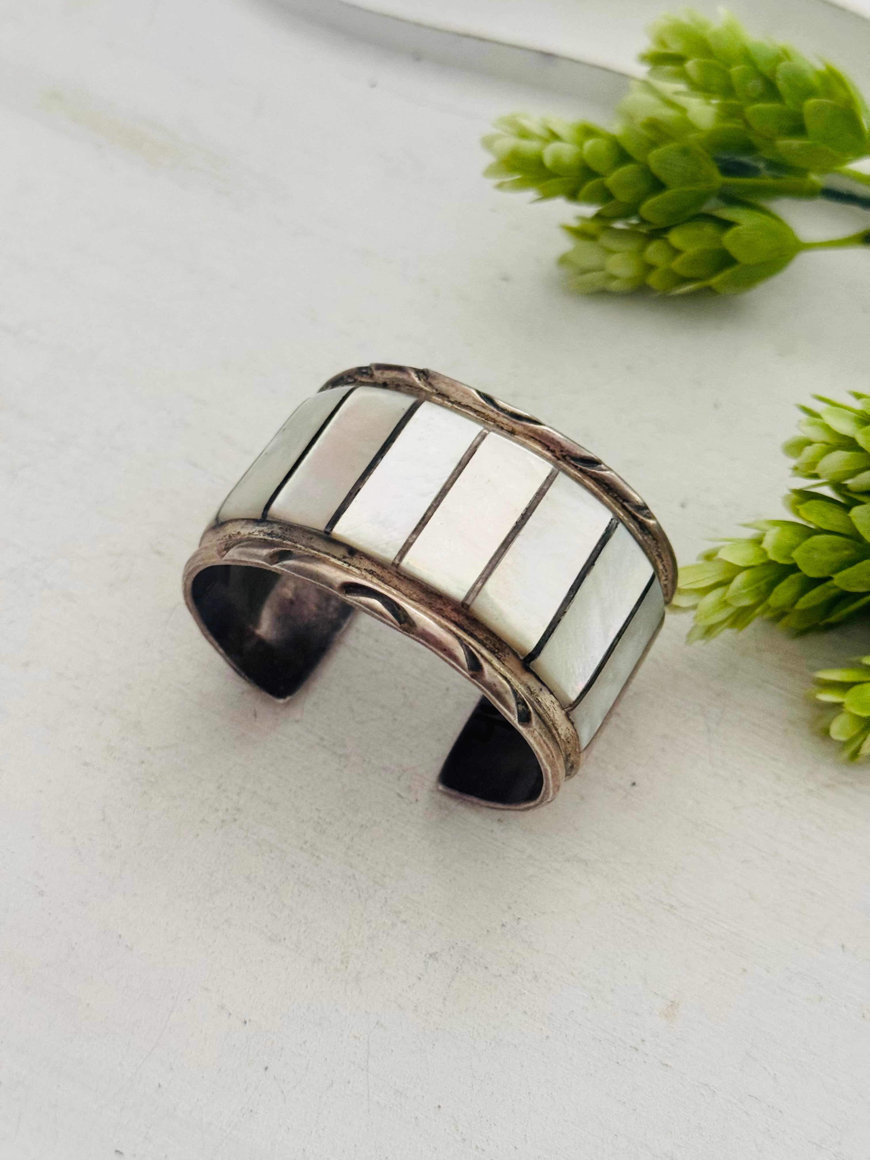Vintage Navajo Made Mother of Pearl Sterling Silver Cuff Bracelet