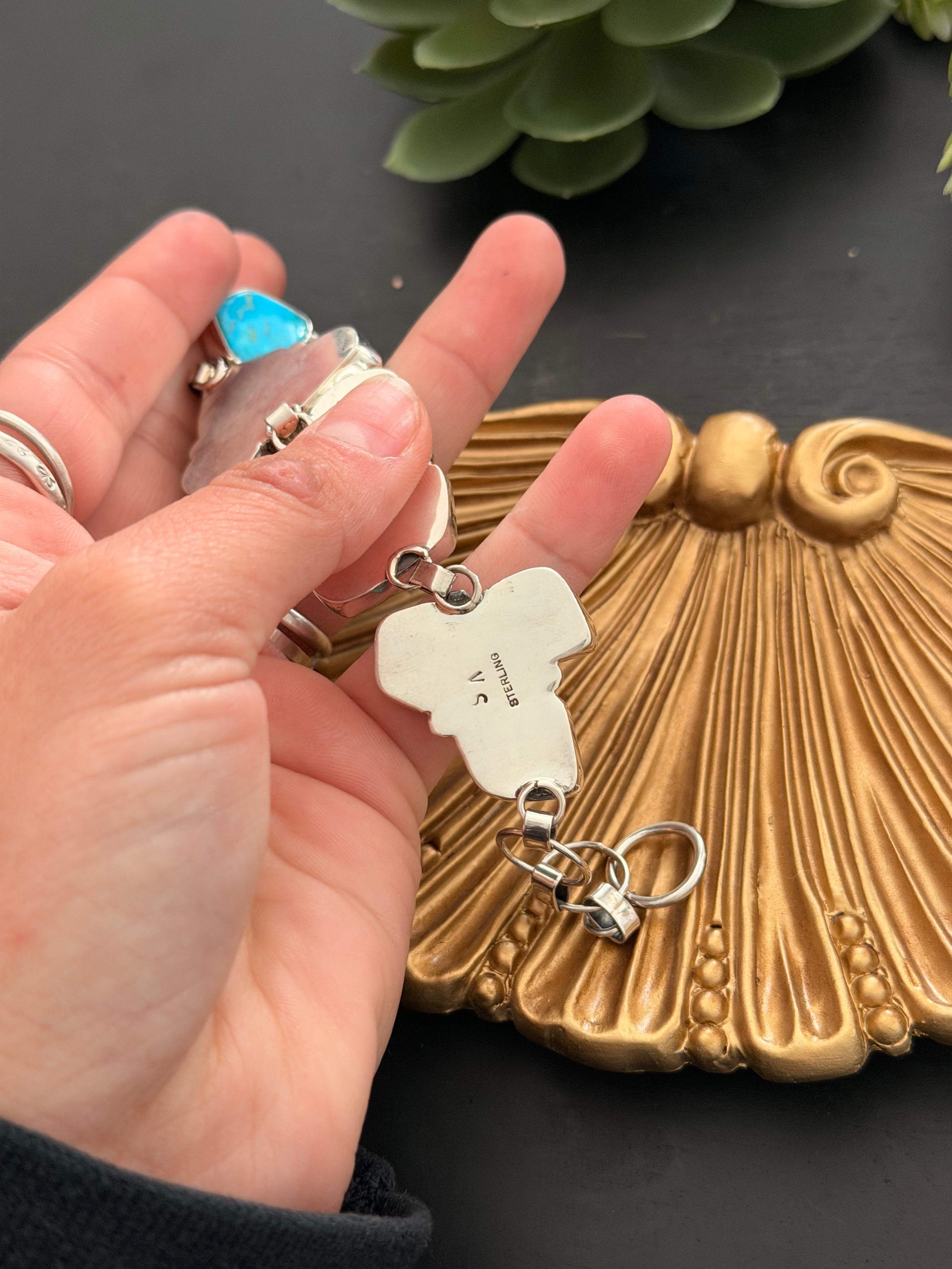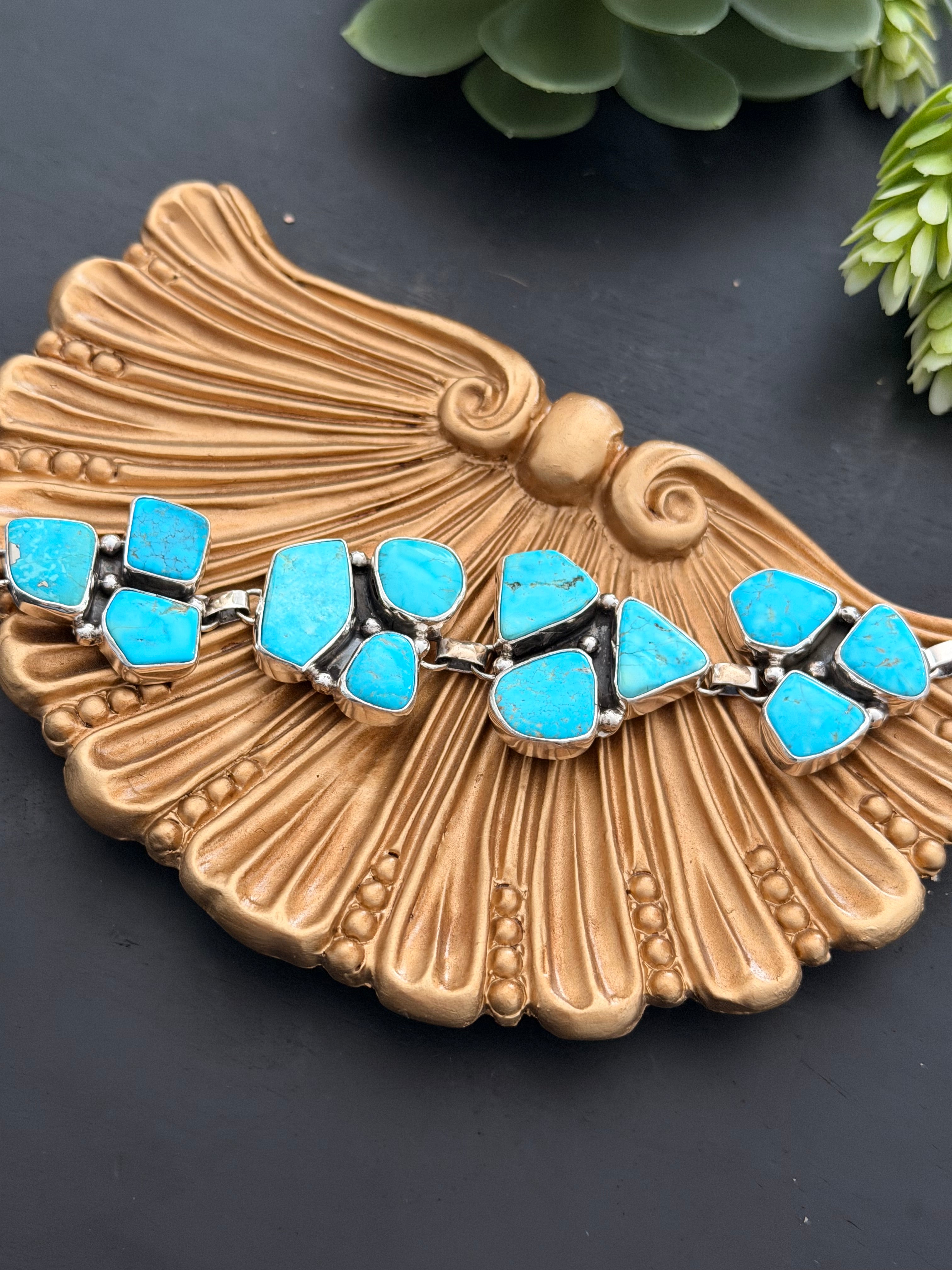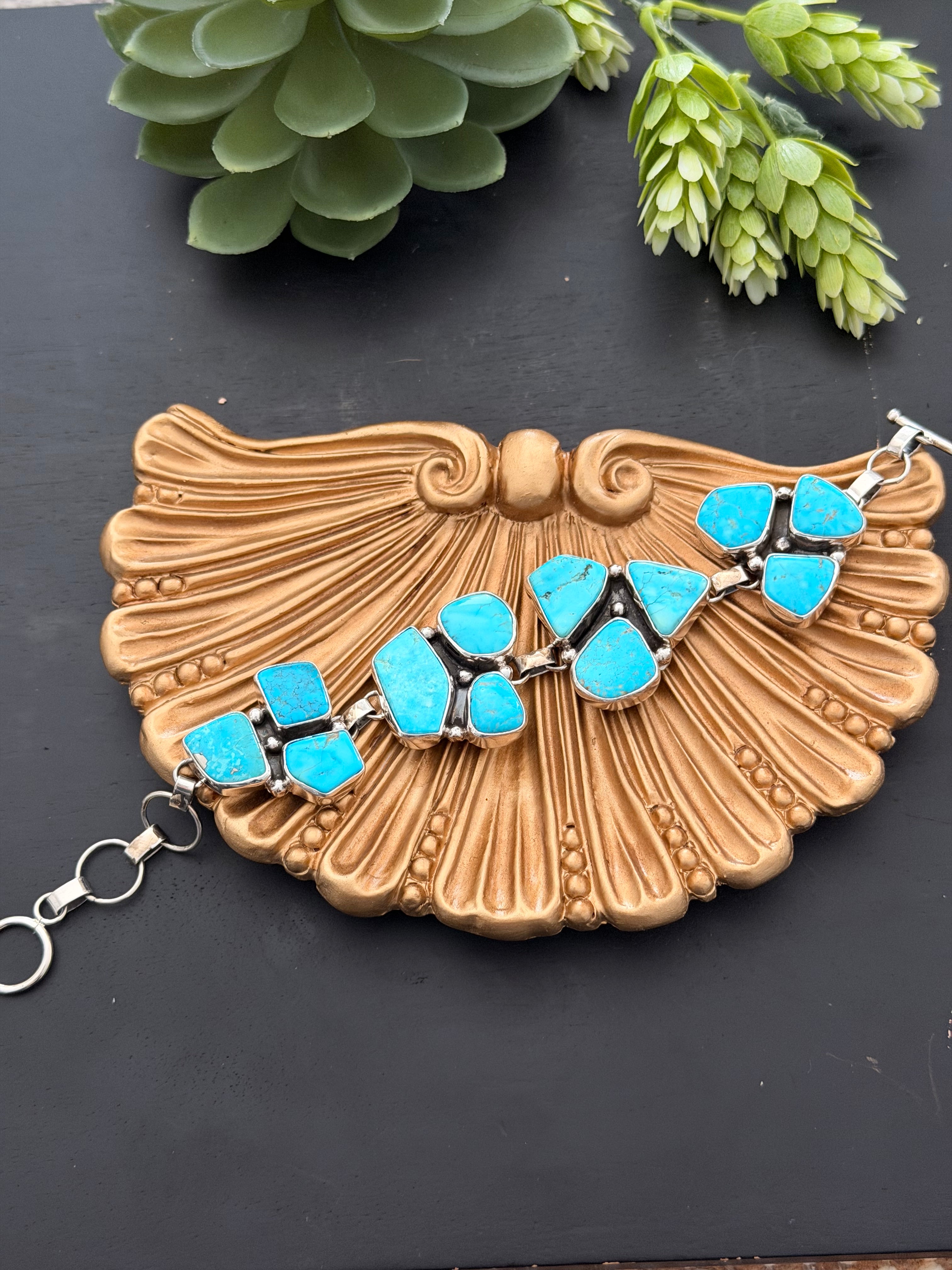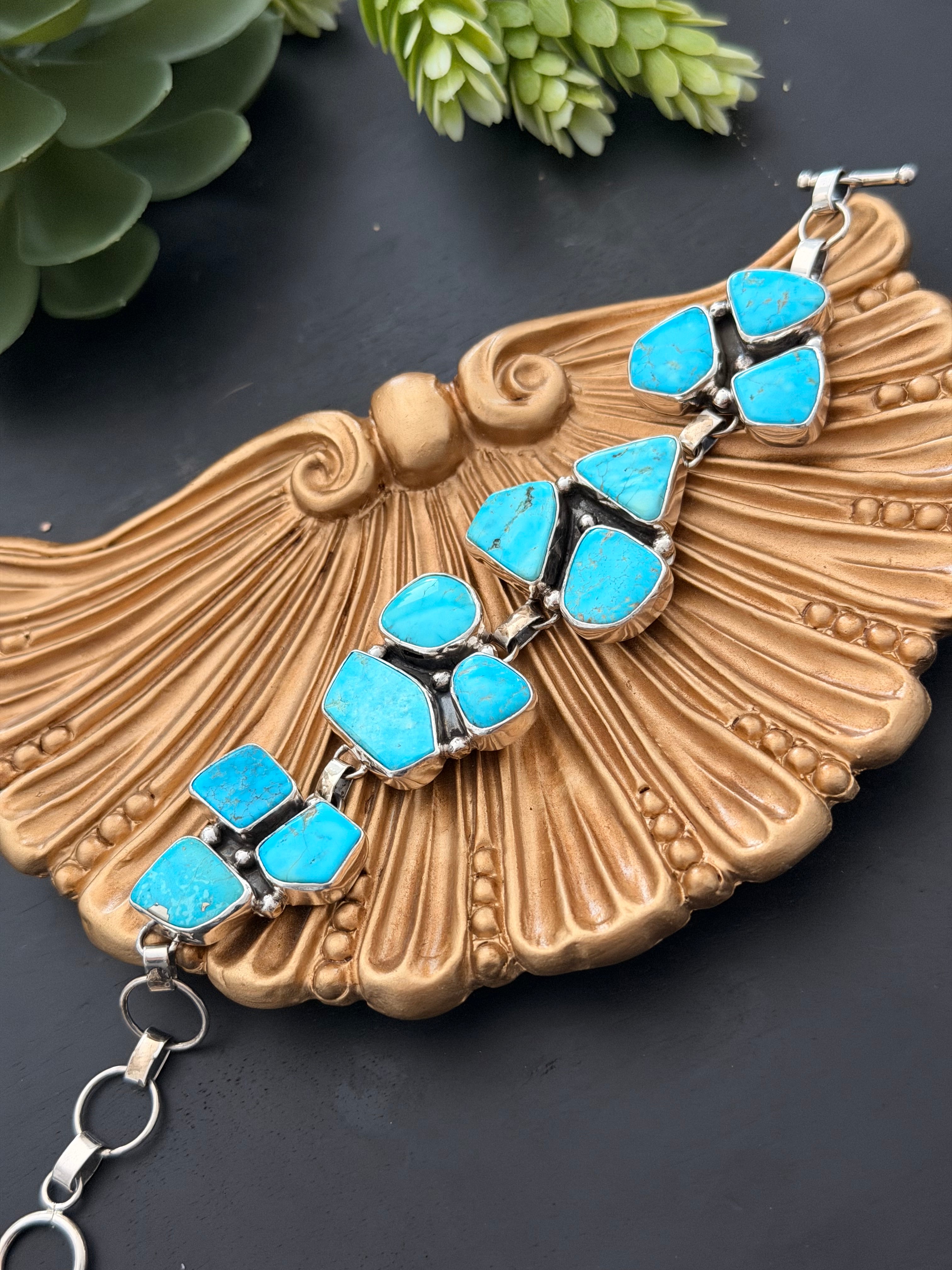 Virginia Sandoval Kingman Turquoise & Sterling Silver Cluster Link Bracelet