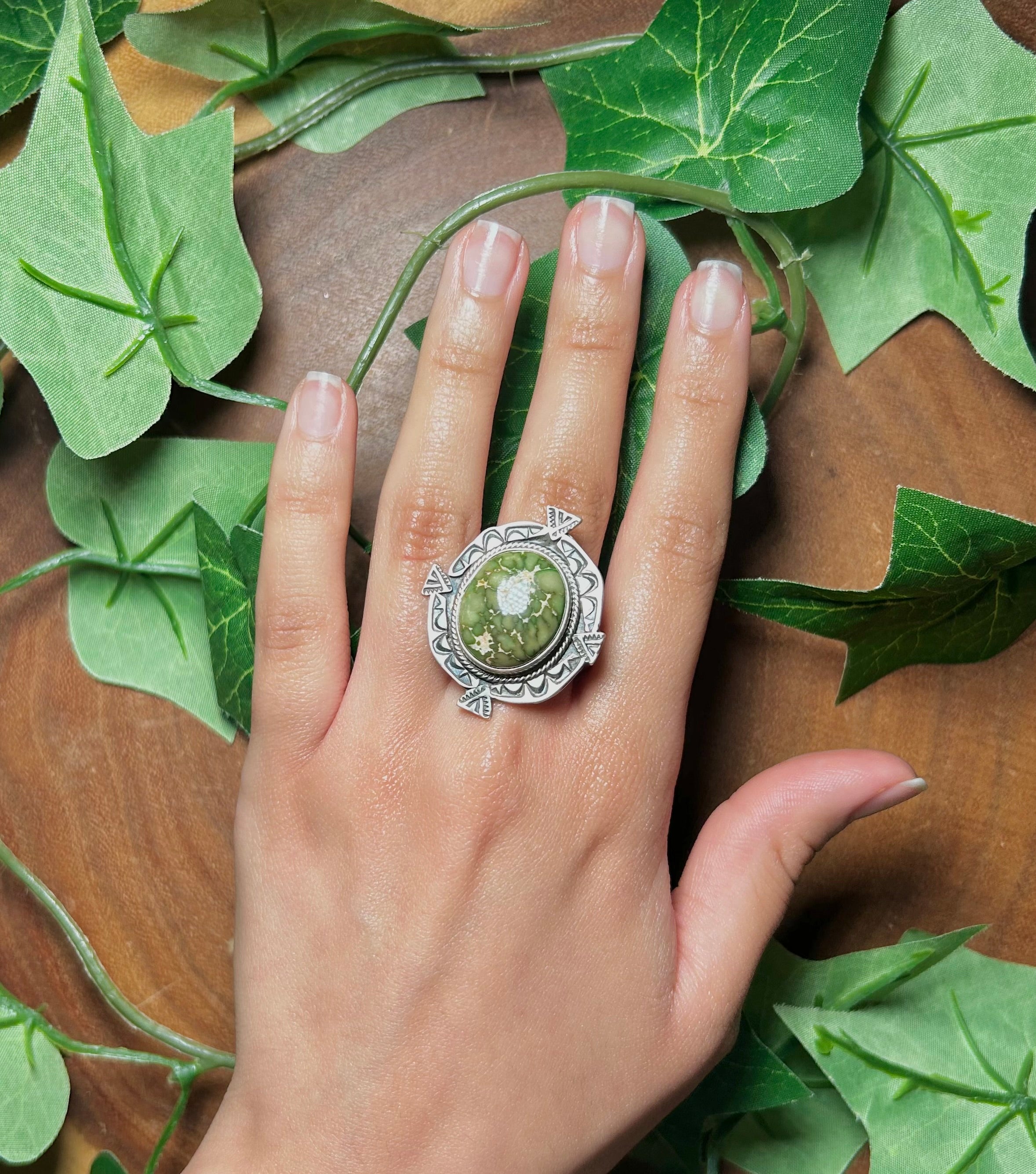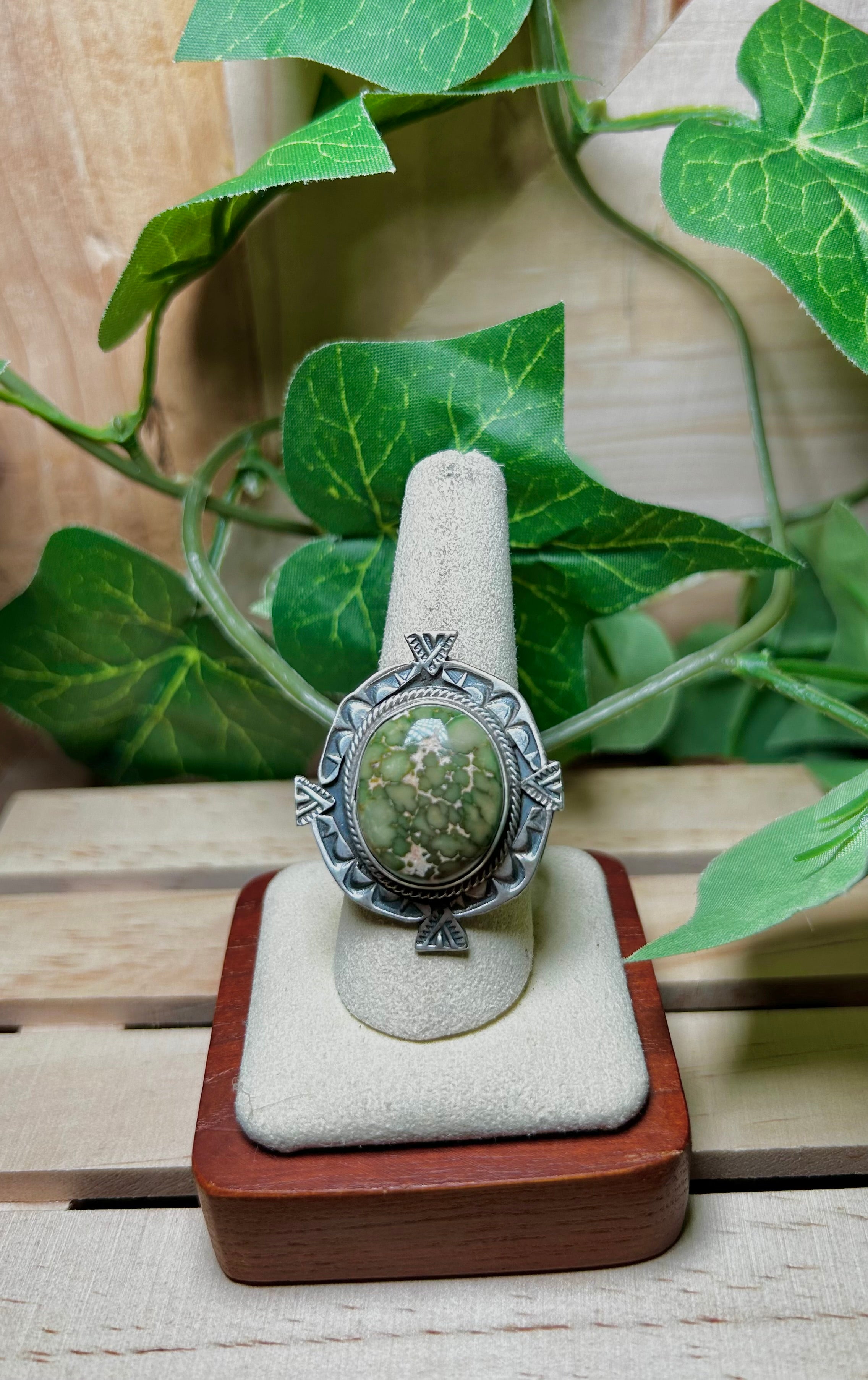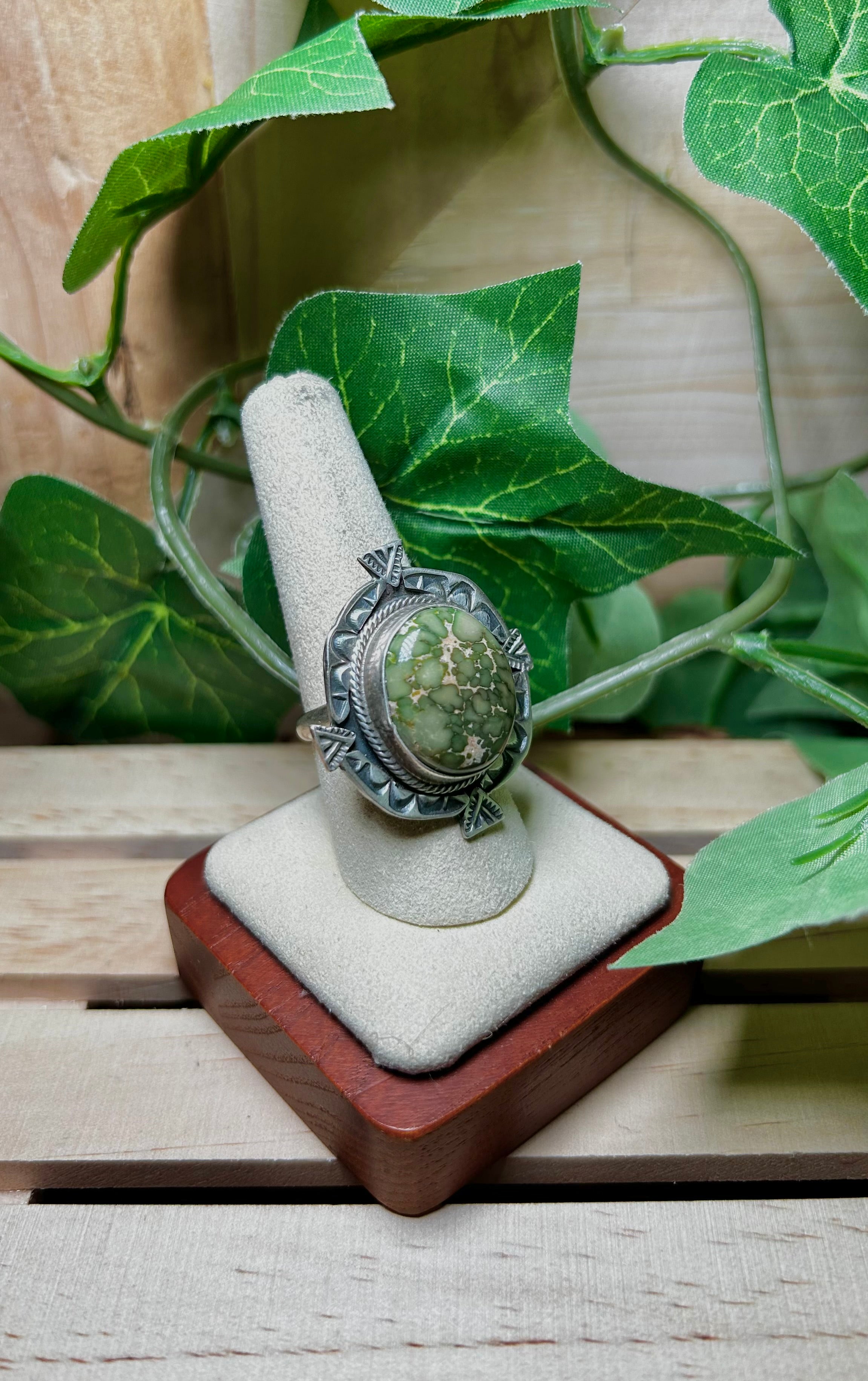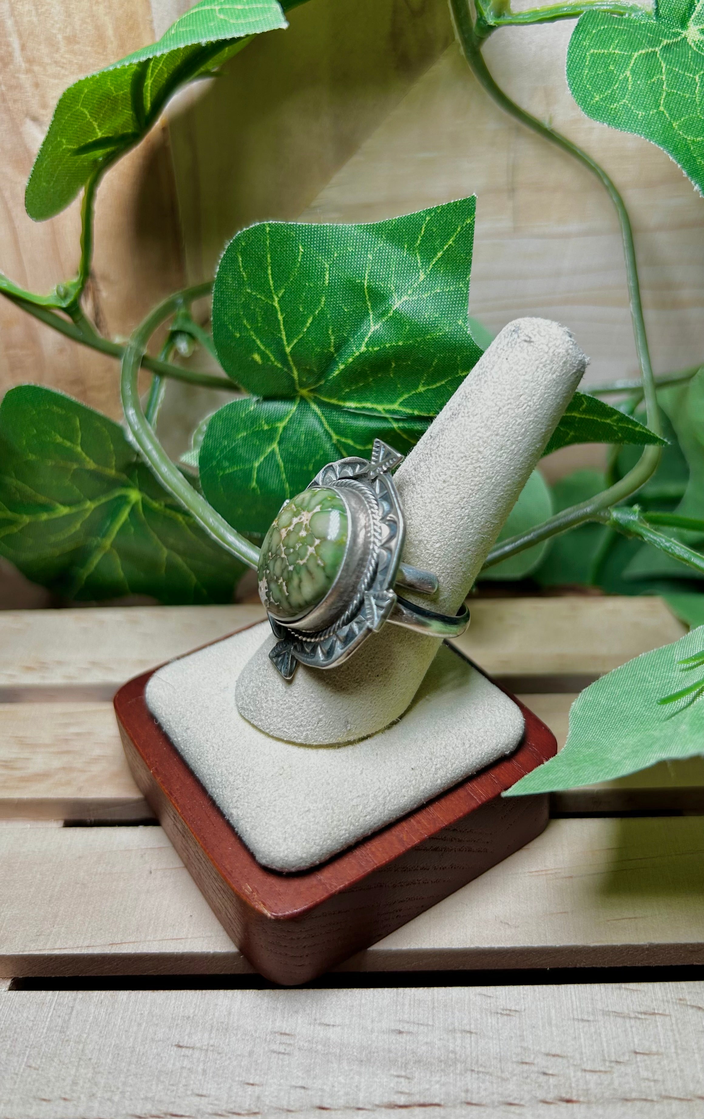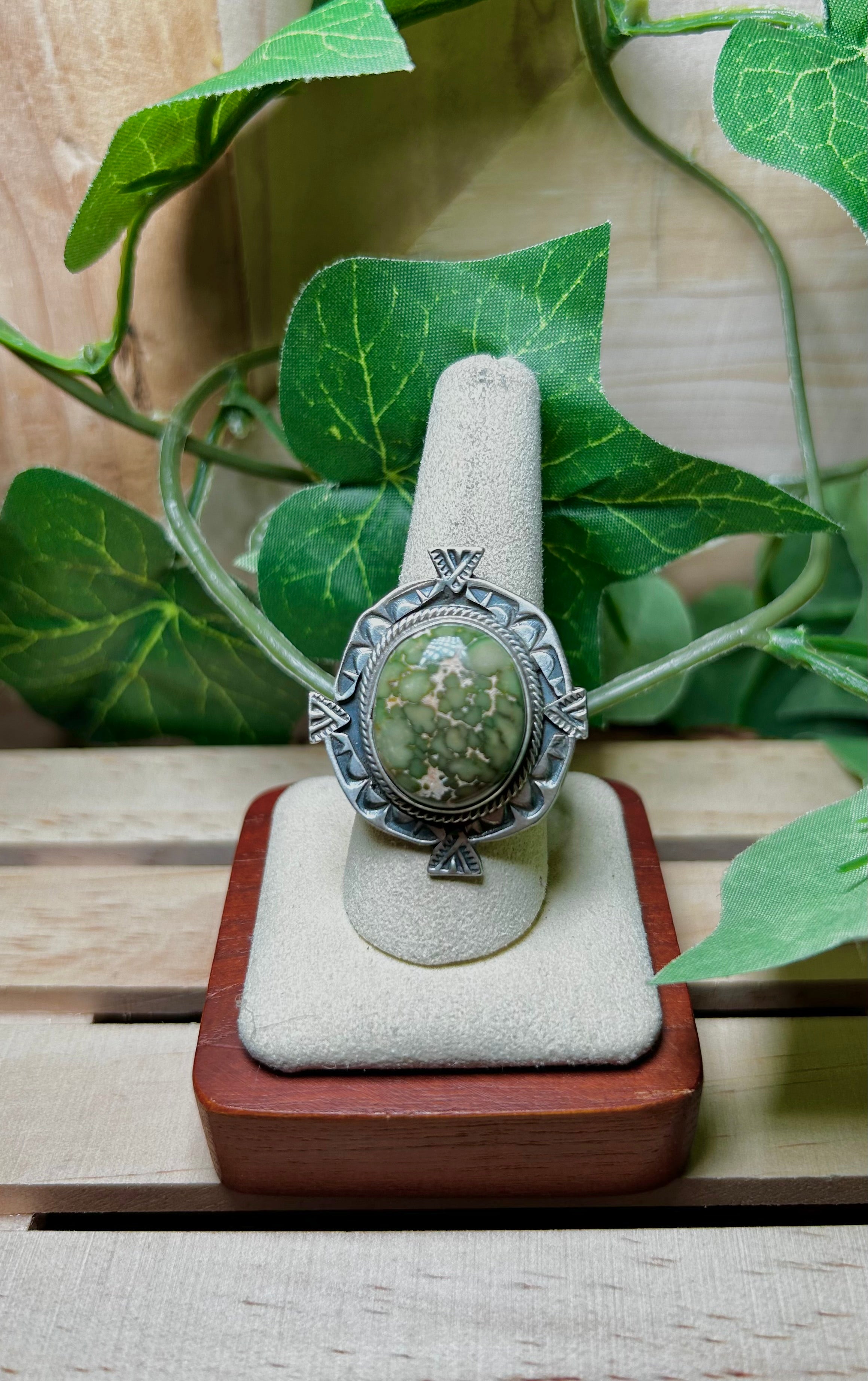 Navajo Made Royston Turquoise & Sterling Sliver Cluster Adjustable Ring