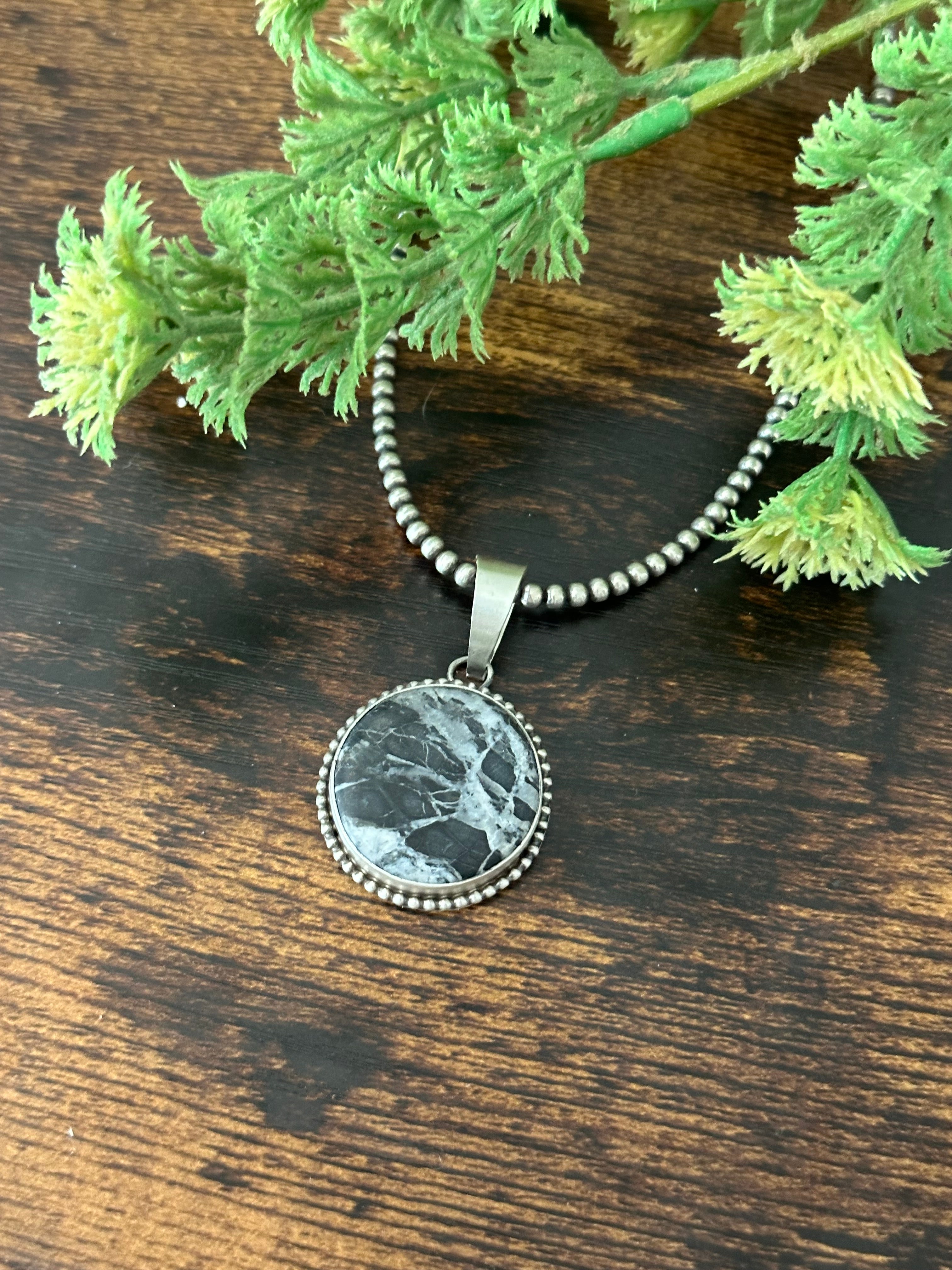 Eli Skeets White Buffalo & Sterling Silver Pendant