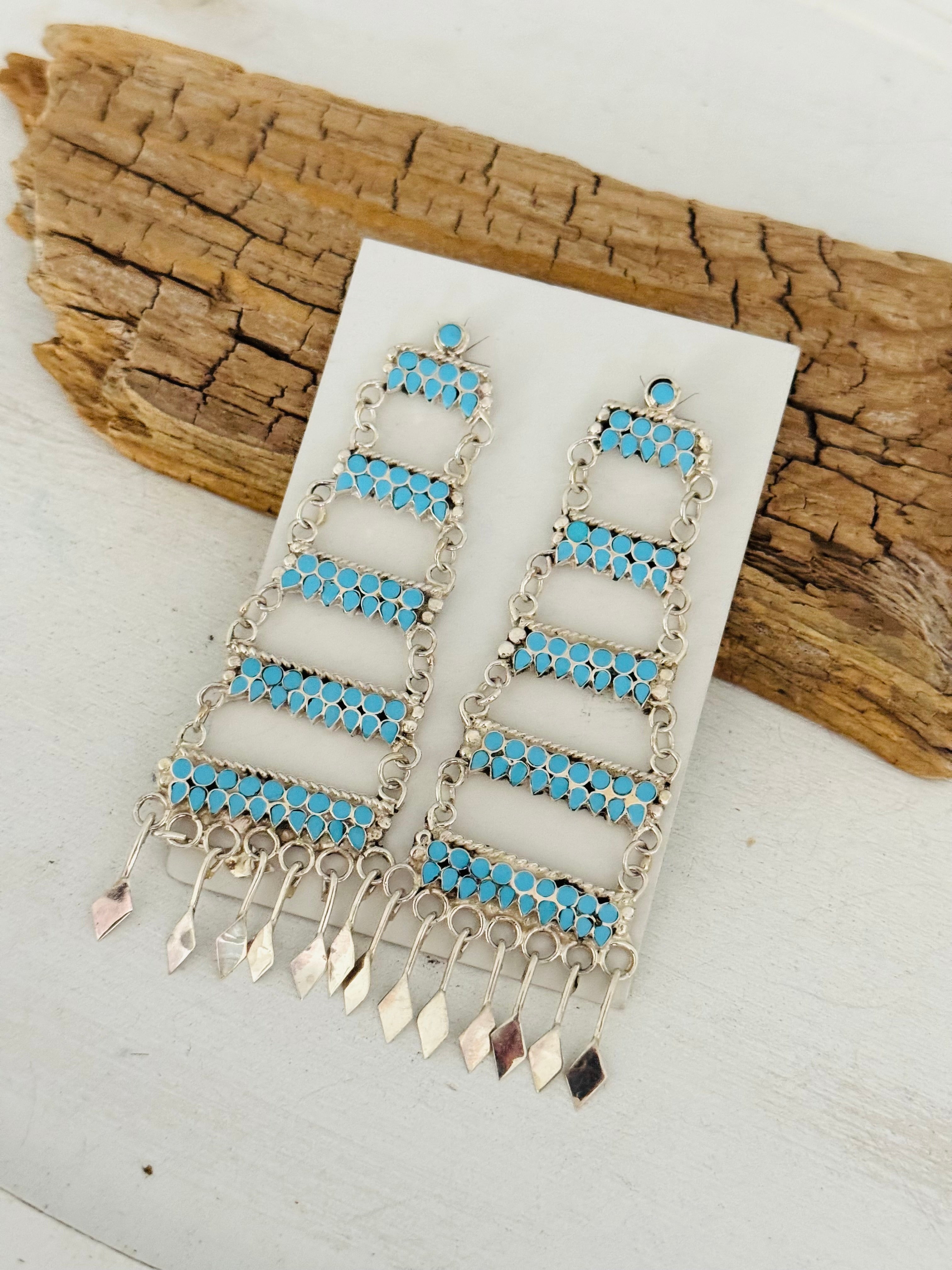 Zuni Made Kingman Turquoise & Sterling Silver Post Dangle Earrings