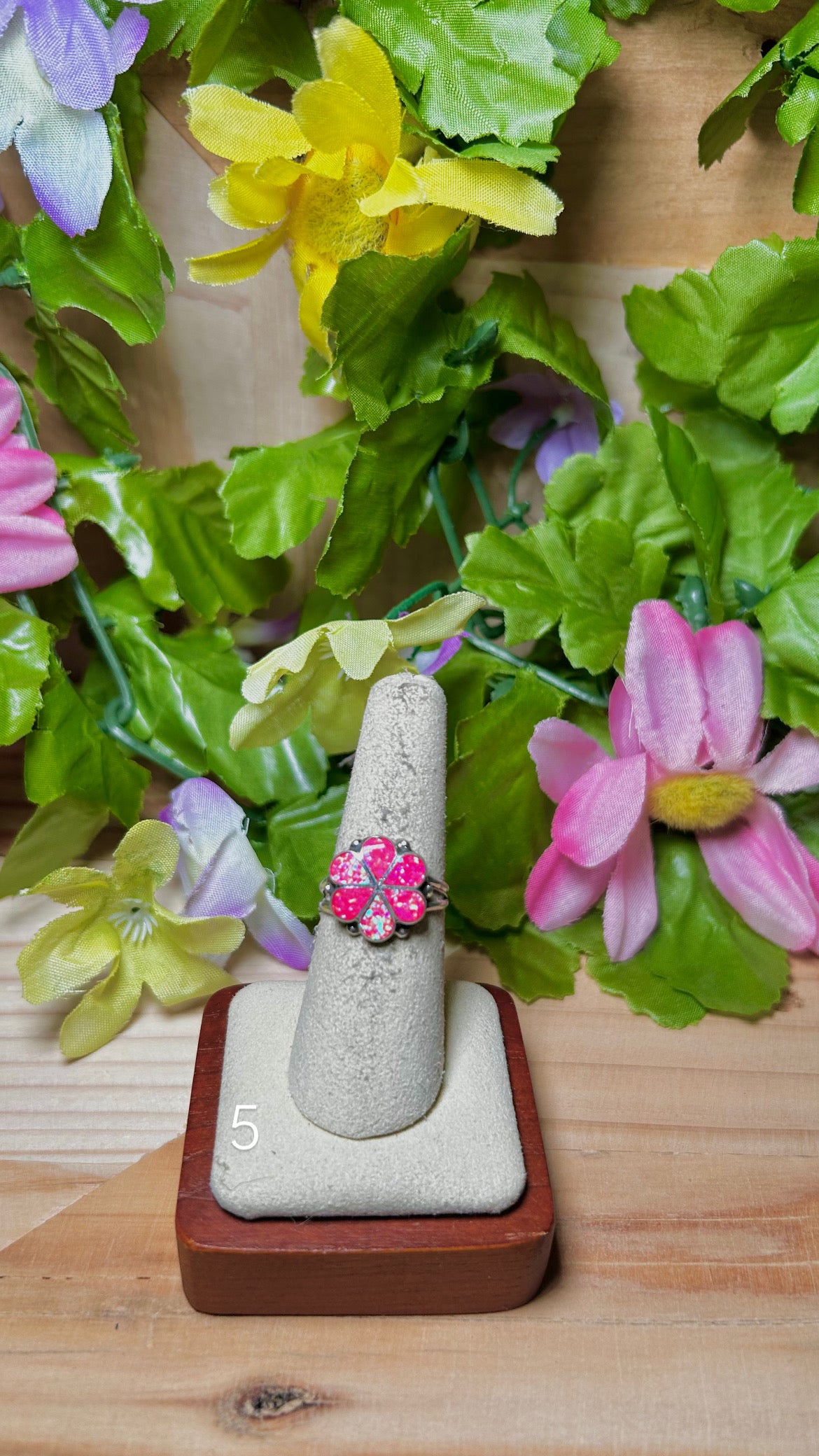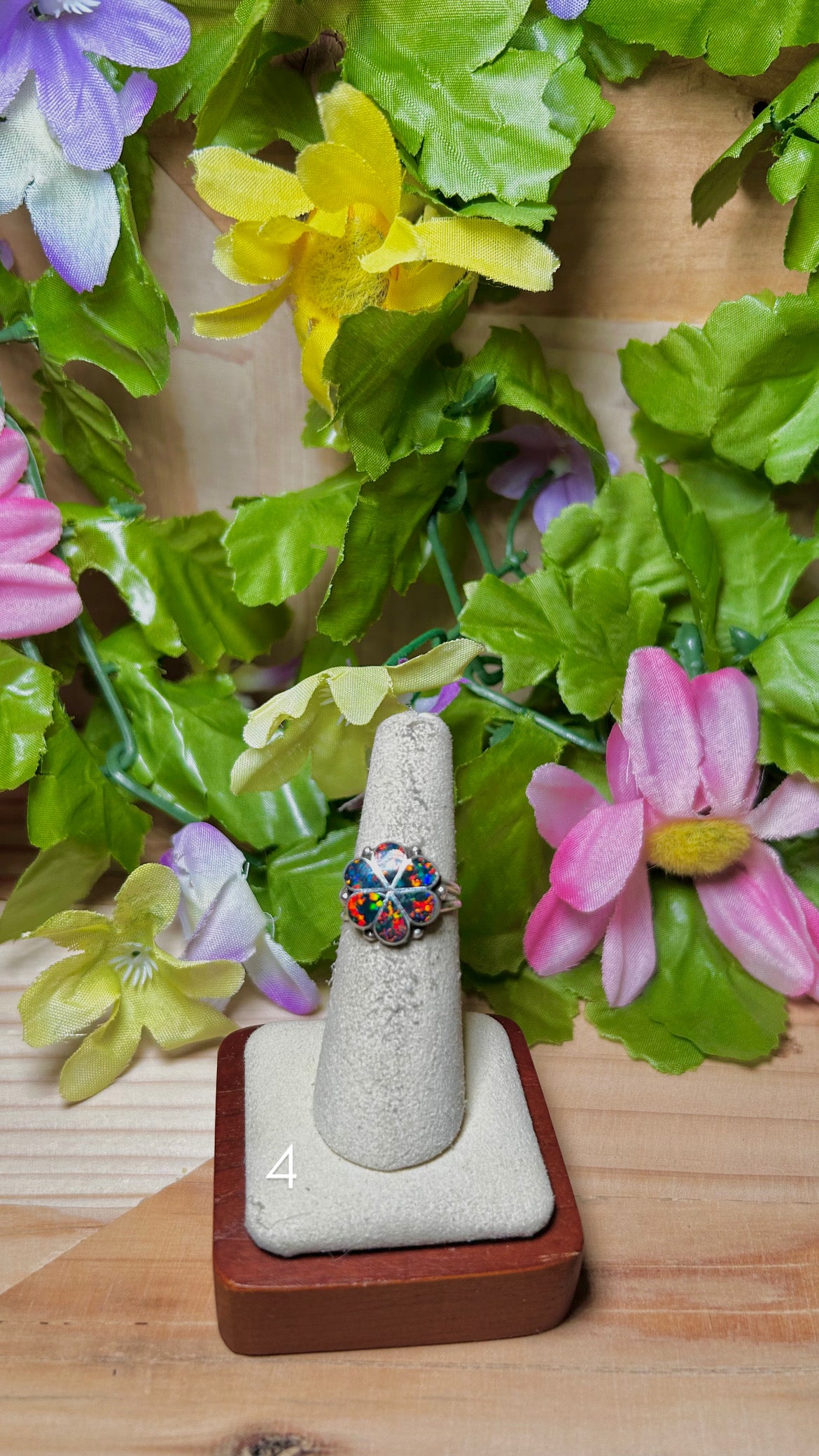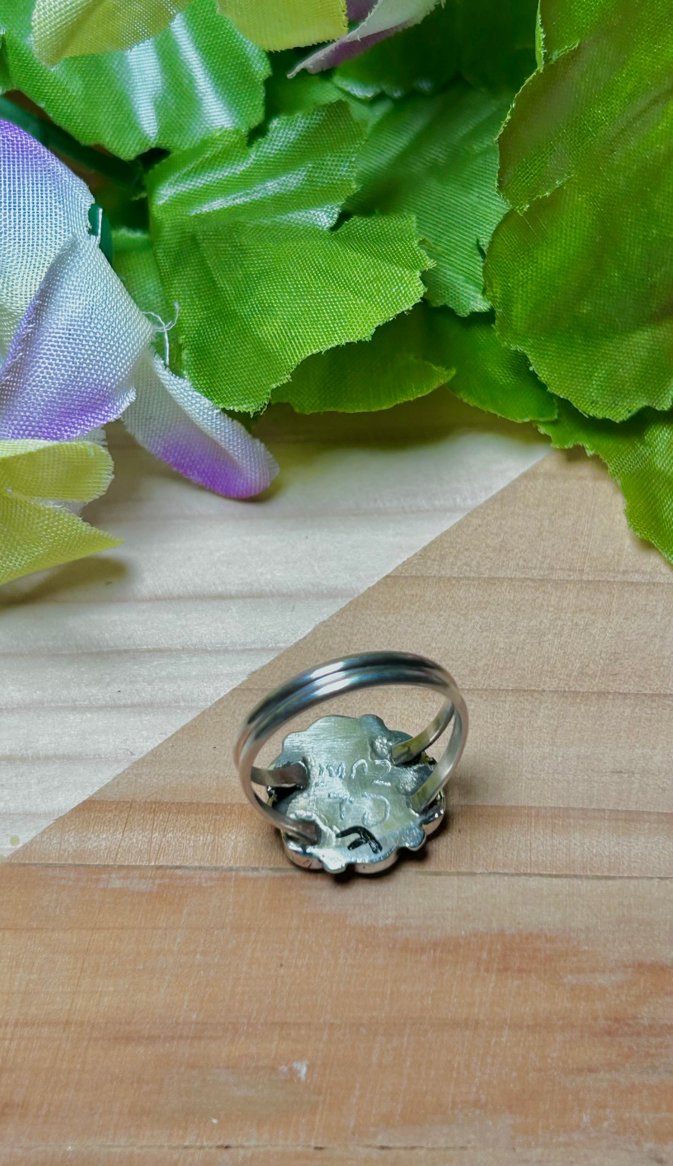 Zuni Made Opal & Sterling Silver Ring. It measures 5/8 of an inch long and 5/8 of an inch wide. Stamped sterling silver.