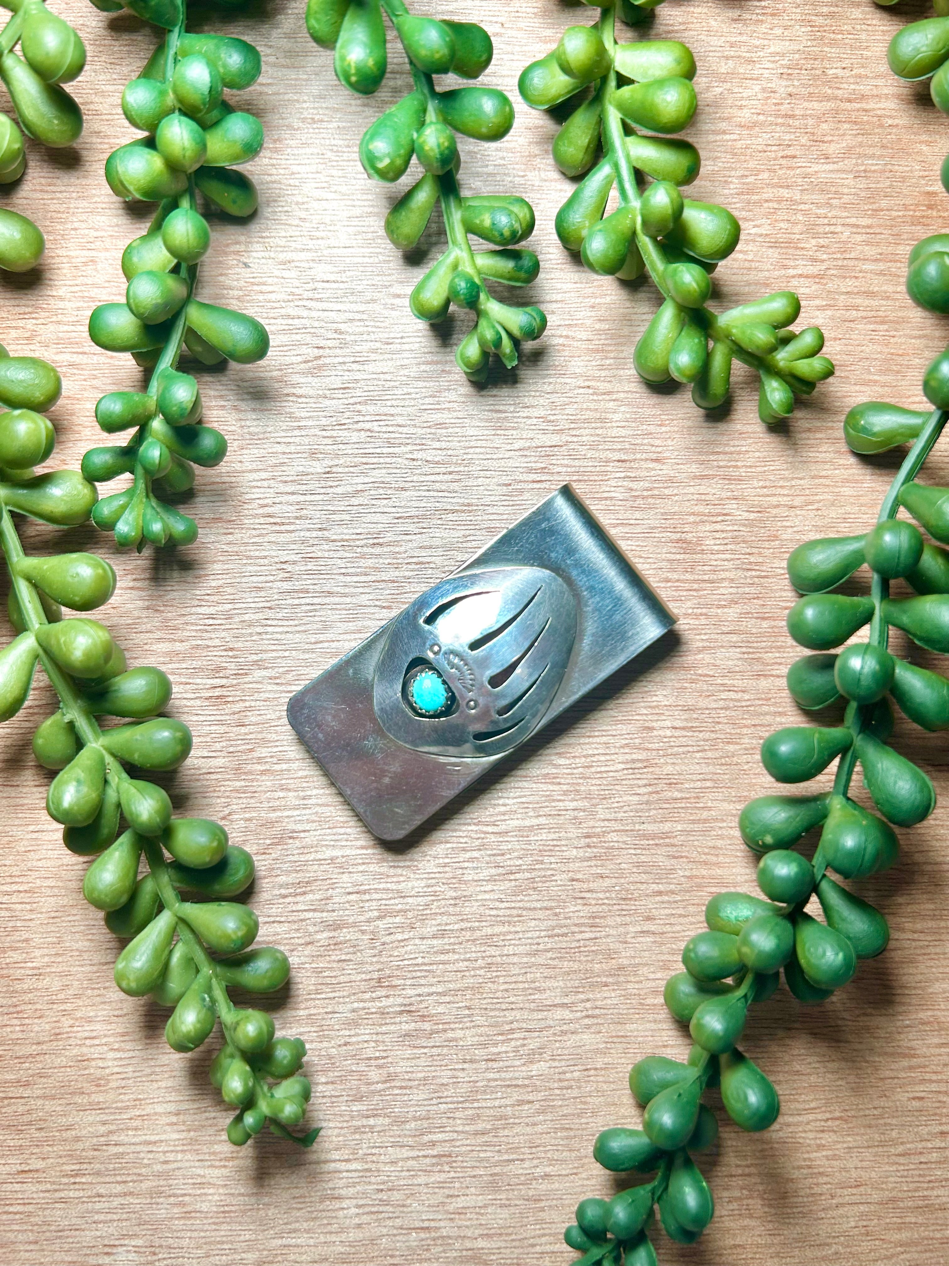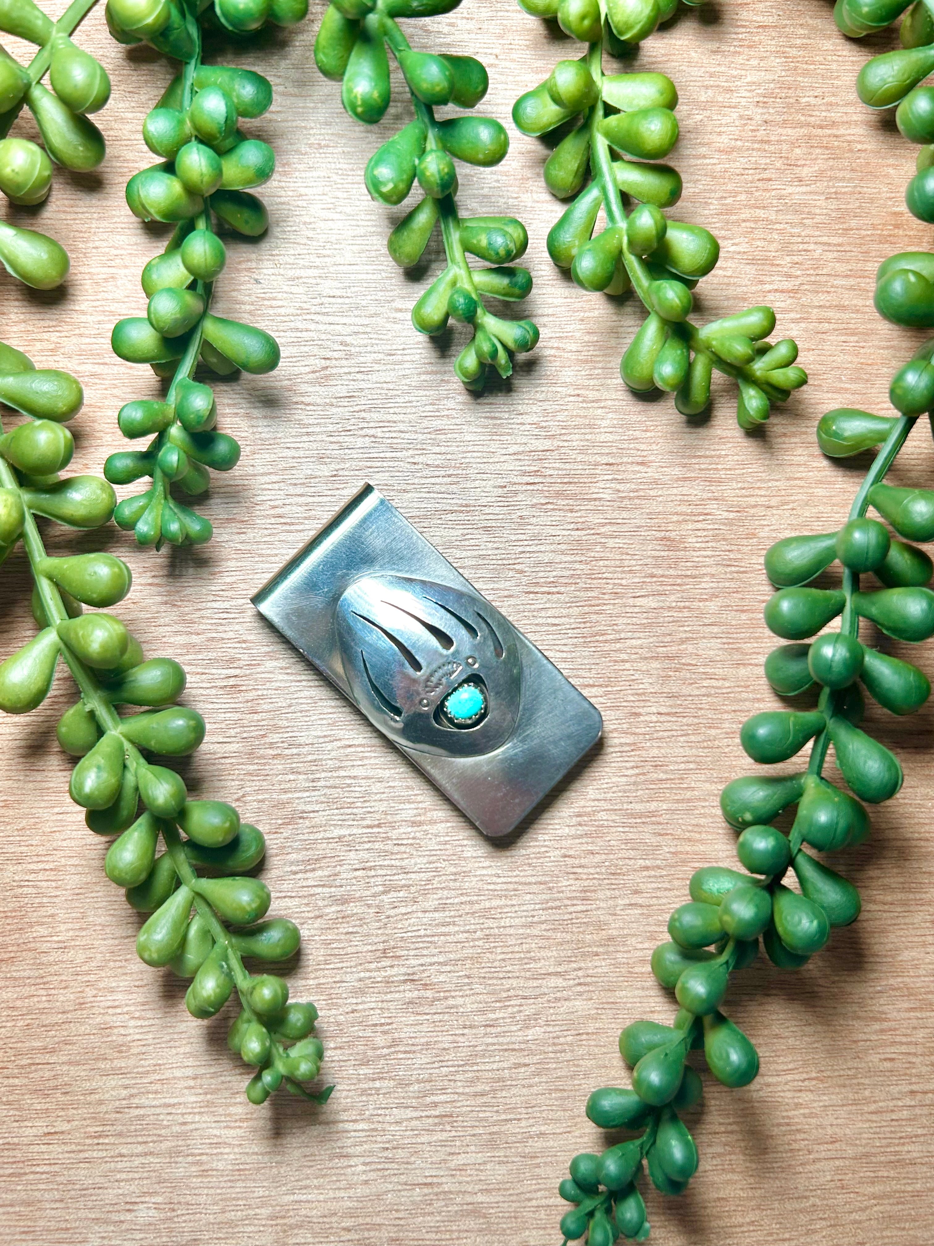 Navajo Made Kingman Turquoise & Sterling Silver Money Clip