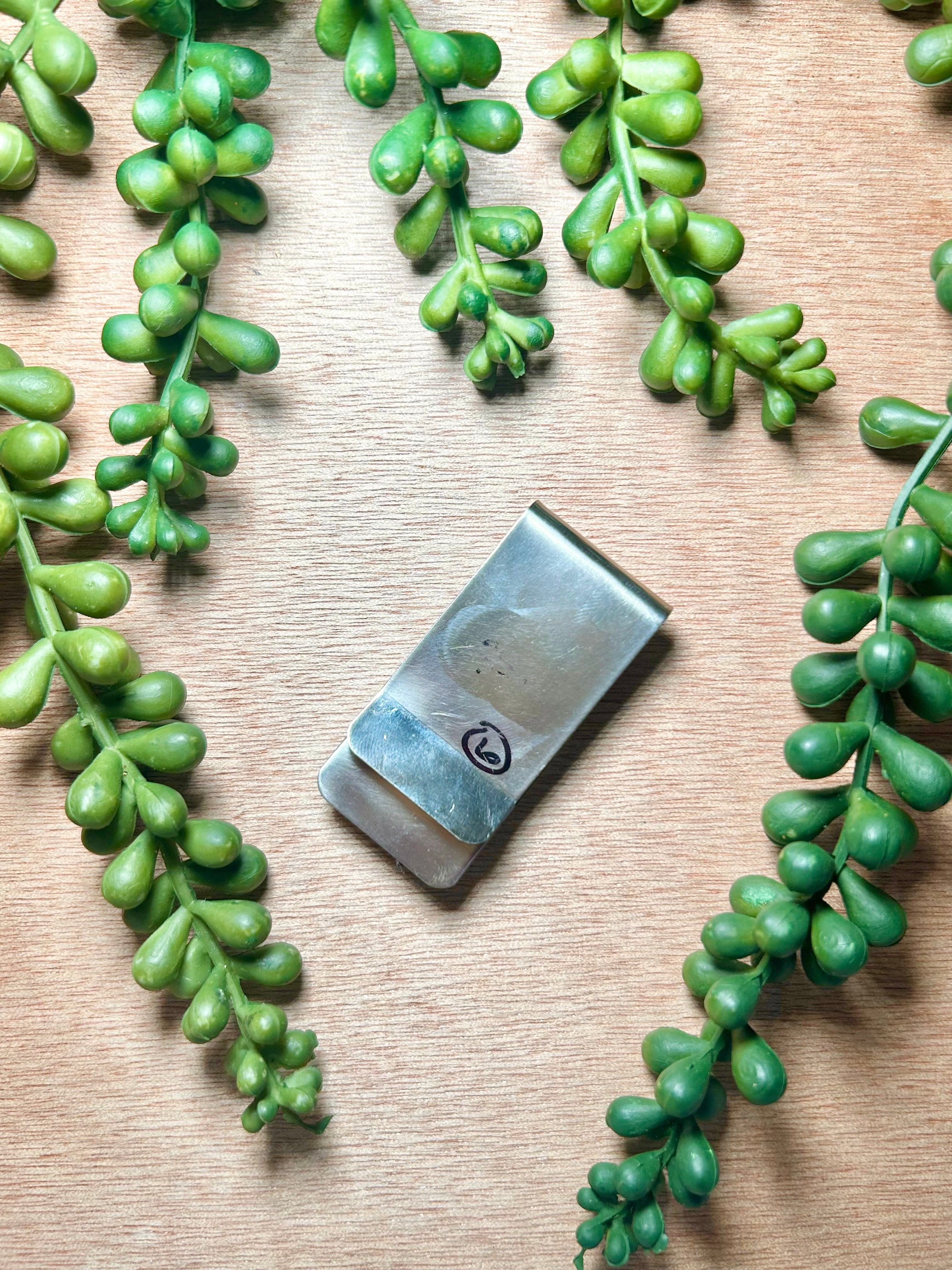 Navajo Made Kingman Turquoise & Sterling Silver Money Clip. It measures 2 inches long and 1 inch wide. Signed by the artist and stamped sterling silver.