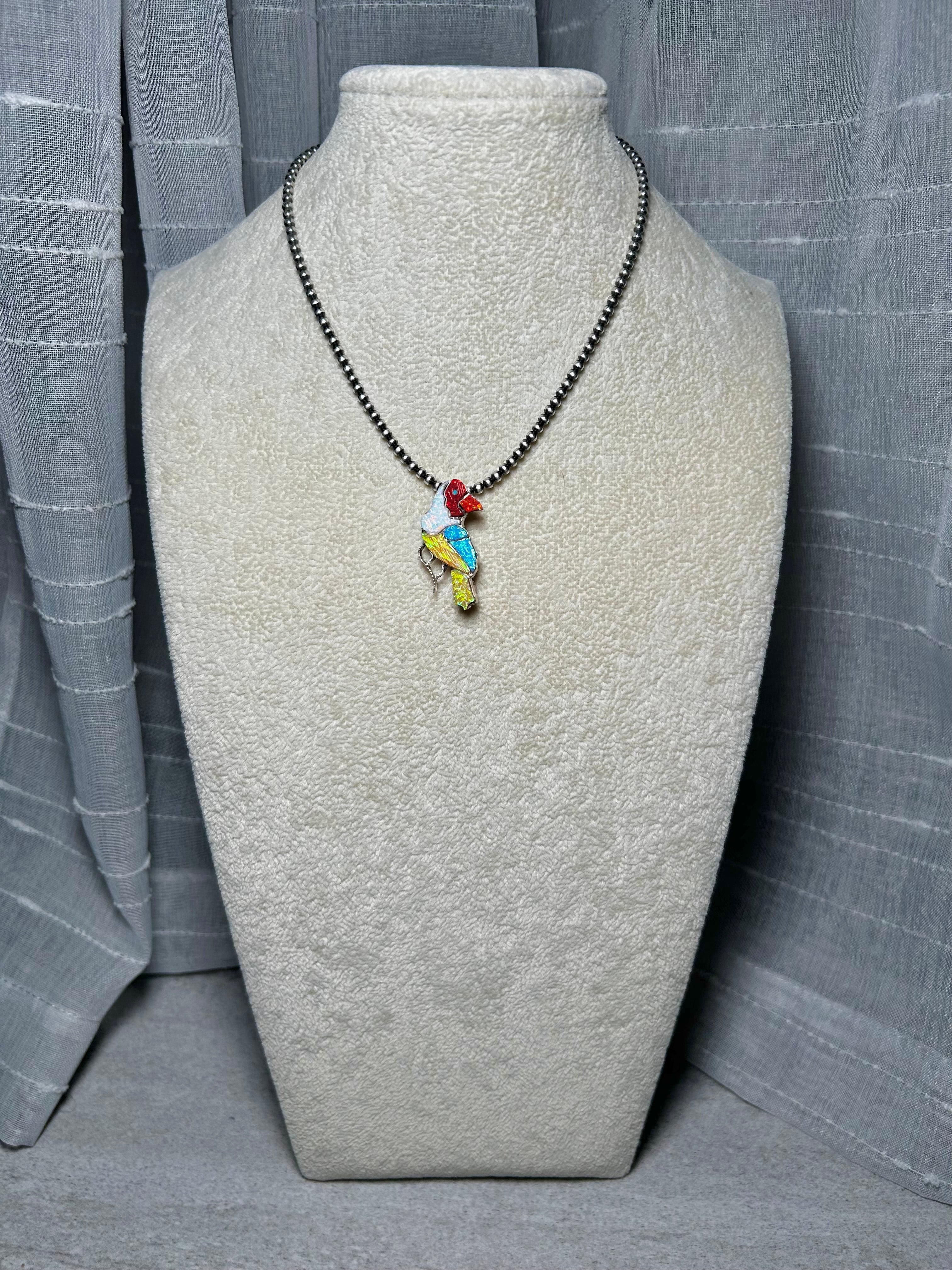 Zuni Man Multi Stone Inlay Sterling Silver Pendant/Pin. It measures 1 3/8 inches long and 5/8 of an inch wide. Pendant/Pin Only! Signed by the artist and stamped sterling silver.