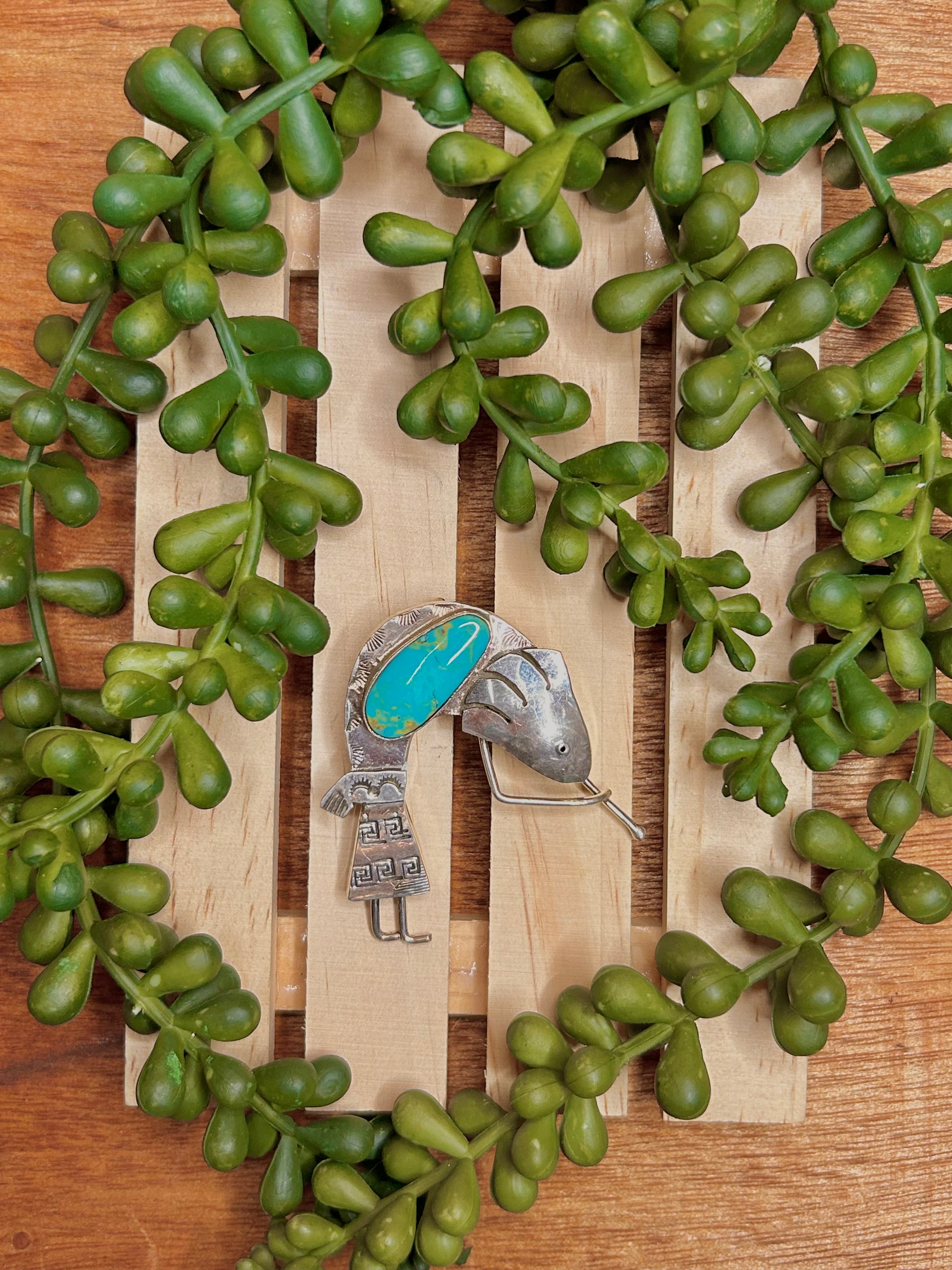 Jhanita Lung Made Kingman Turquoise & Sterling Sliver Pin/Pendant