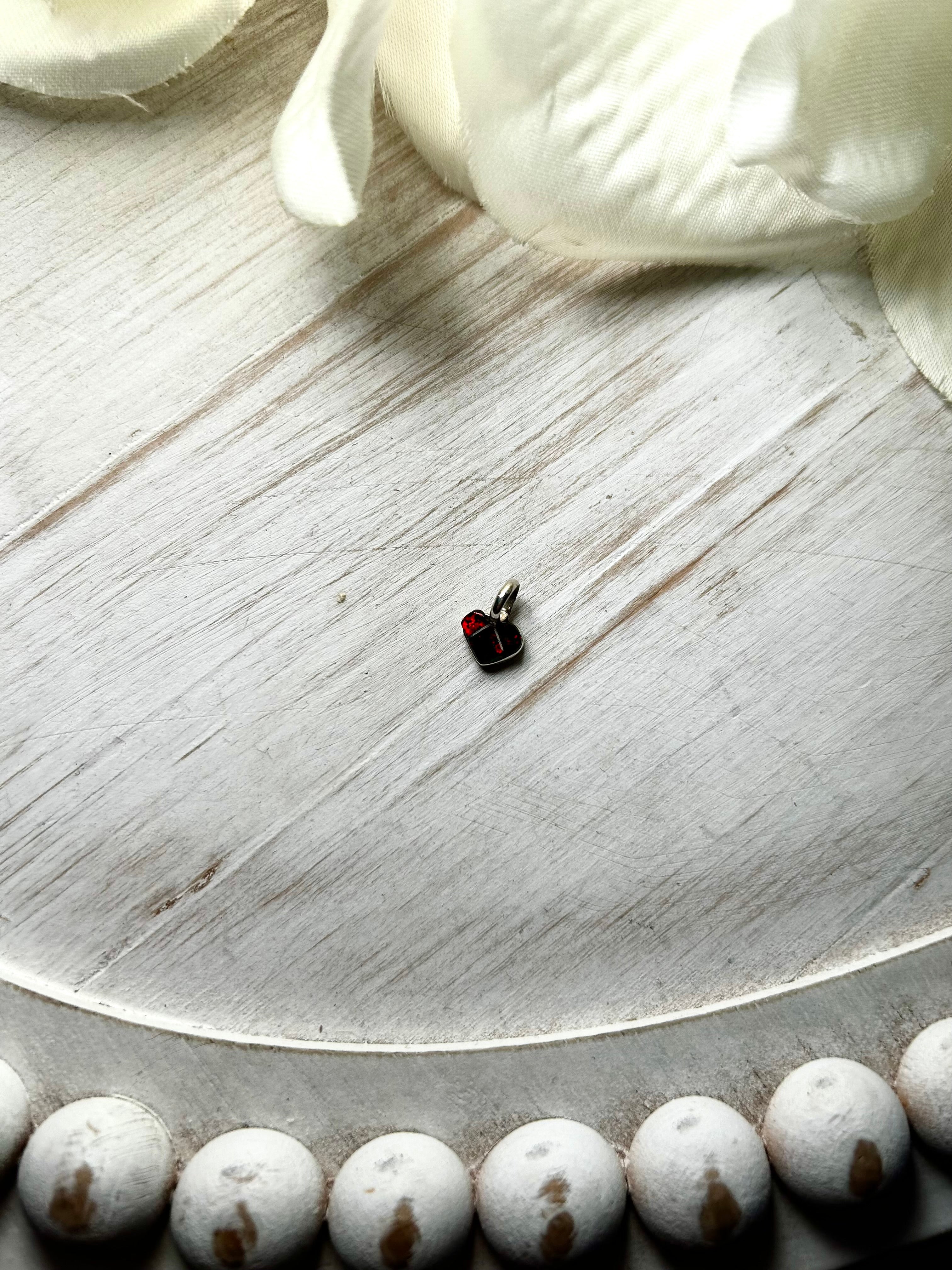 Zuni Made Opal & Sterling Silver Pendant. It measures 3/8 of an inch long and 1/4 of an inch wide. Signed by the artist and stamped sterling silver. Pendant only!