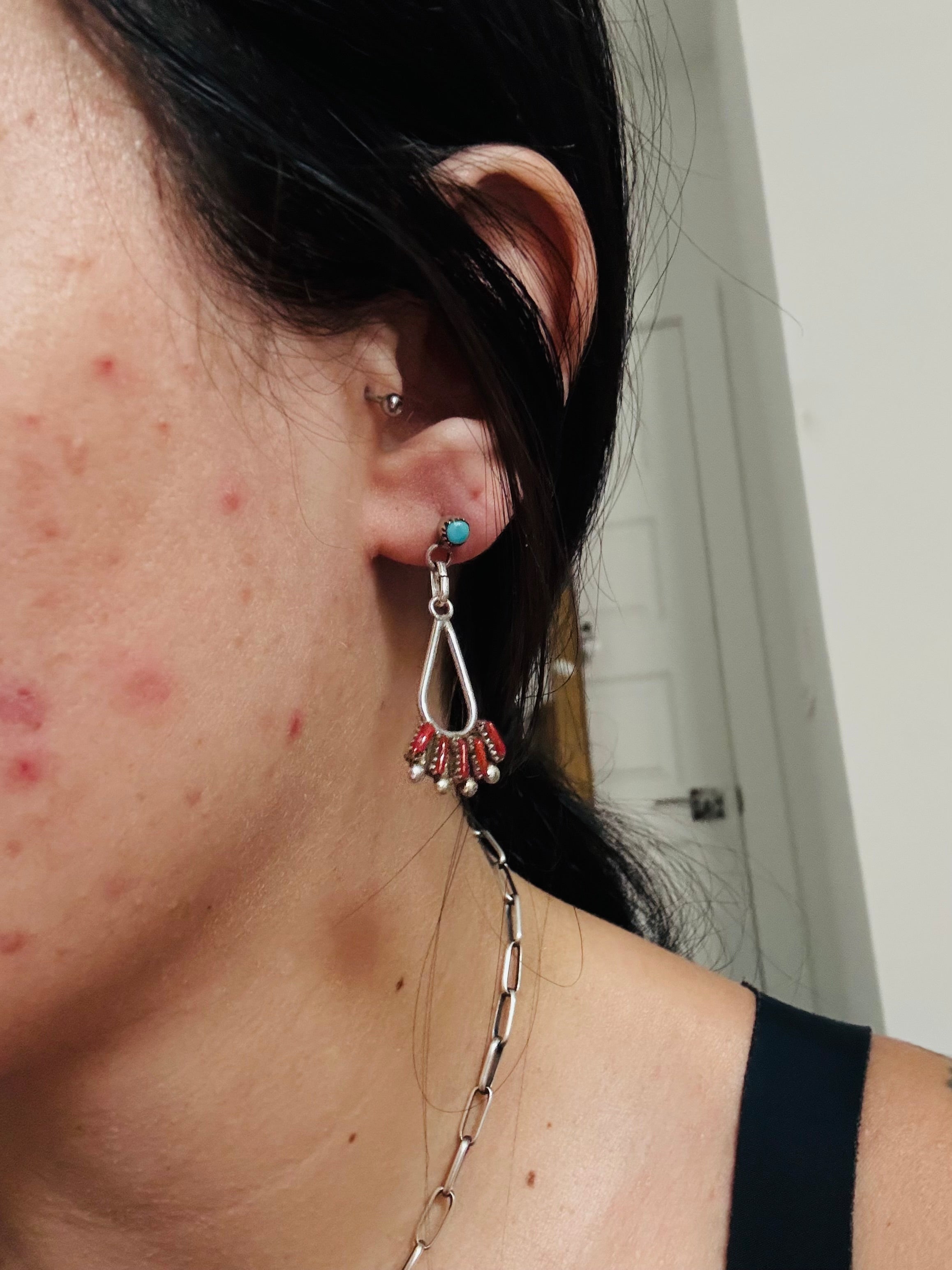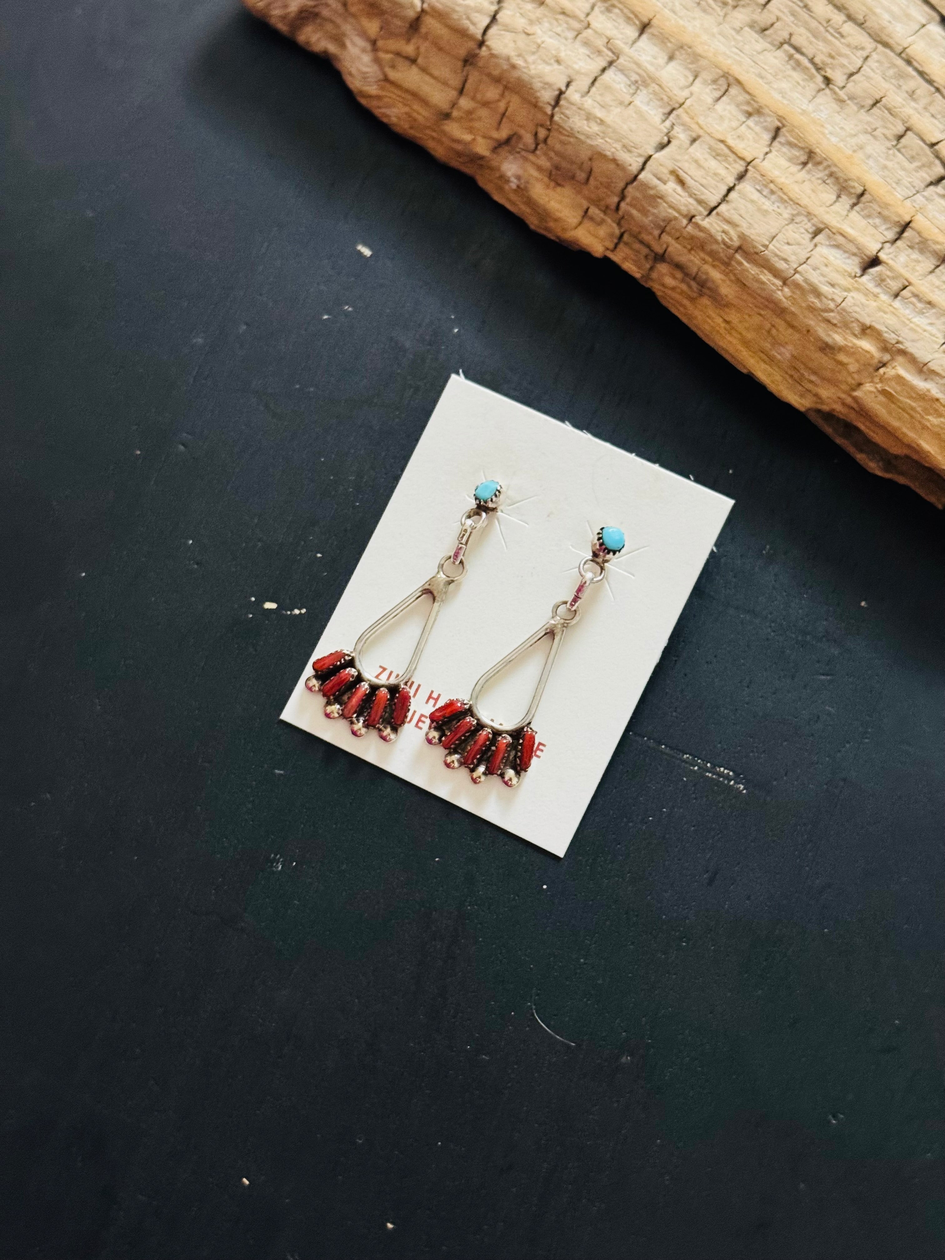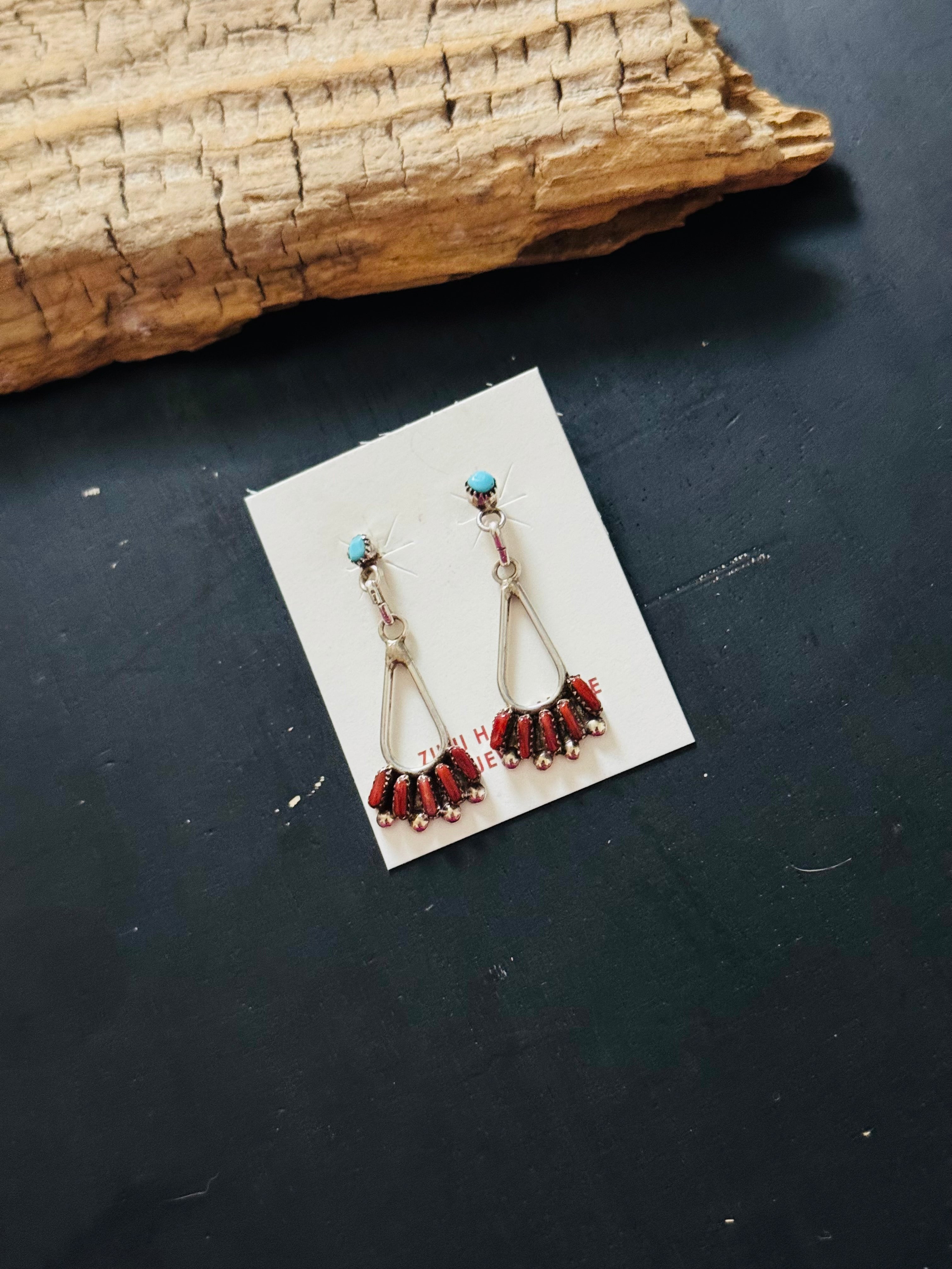 Have a spice of red in your everyday. Zuni Made Multi Stone & Sterling Silver Post Dangle Earrings. It measures 1 1/2 inches long and 1/2 of an inch wide. Stamped sterling silver and signed by artist.