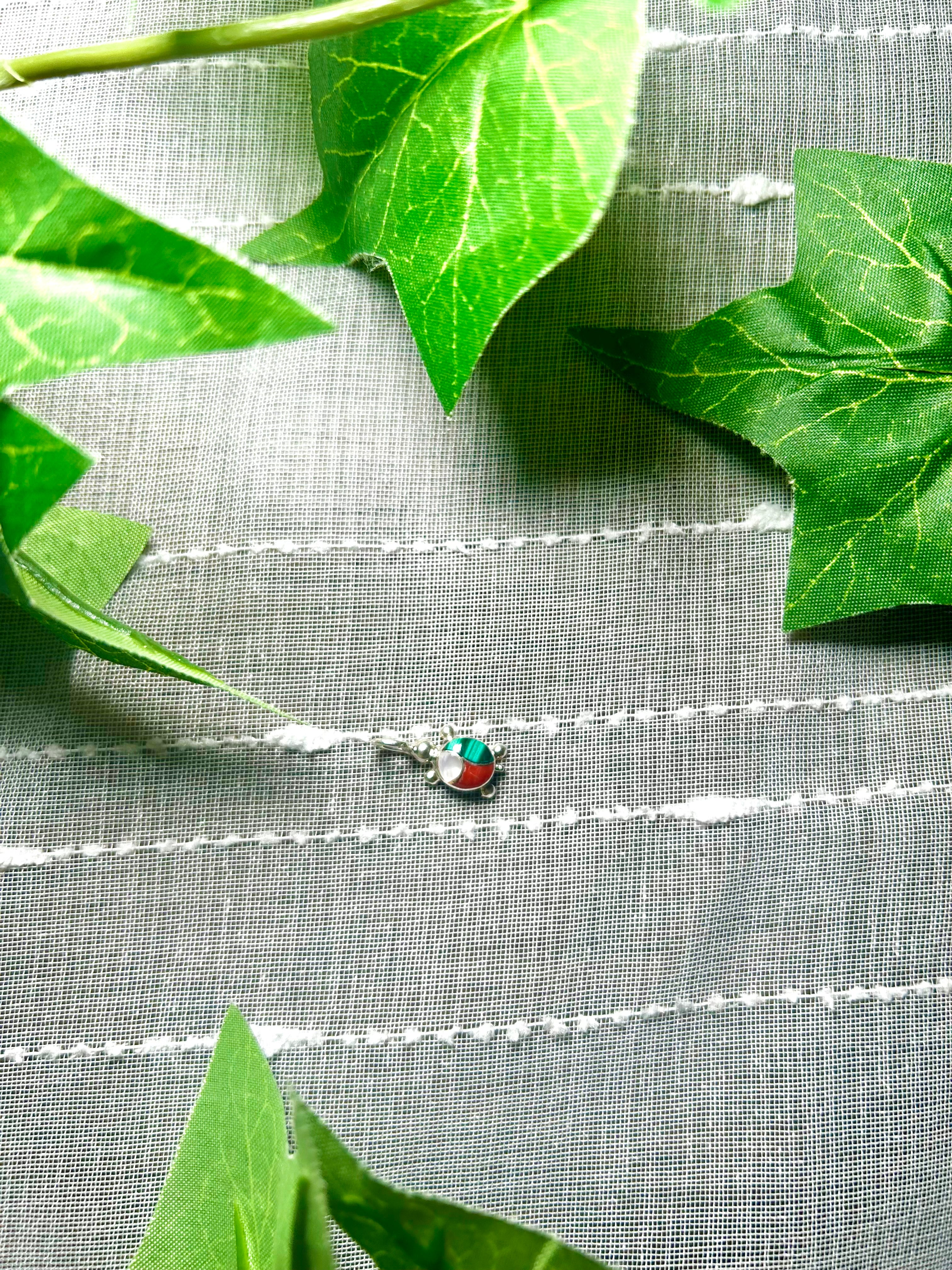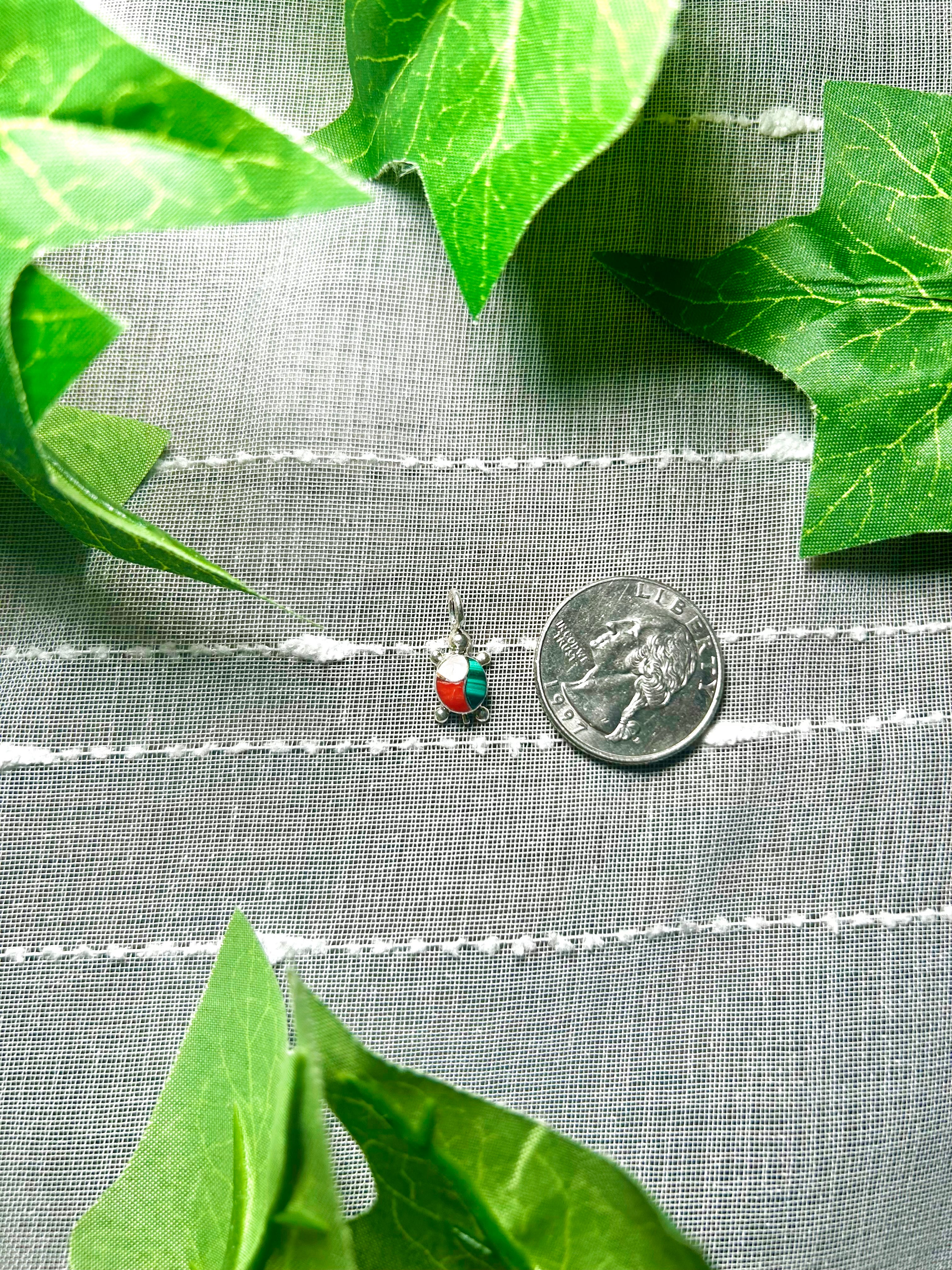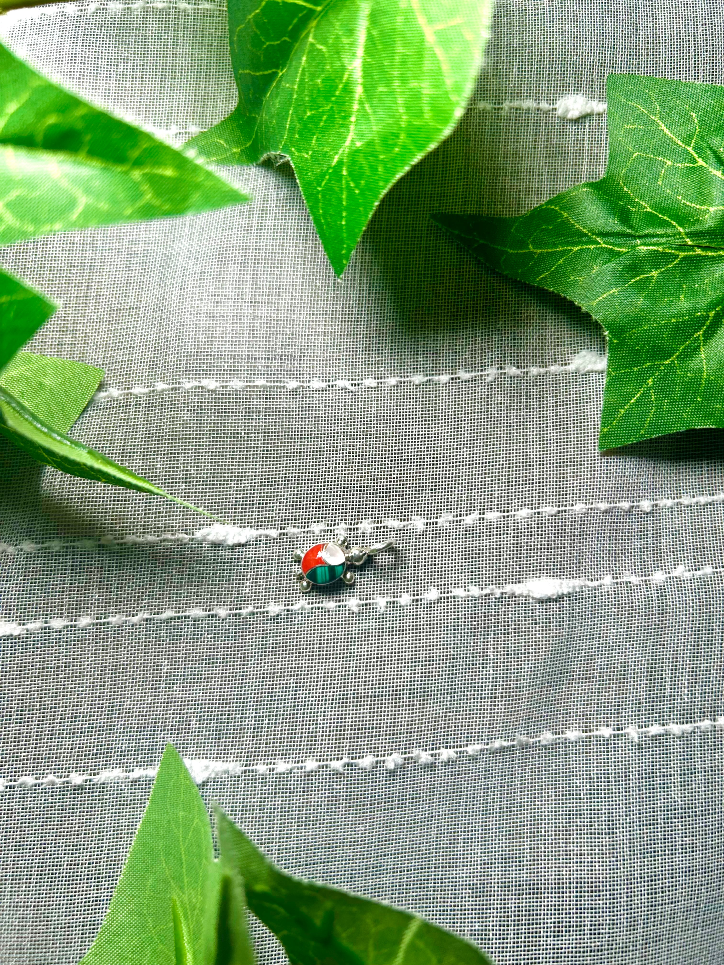 Zuni Multi Stone & Sterling Silver Pendant. It measures 5/8 of an inch long and 3/8 of an inch wide. Pendant Only! Signed by the artist and stamped sterling silver.