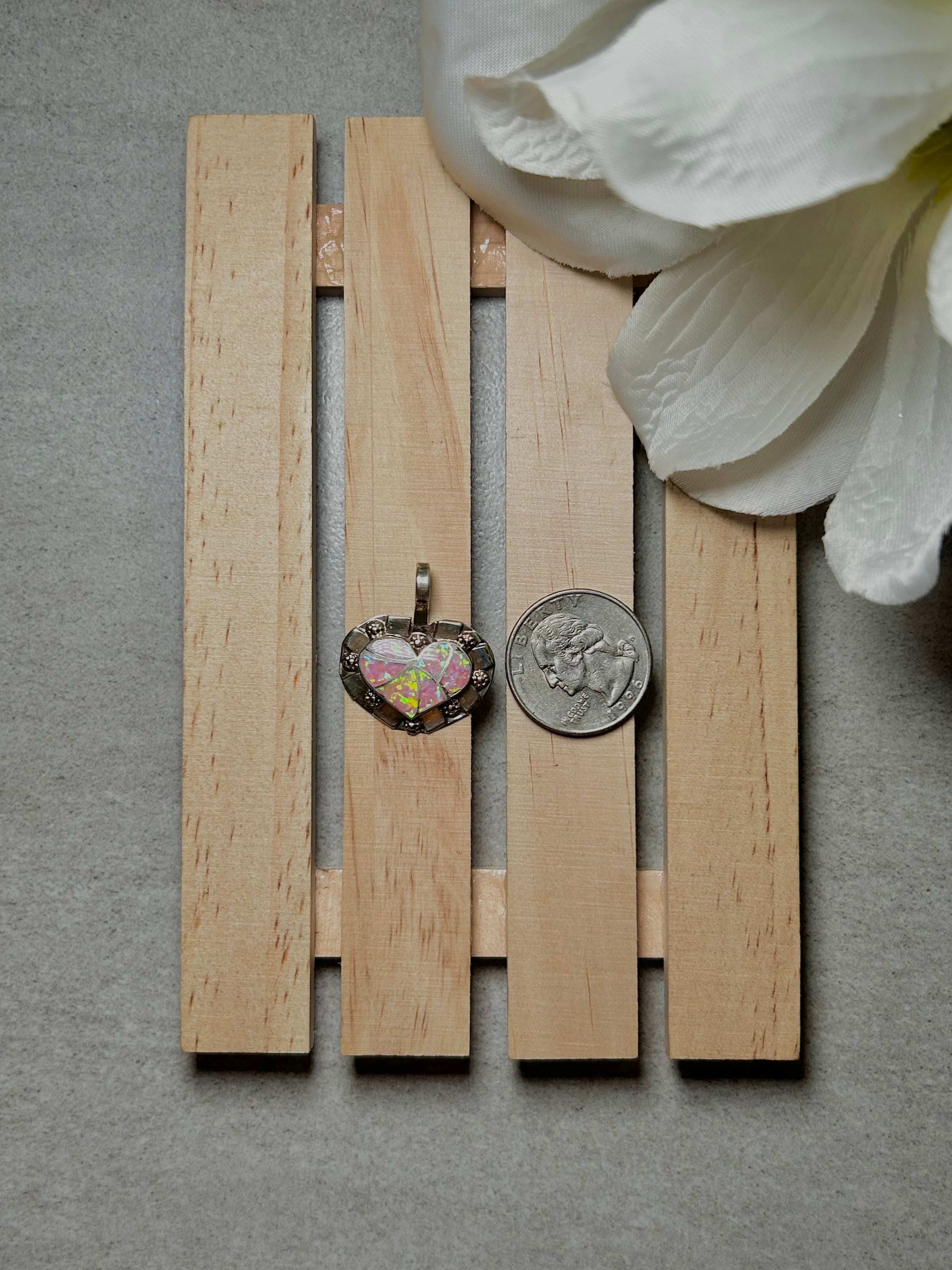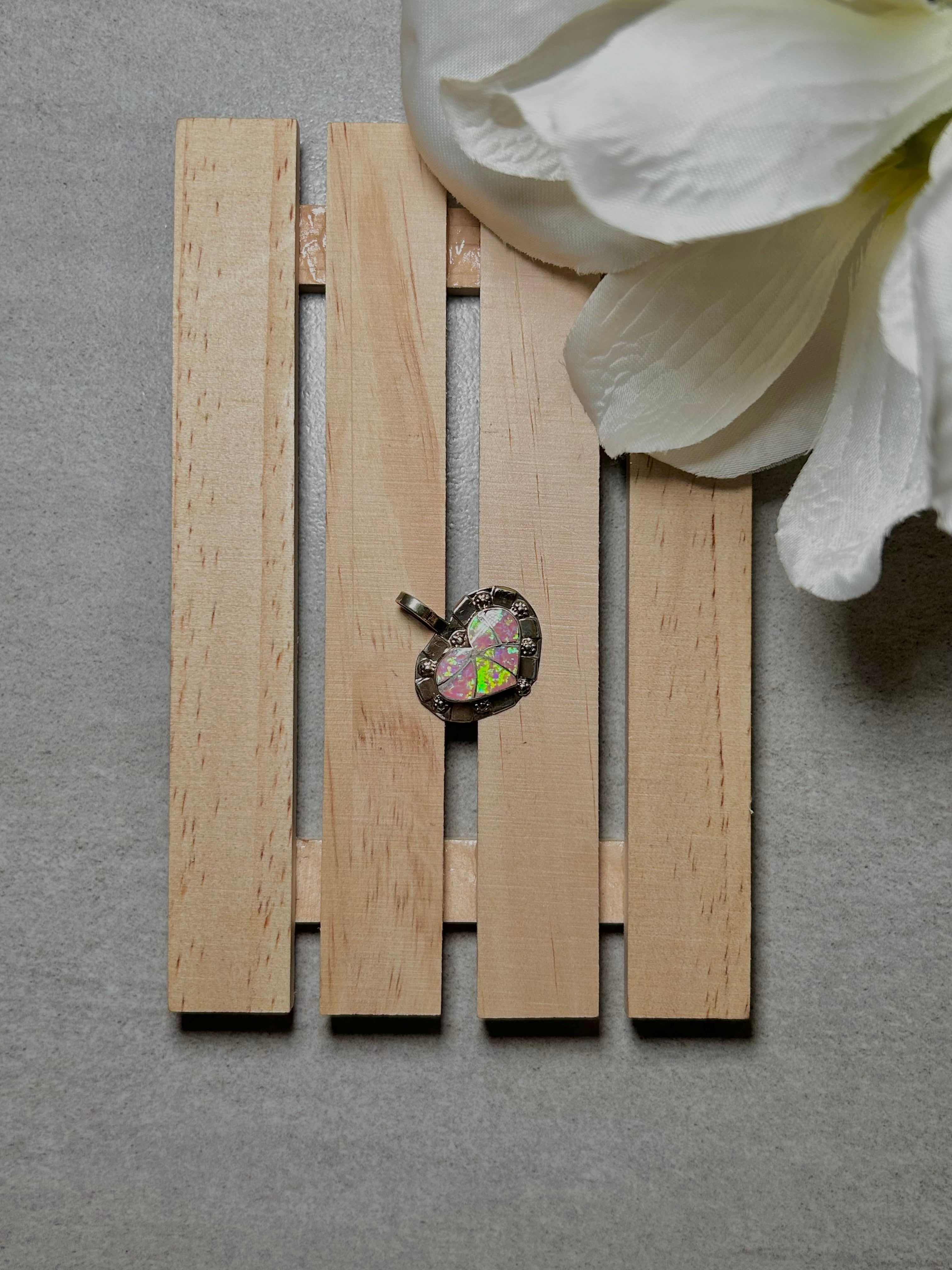 Zuni Multi Opal & Sterling Silver Pendant. It measures 1 1/8 inches long and 1 inch wide. Pendant Only. Signed by the artist and stamped sterling silver.