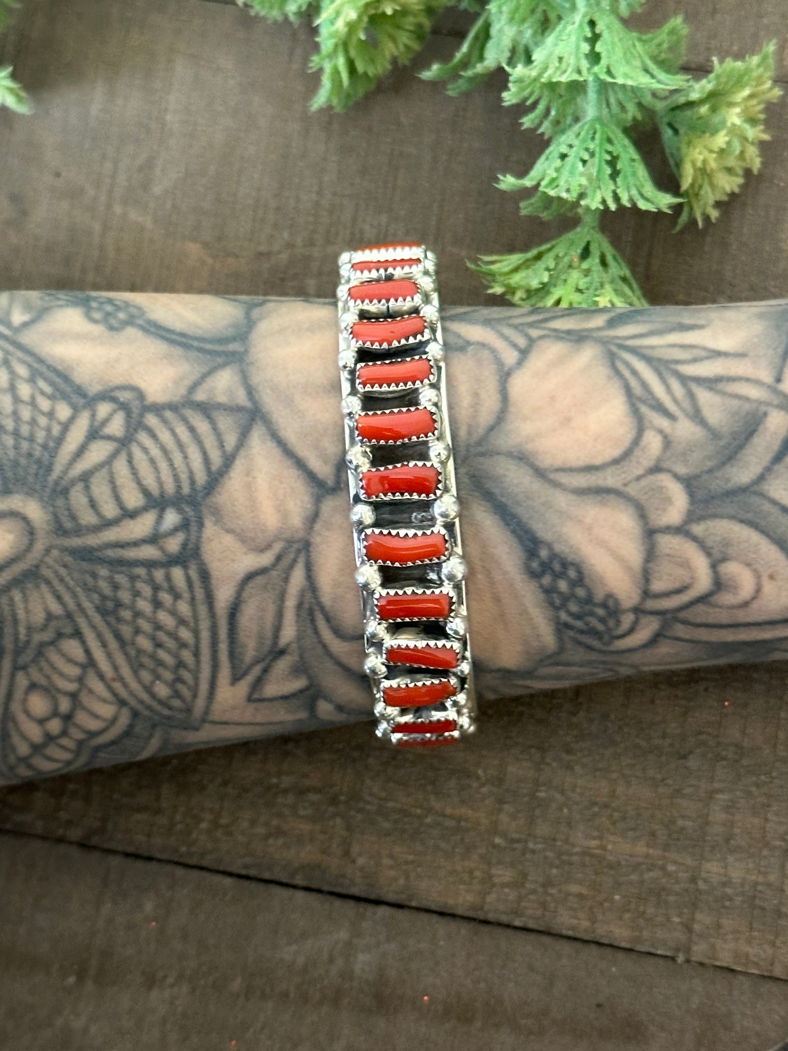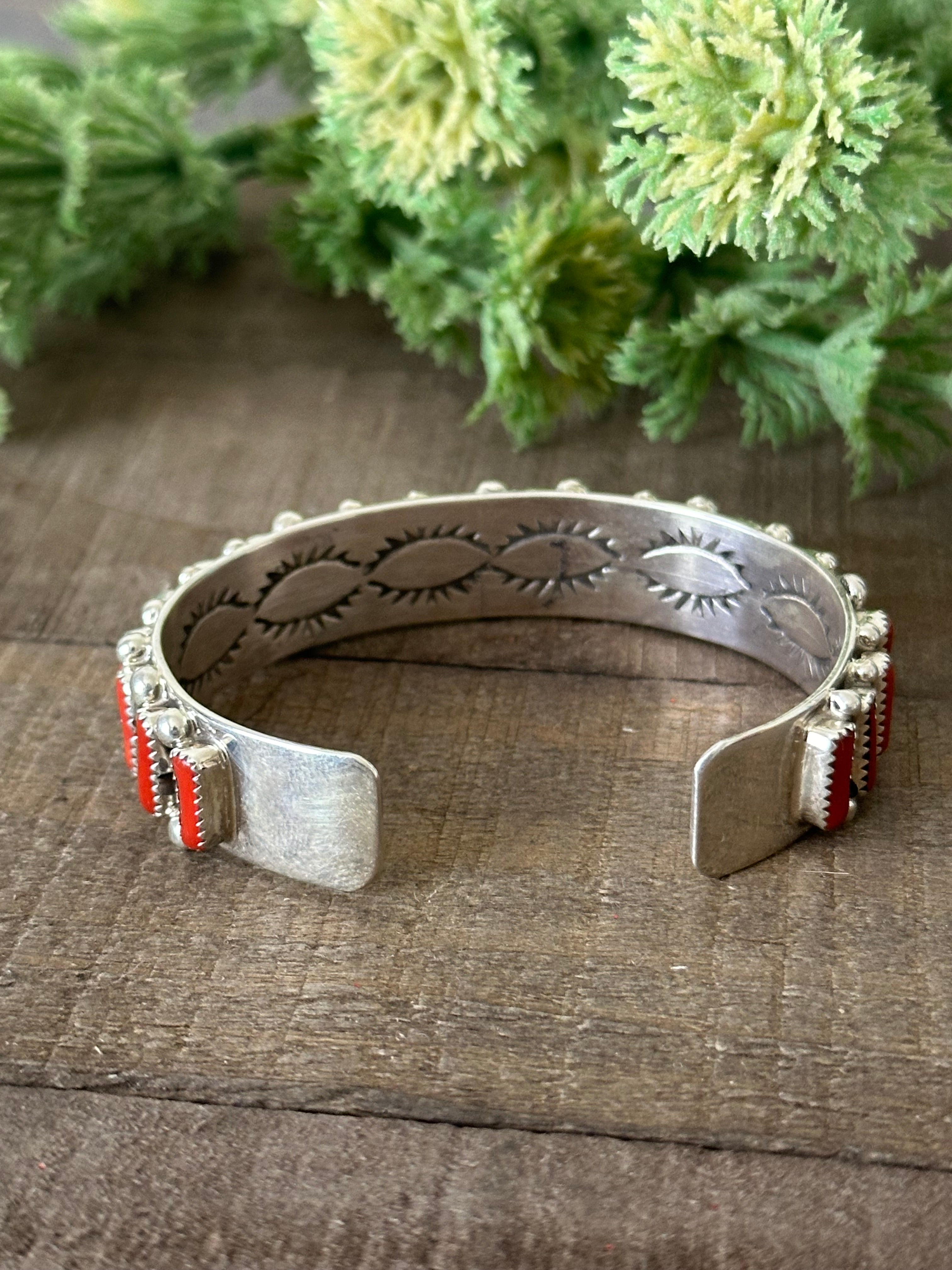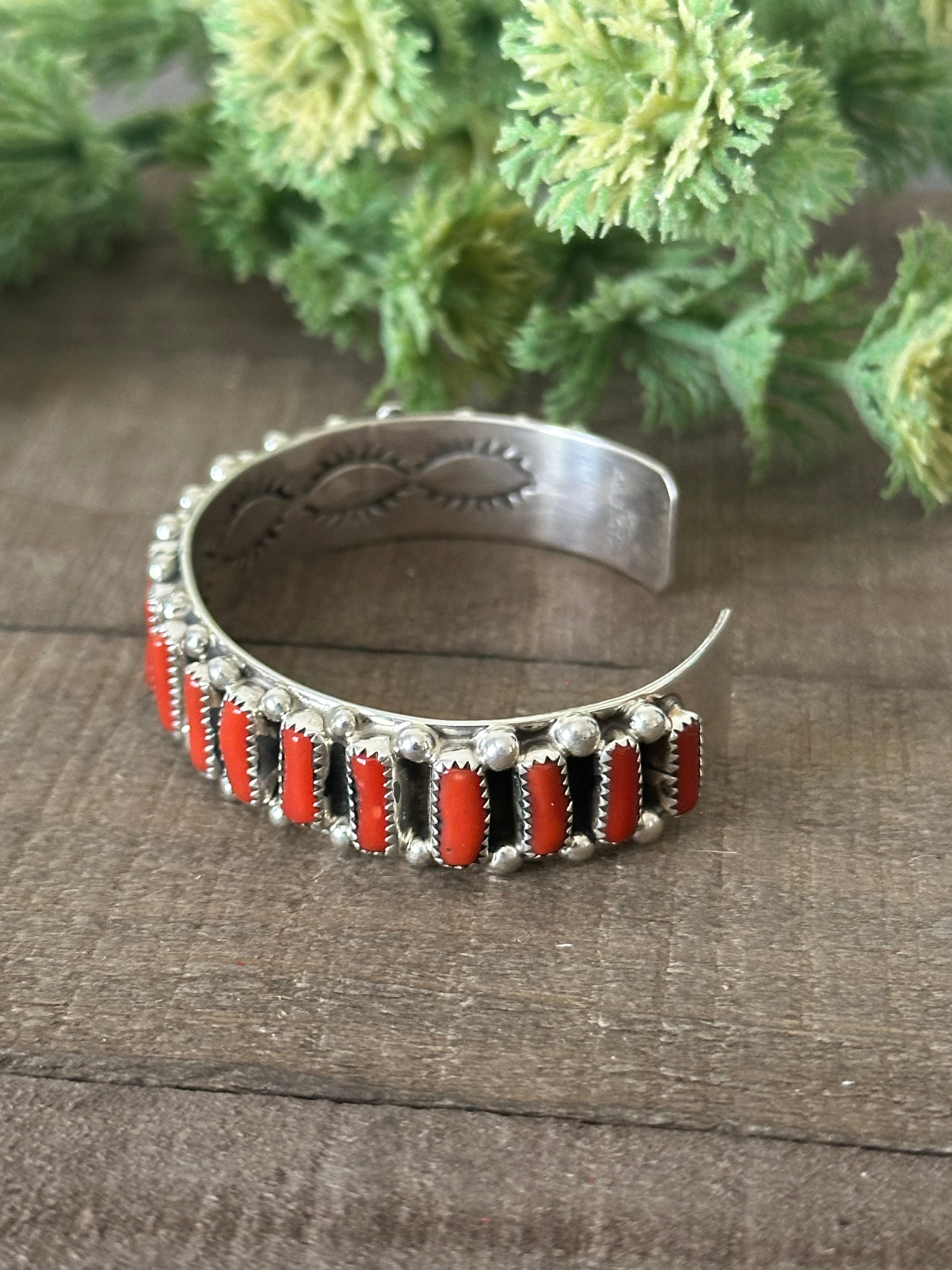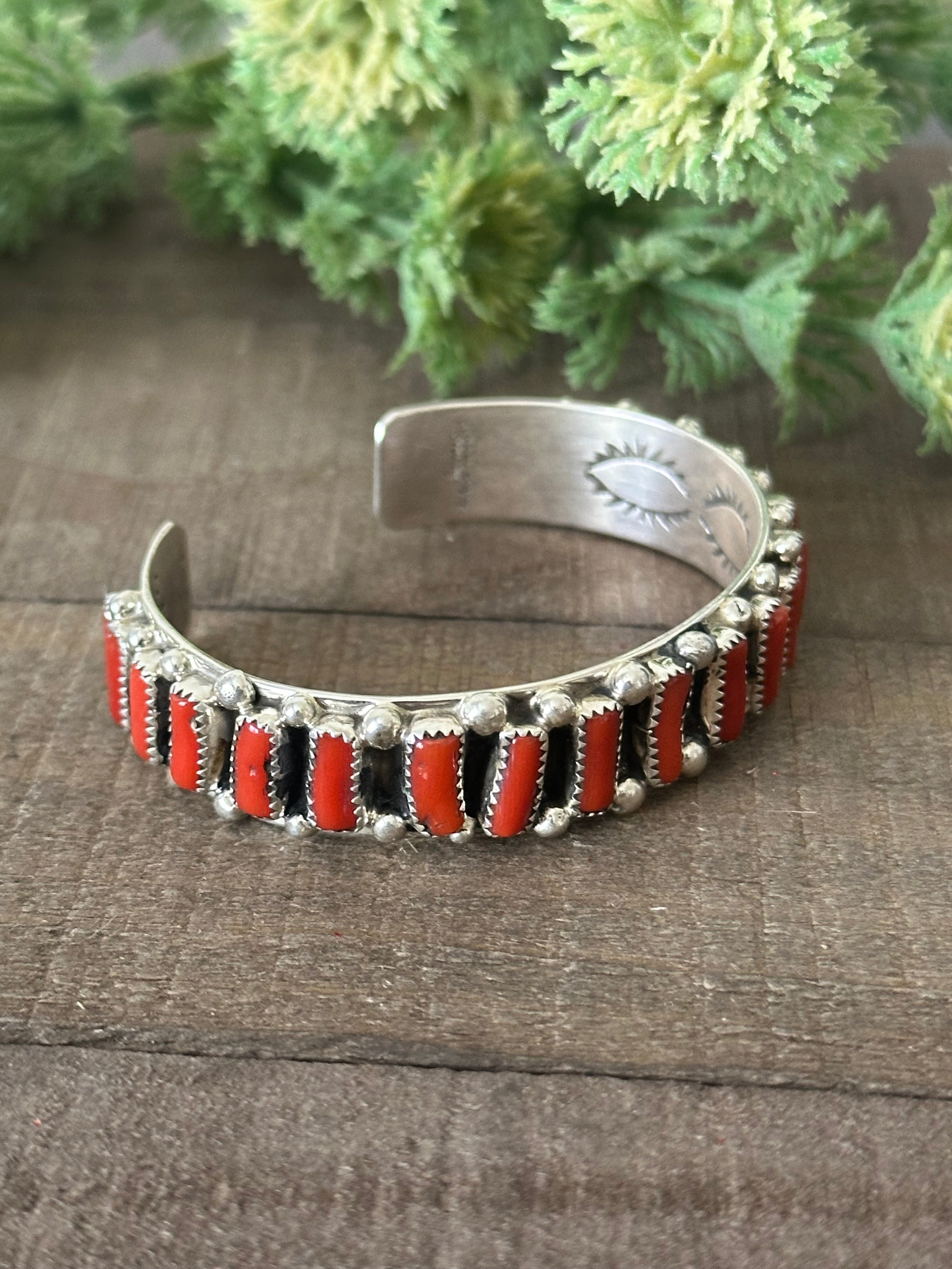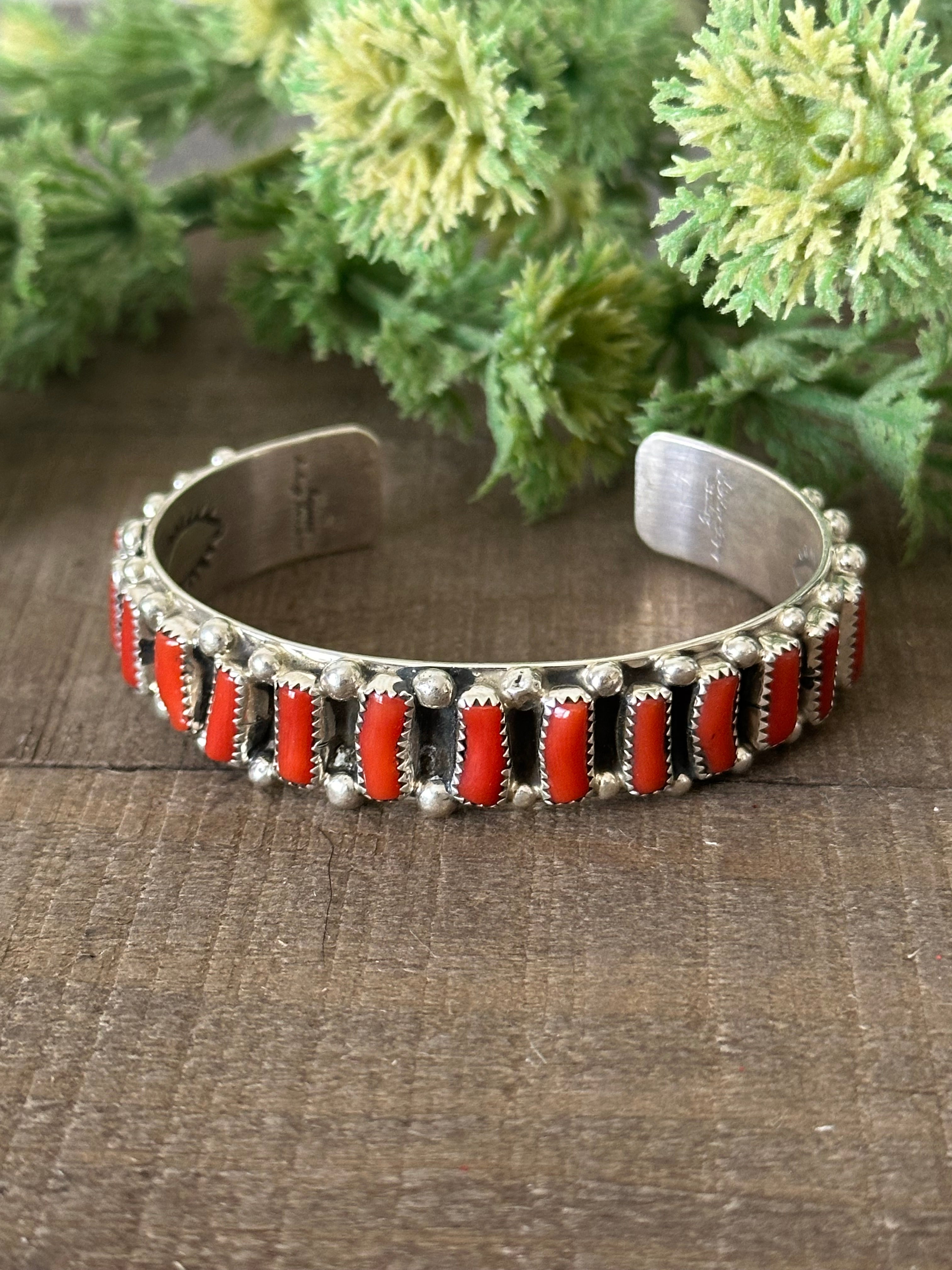 Darlene Begay Red Coral & Sterling Silver Cuff Bracelet