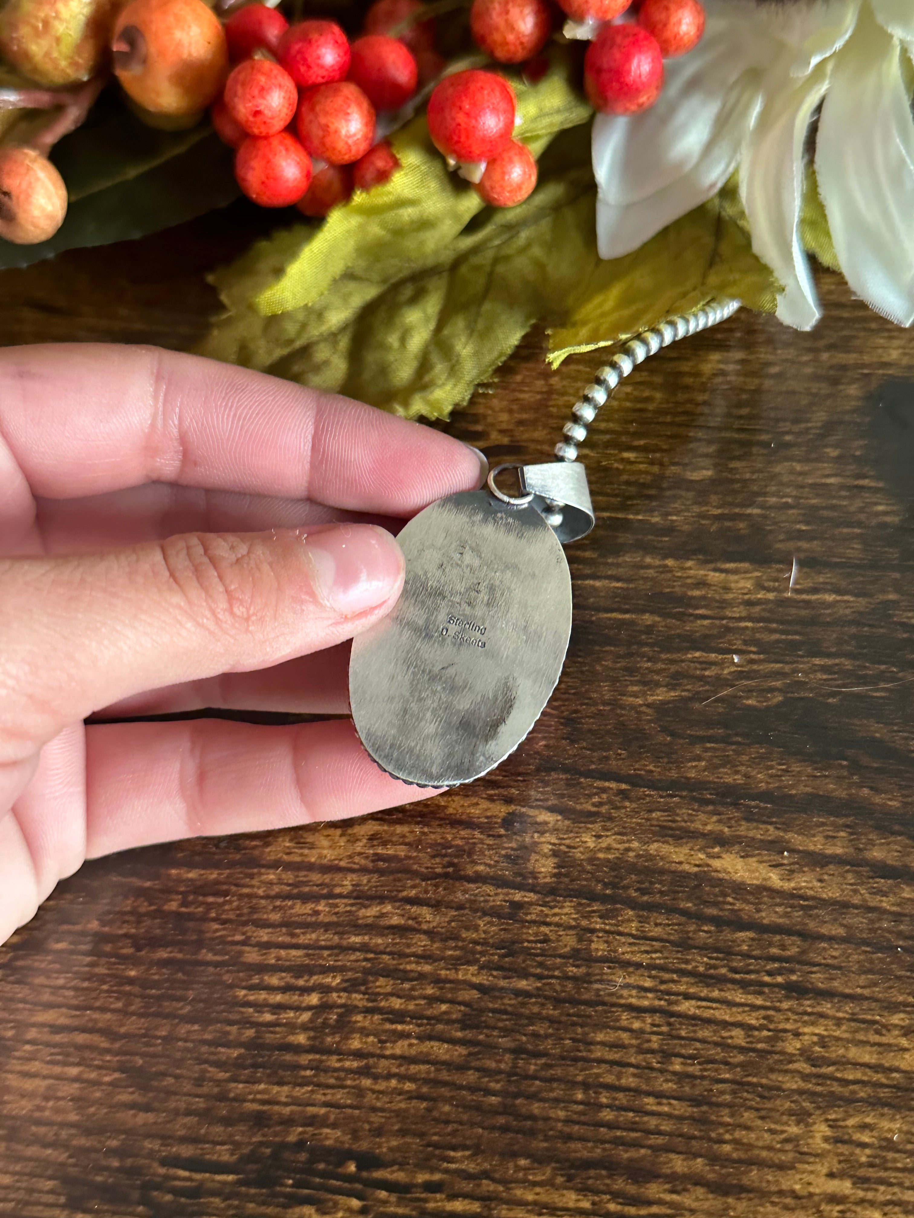 Dave Skeets Lapis & Sterling Silver Pendant. It measures 2 1/4 inches long and 1 inch wide. Pendant Only!! Signed by the artist and stamped sterling silver.