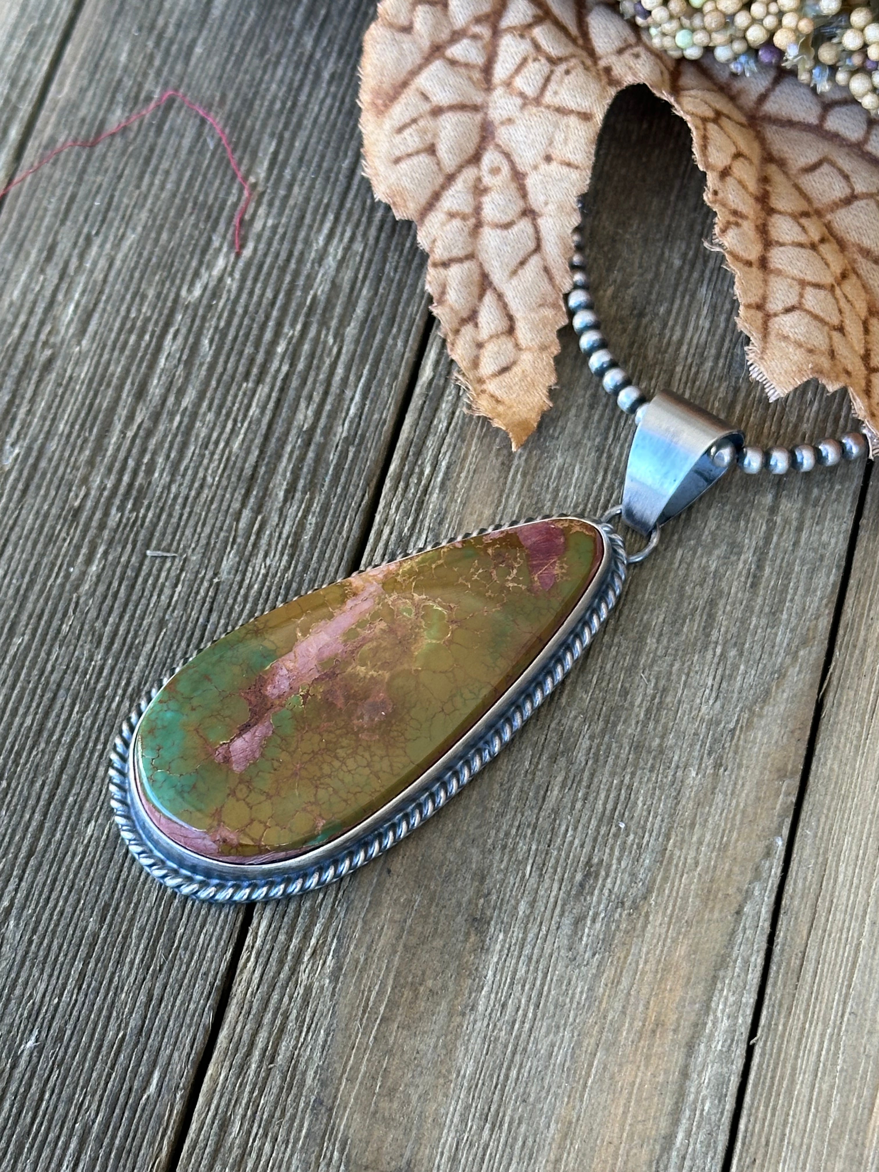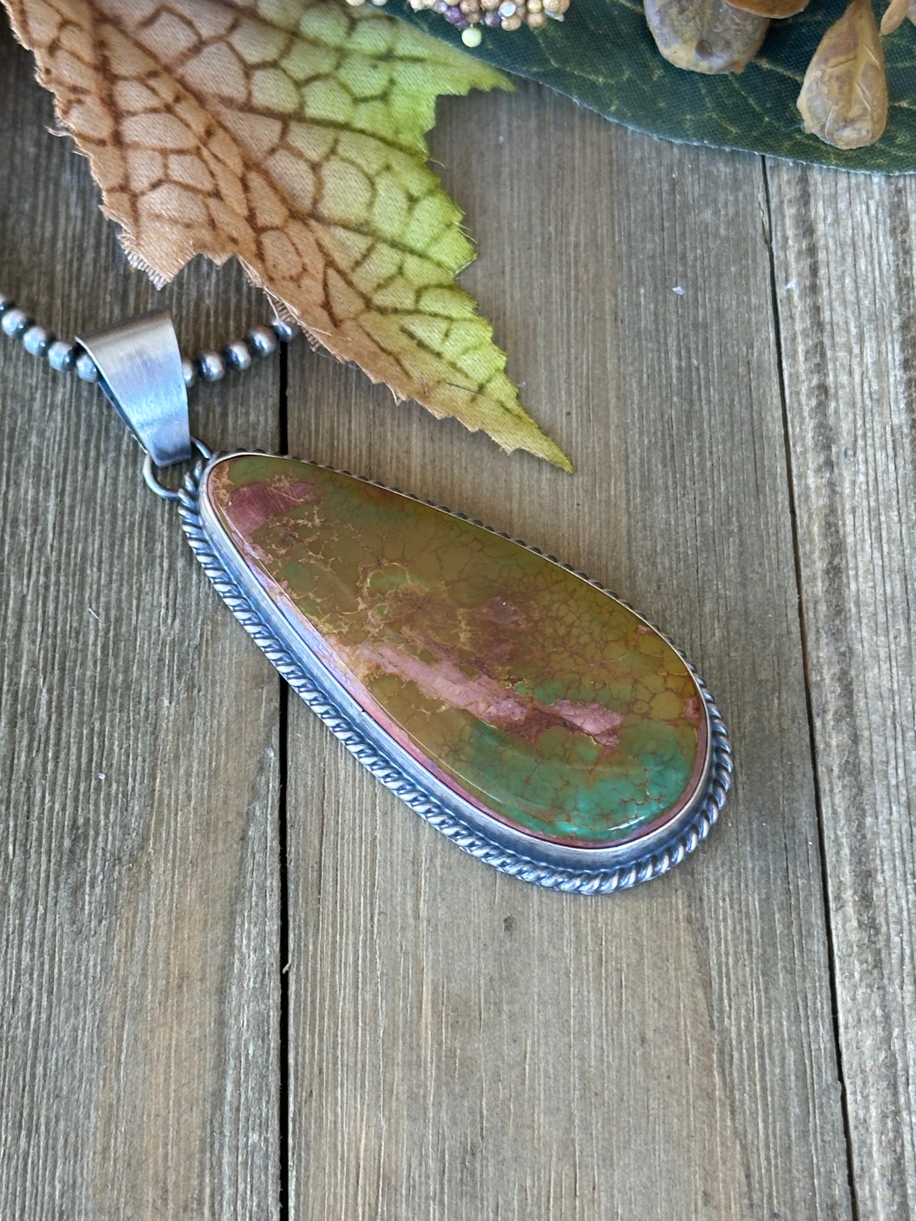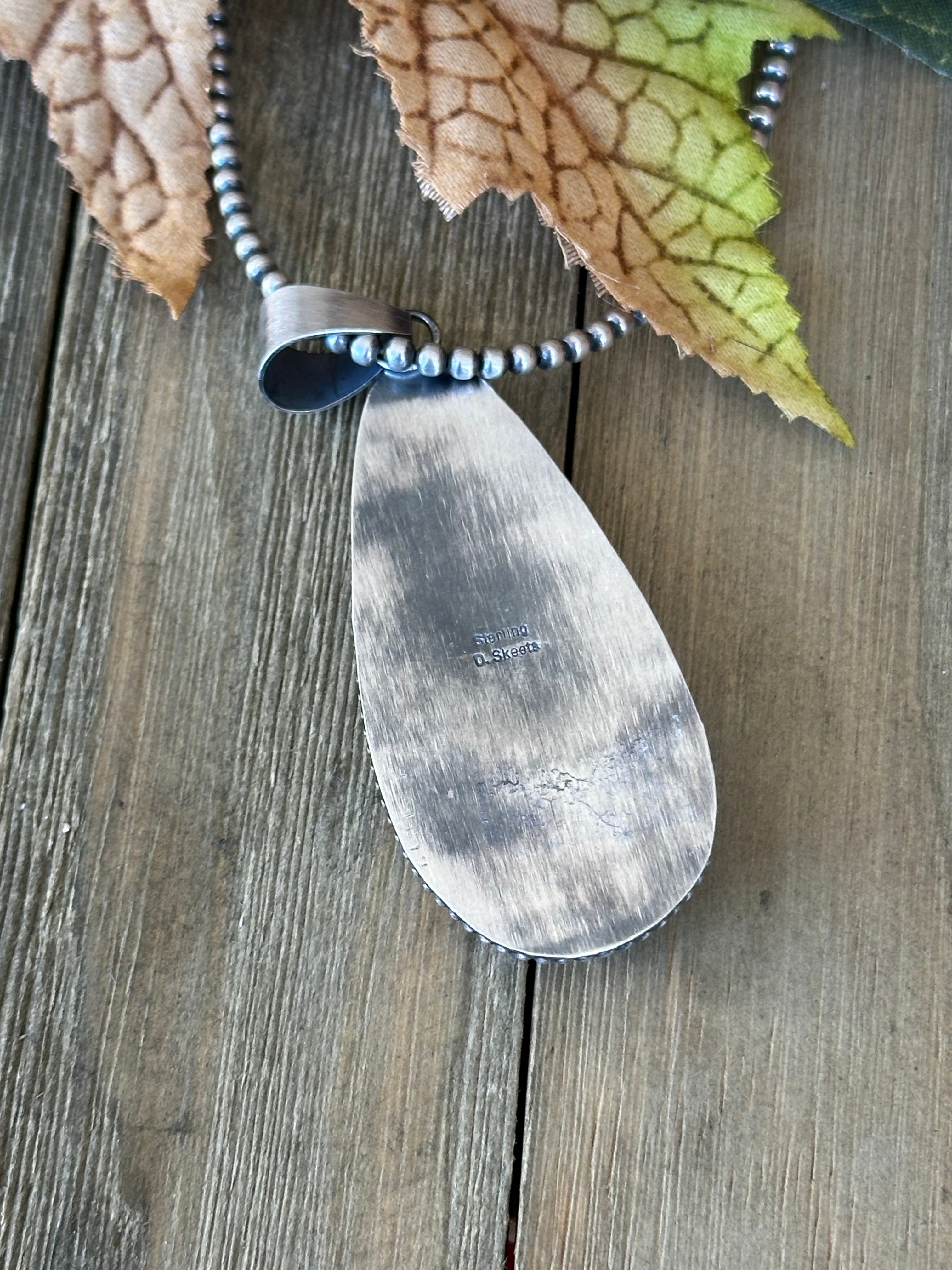 Dave Skeets Royston Turquoise & Sterling Silver Pendant. It measures 3 inches long and 1 1/8 inches wide. Pendant Only!! Signed by the artist and stamped sterling silver.