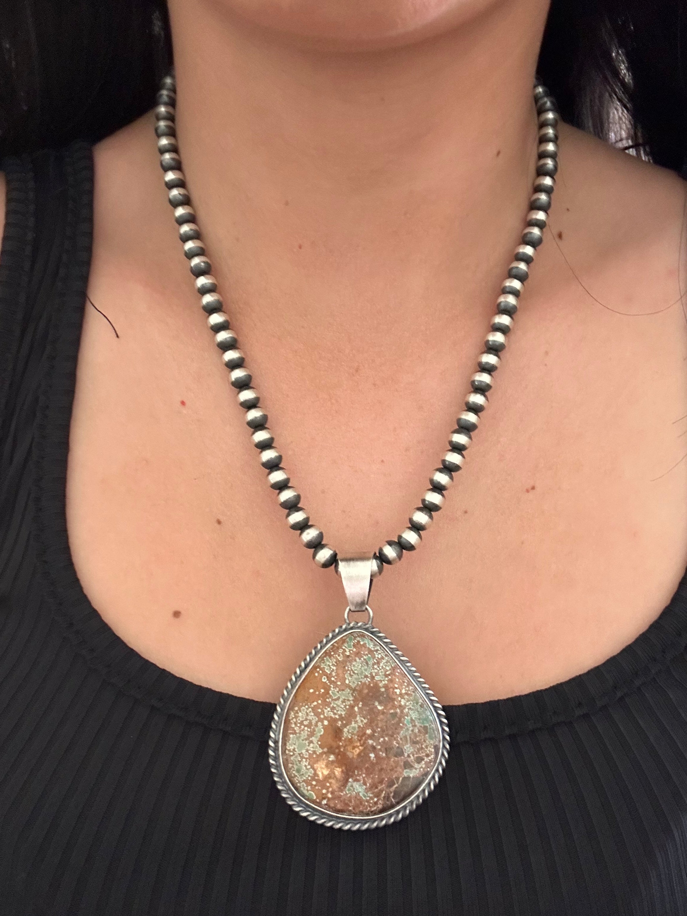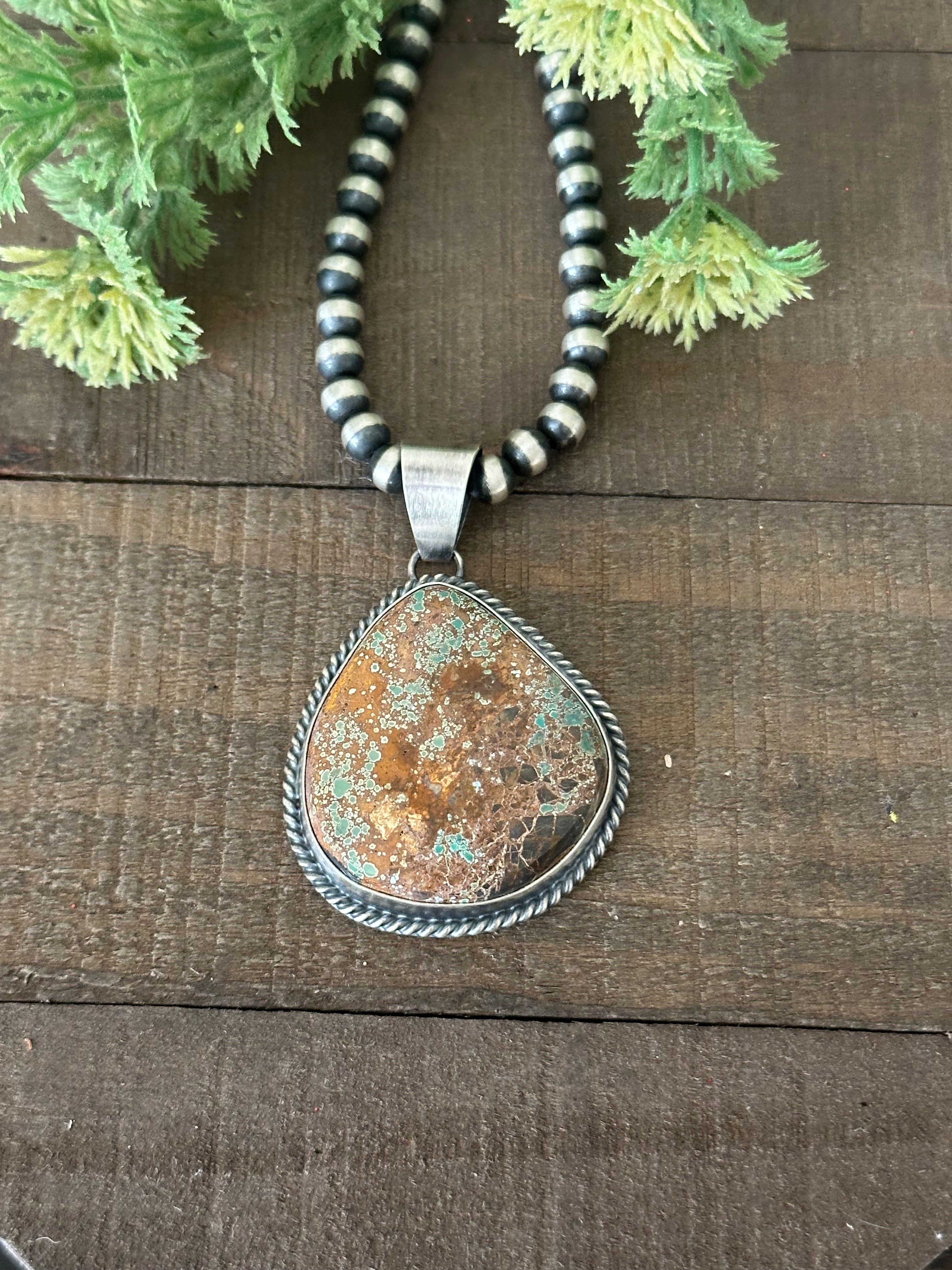 Dave Skeets Royston Turquoise & Sterling Silver Pendant. It measures 2 1/2 inches long and 1 5/8 inches wide. Pendant Only!! Signed by the artist and stamped sterling silver.