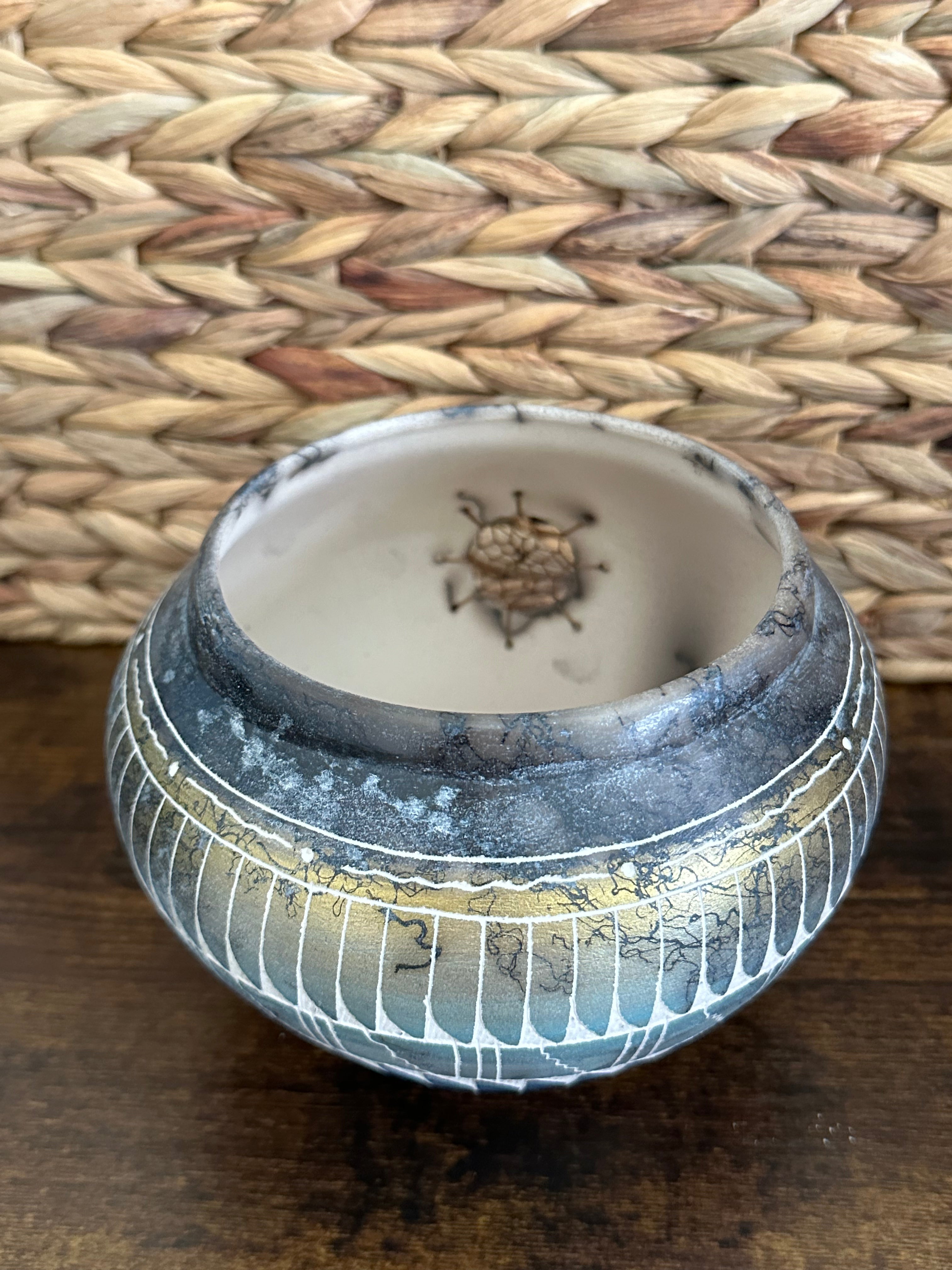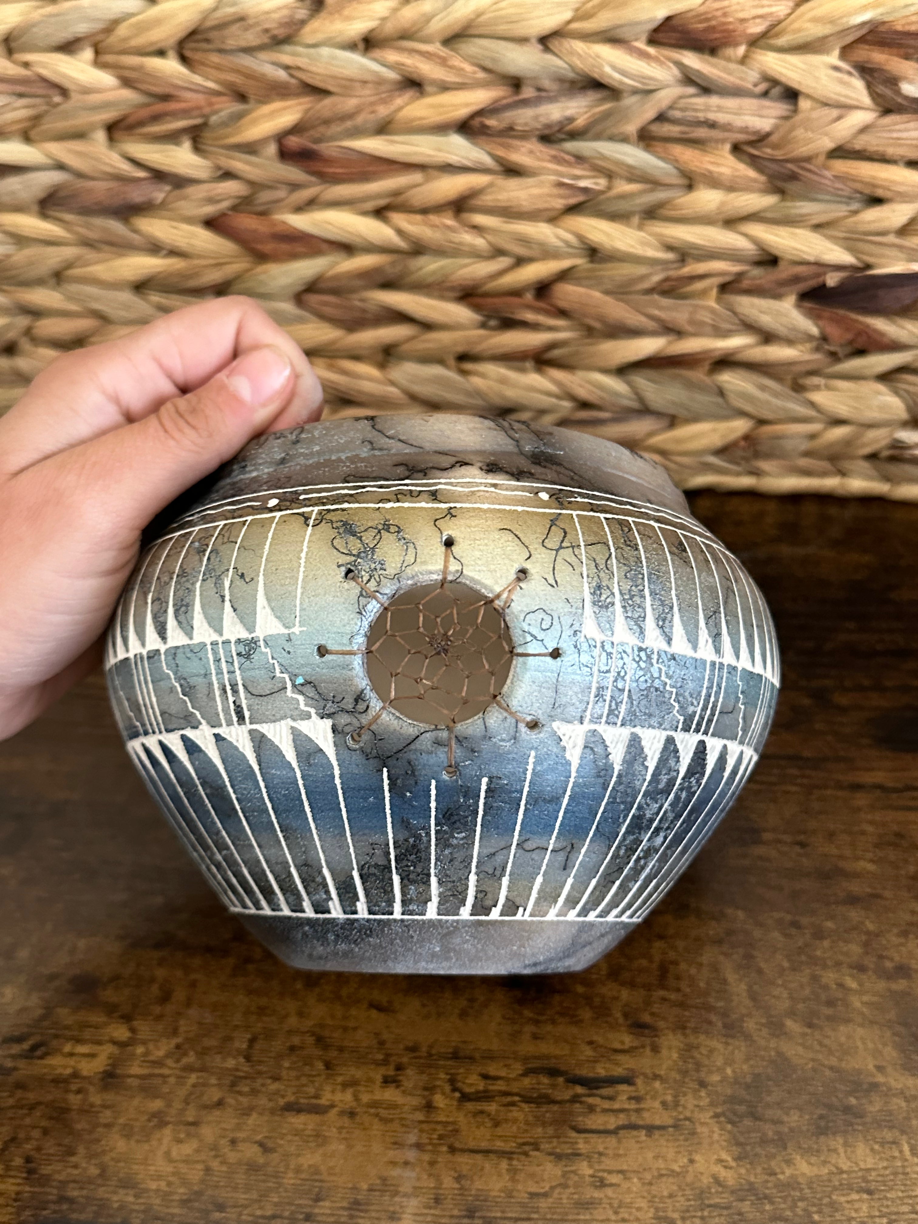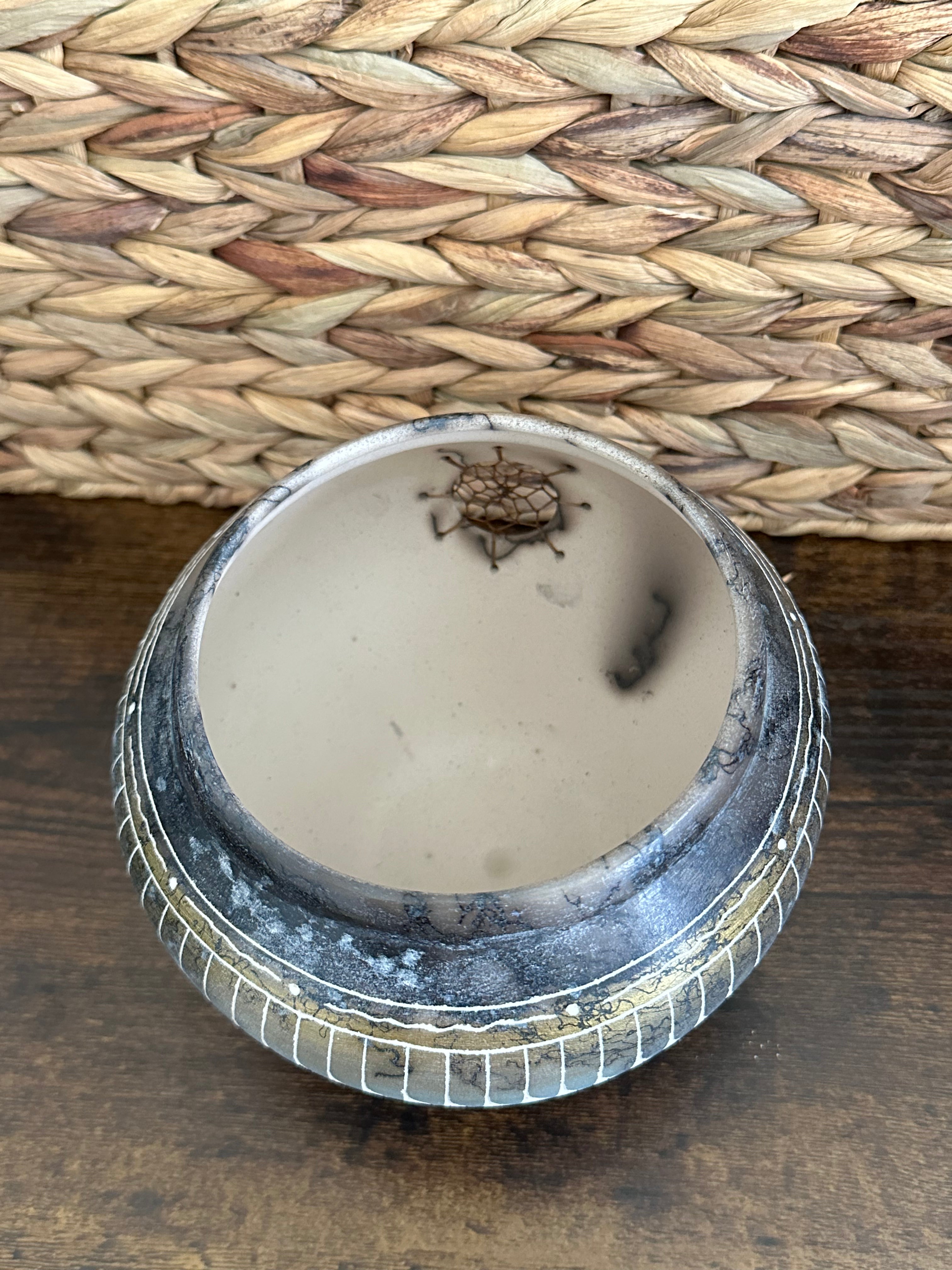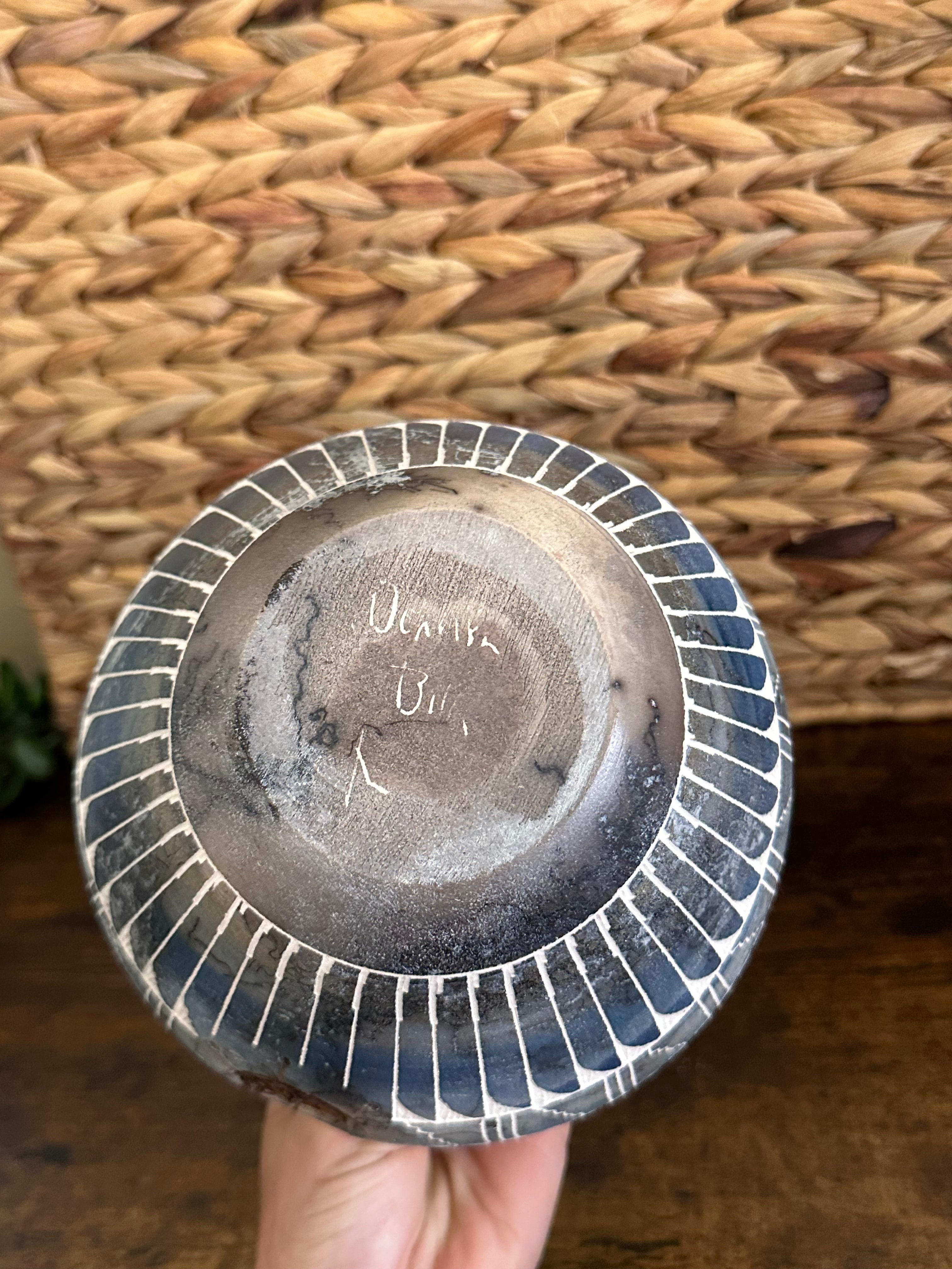 Dennison Billy Navajo Made Pottery. It measures 5 inches long and 19 inches round. Signed by the artist.