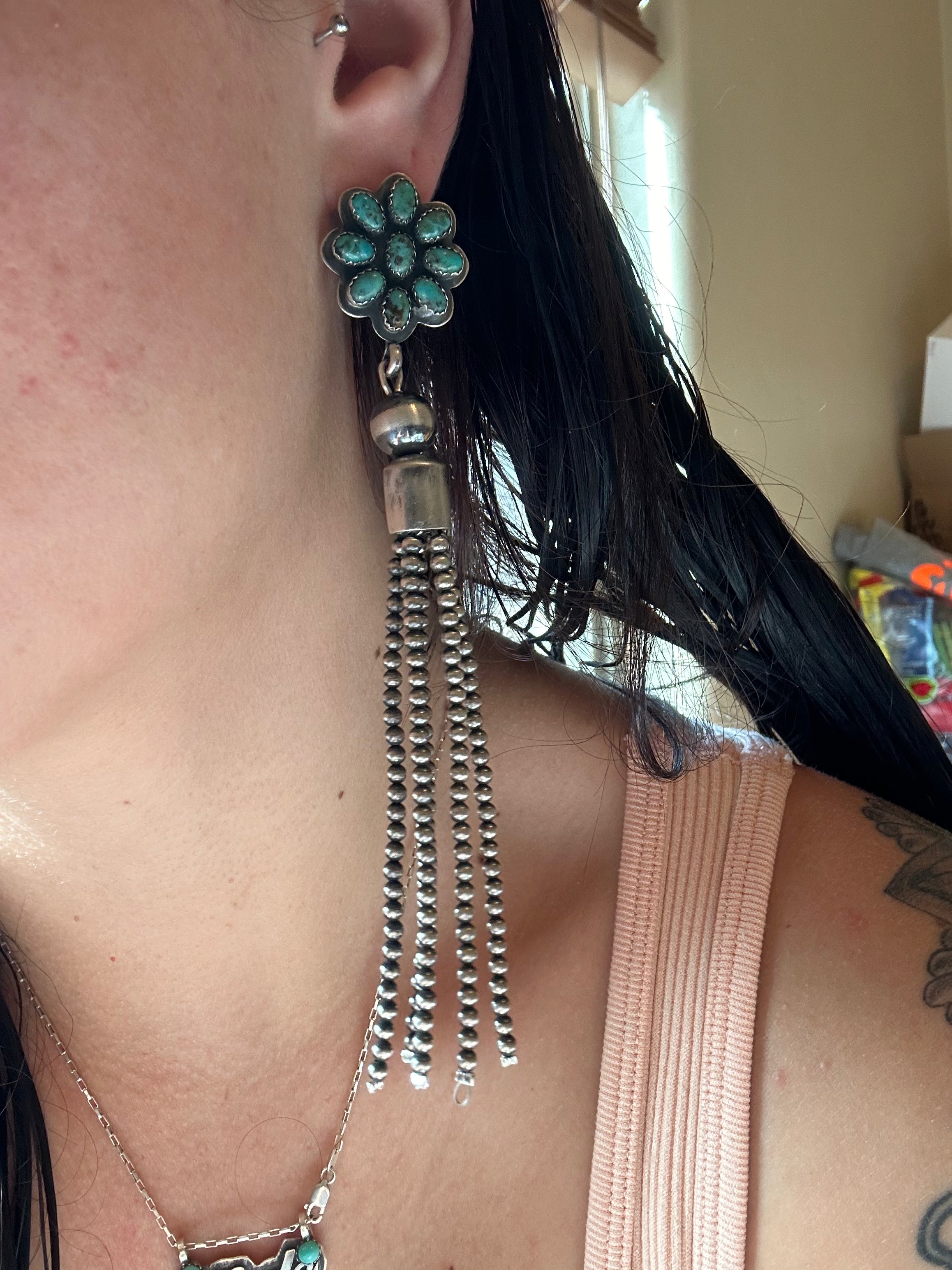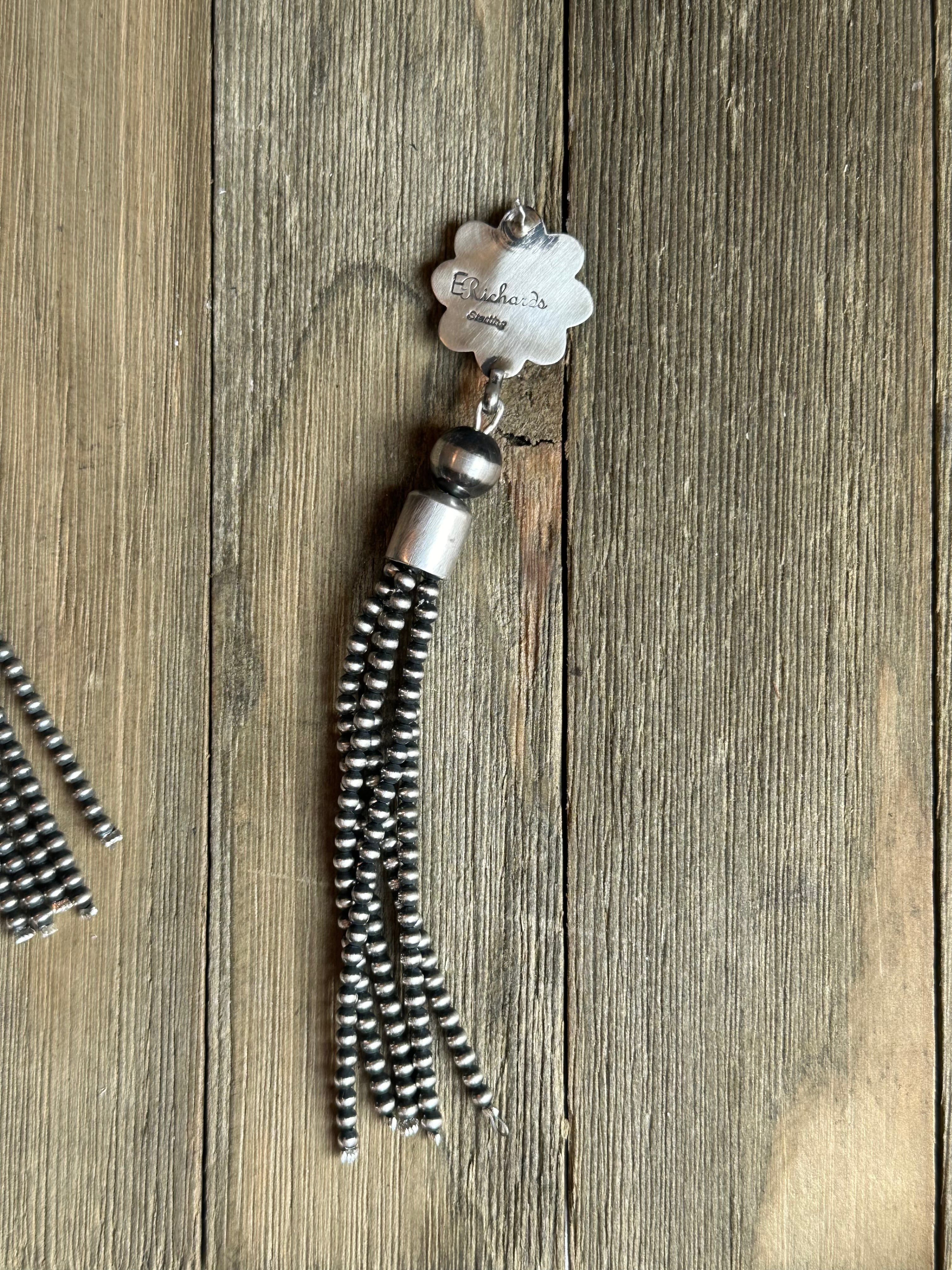 Have a spice of pink in your everyday. E. Richards Kingman Turquoise & Sterling Silver Post Cluster Dangle Earrings. It measures 5 inches long and 7/8 of an inch wide.