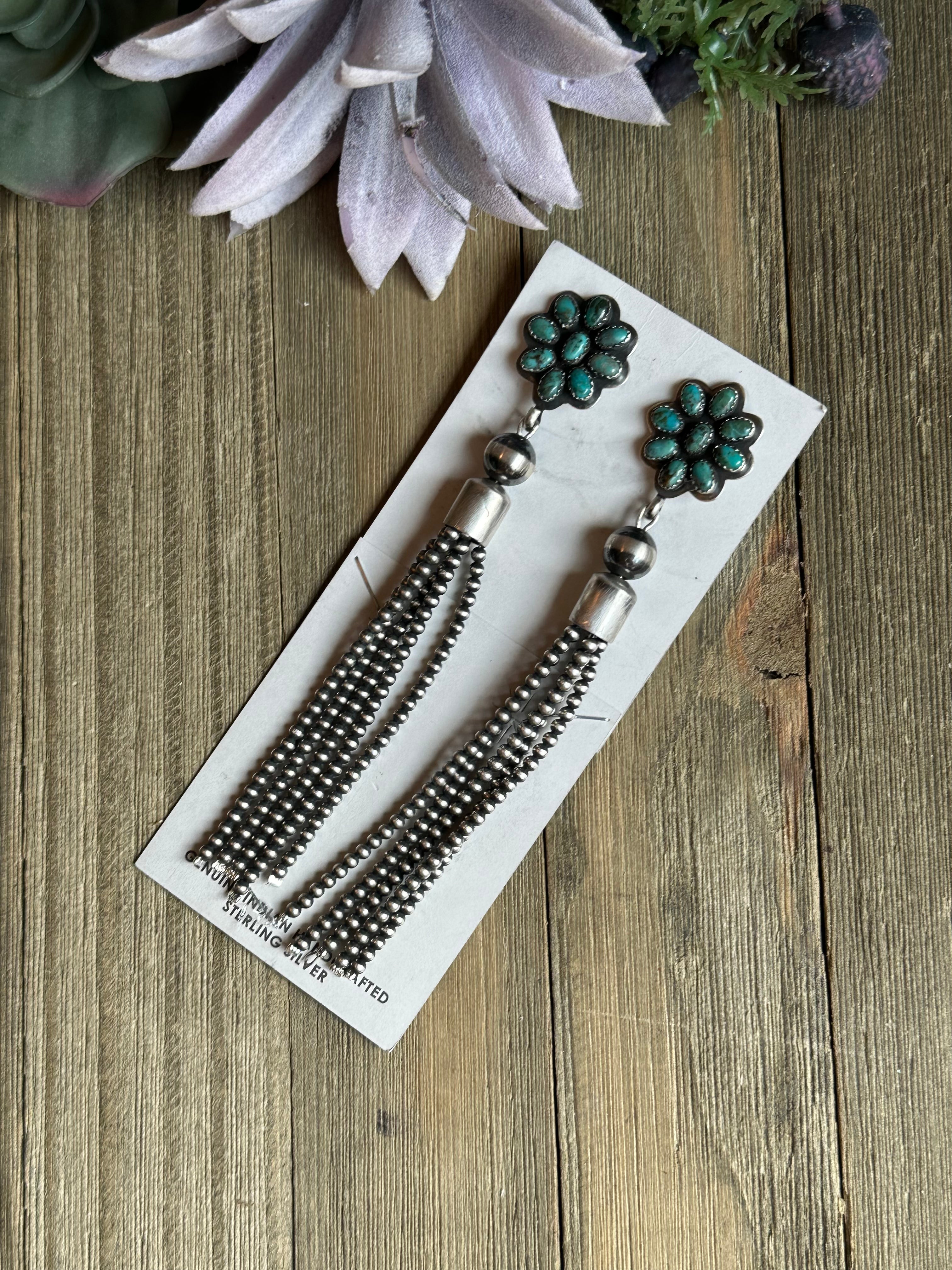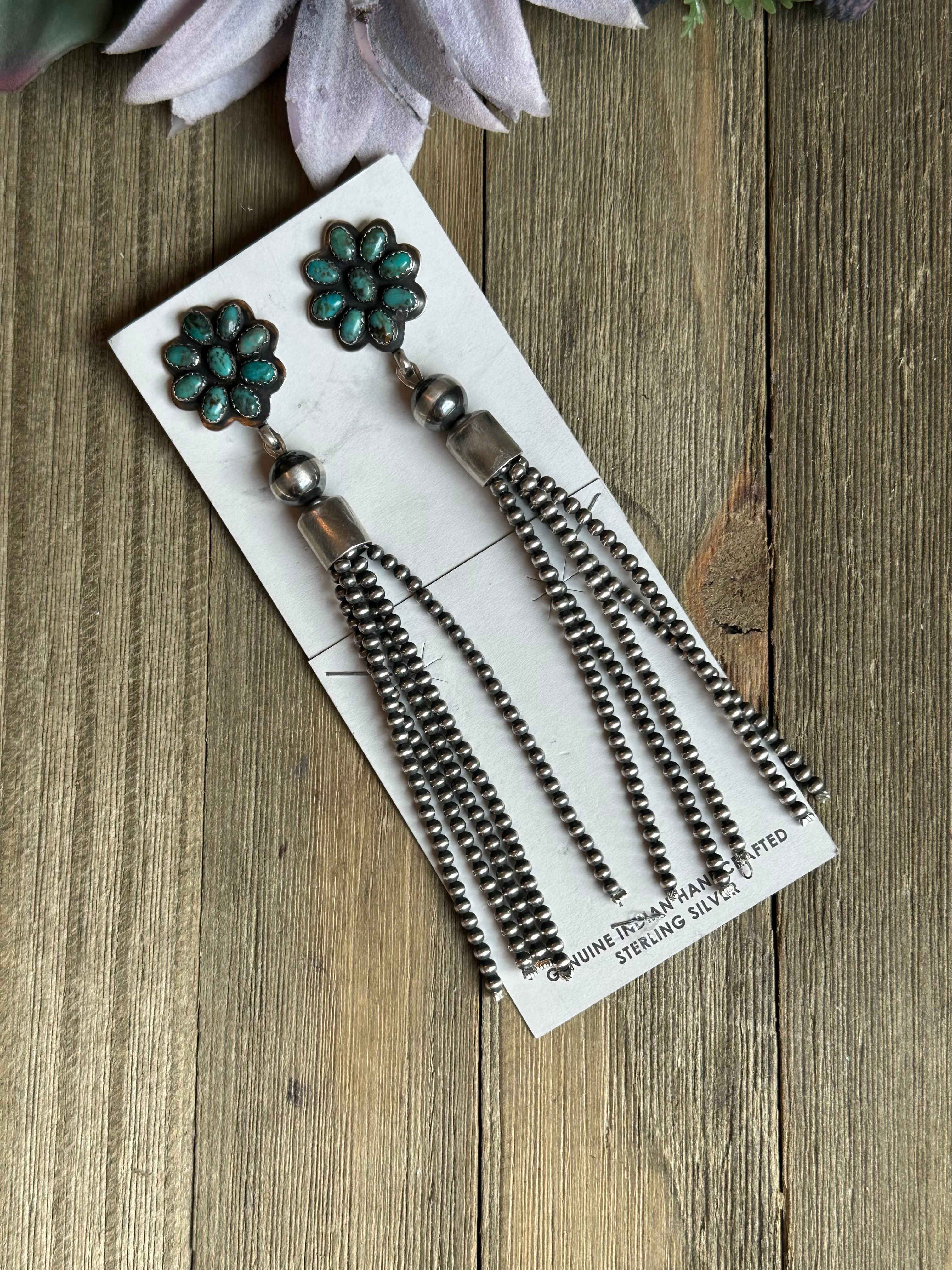 E. Richards Kingman Turquoise & Sterling Silver Post Cluster Dangle Earrings