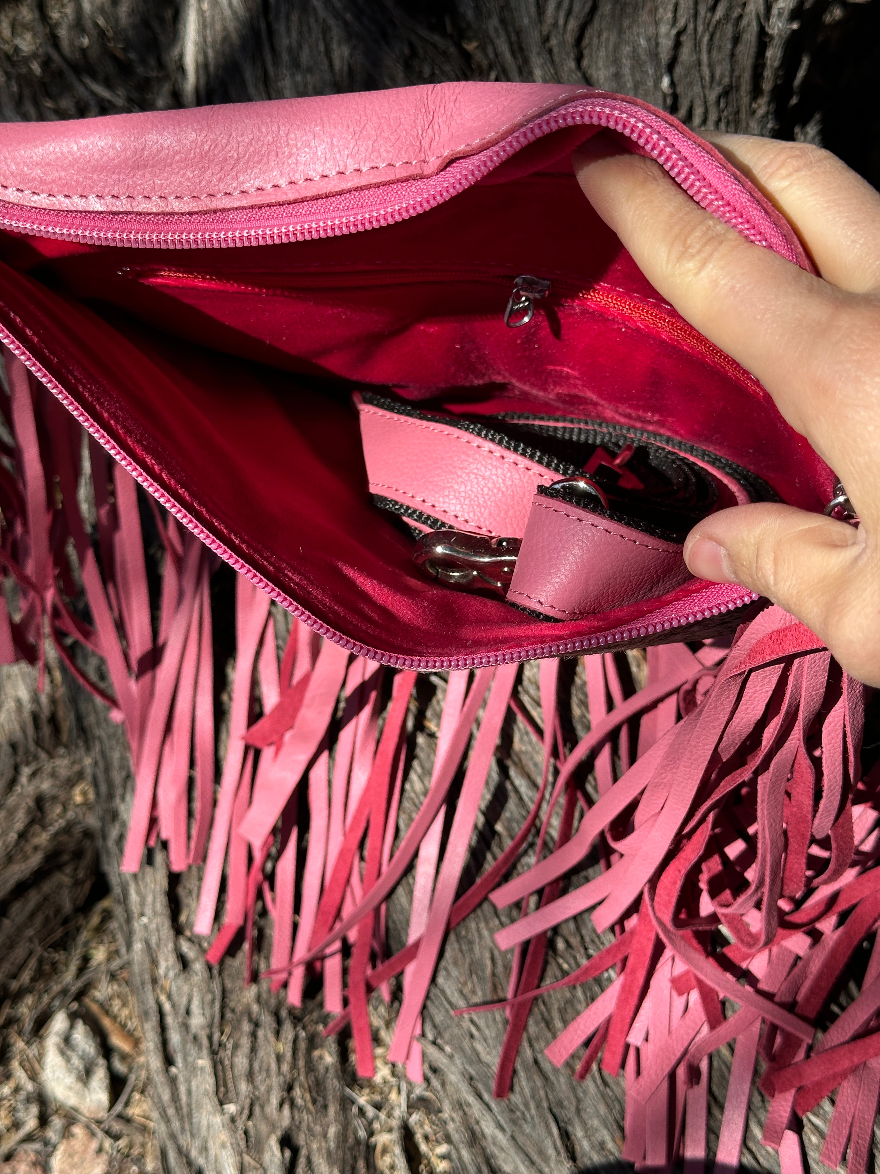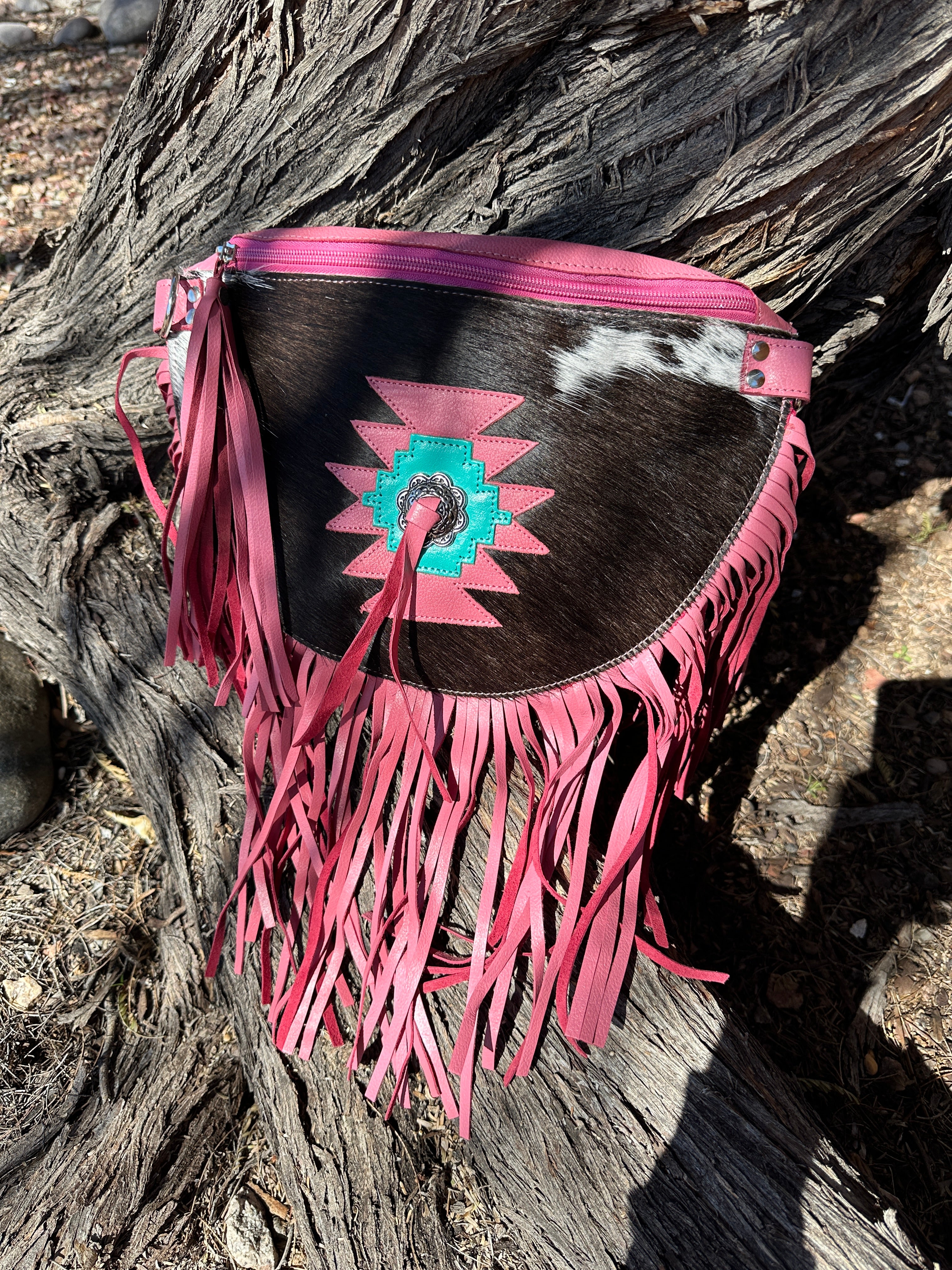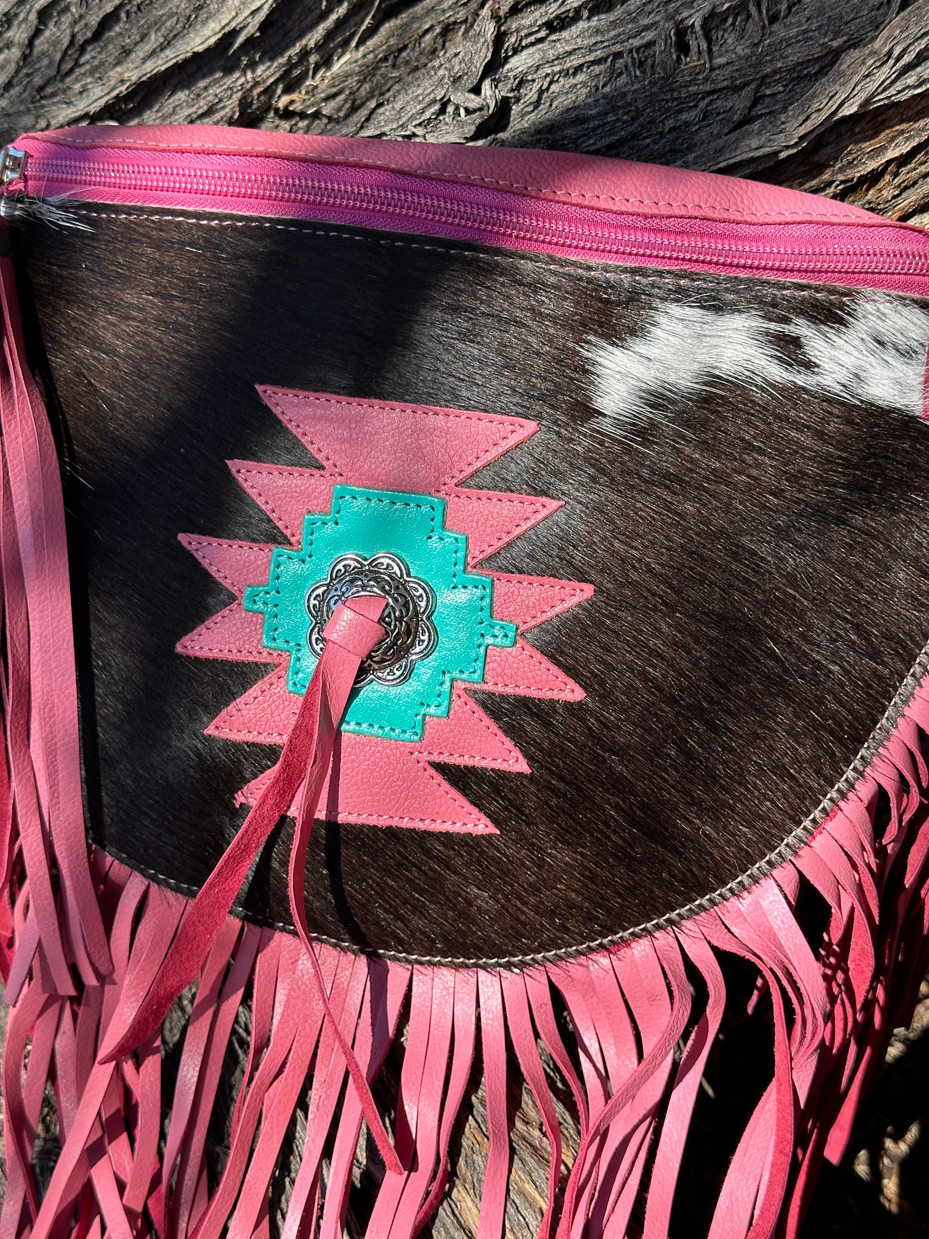 Genuine Tooled Leather & Cowhide Fringe Purse