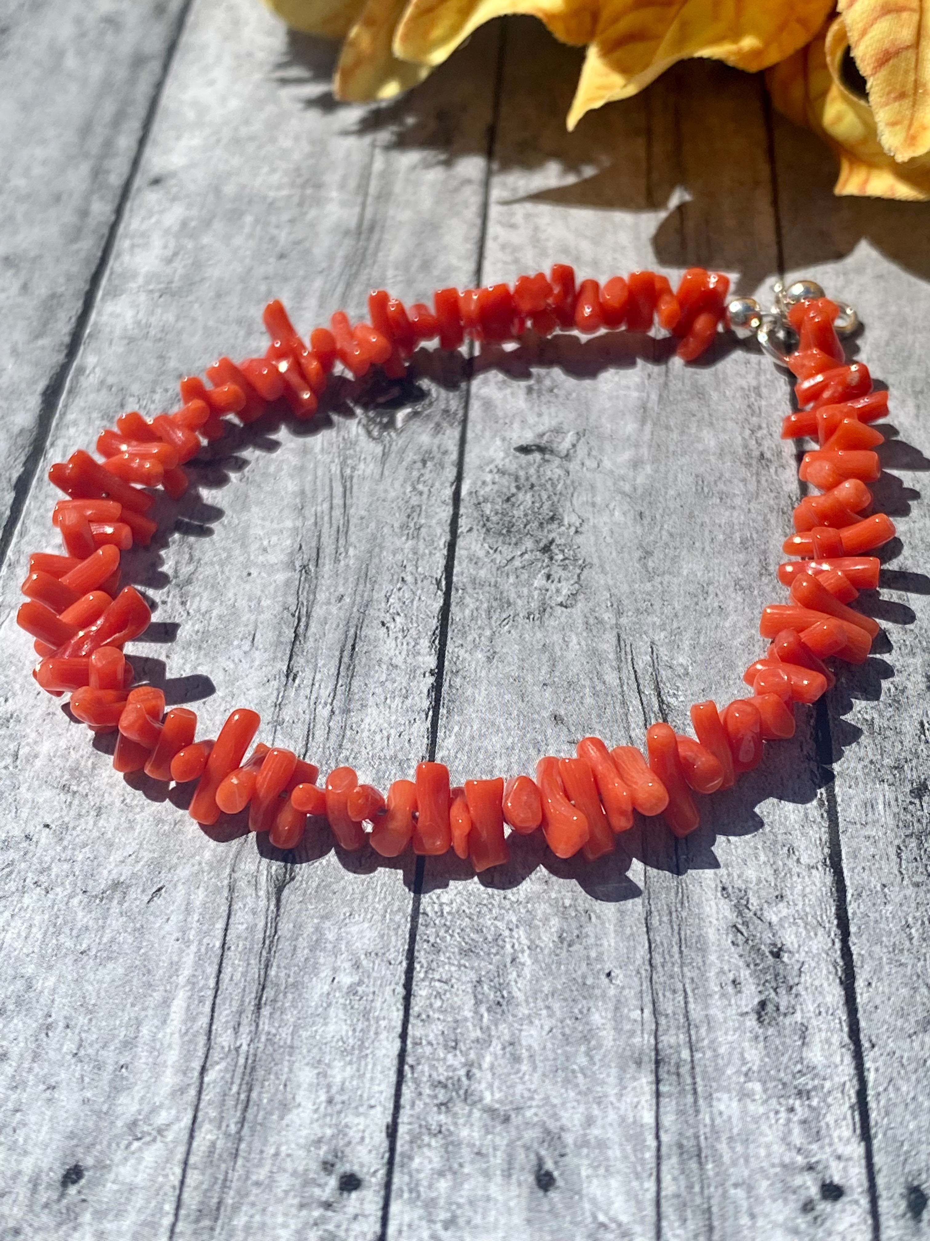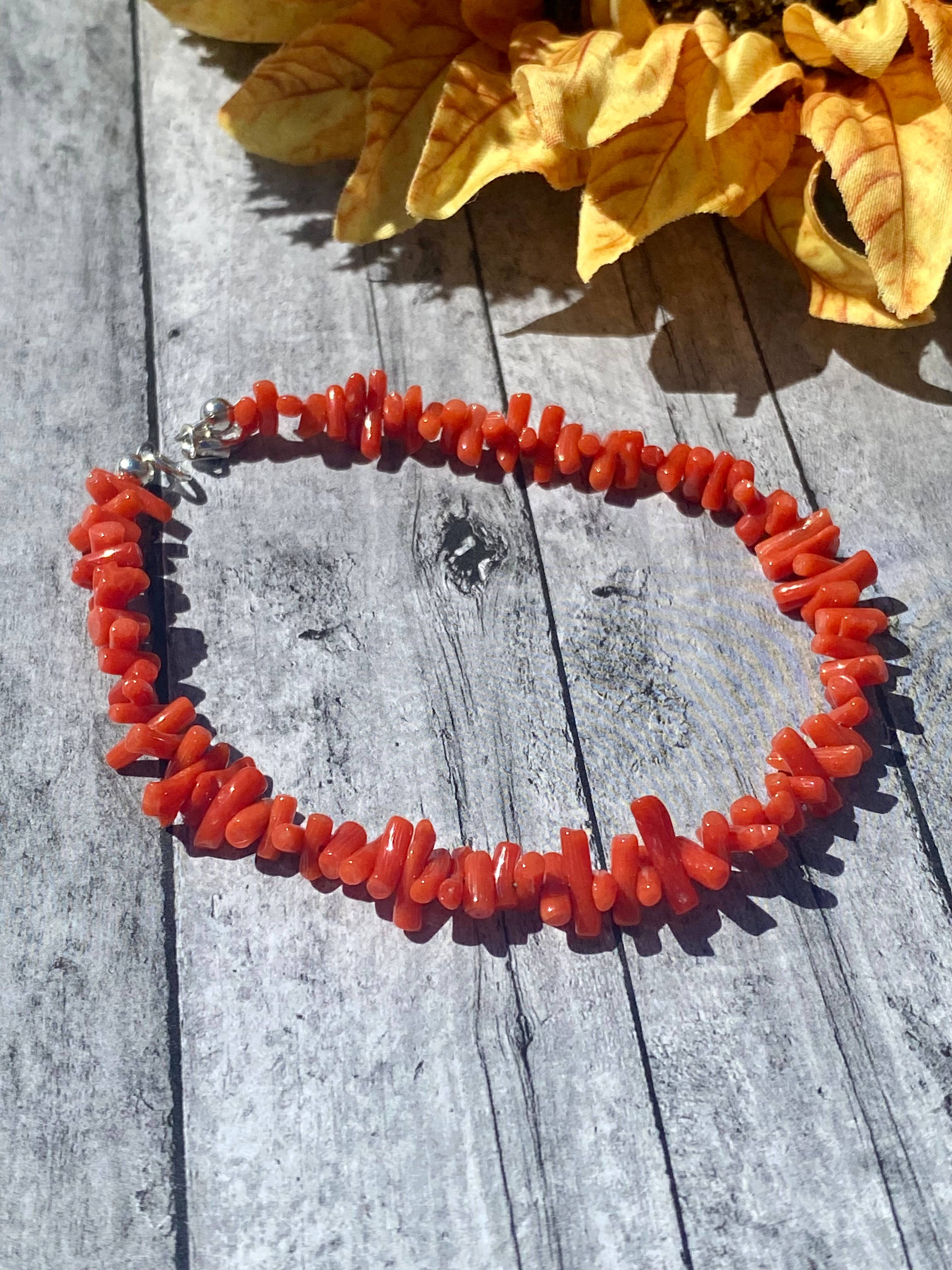 Handmade Southwest Red Coral & Sterling Silver Bracelet