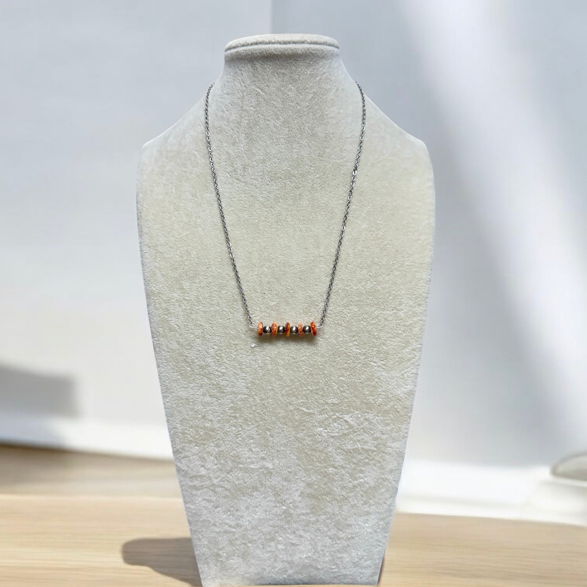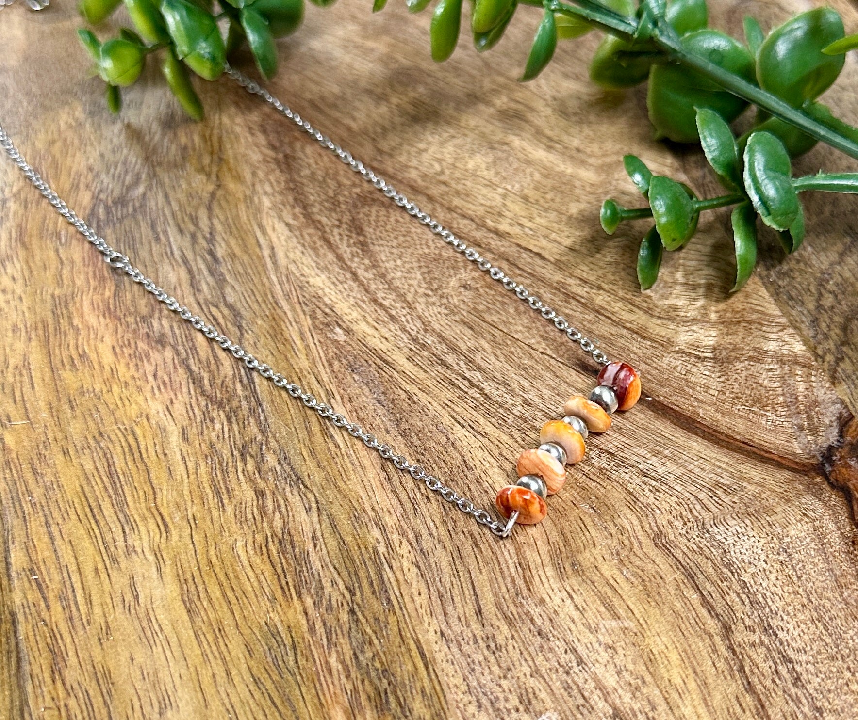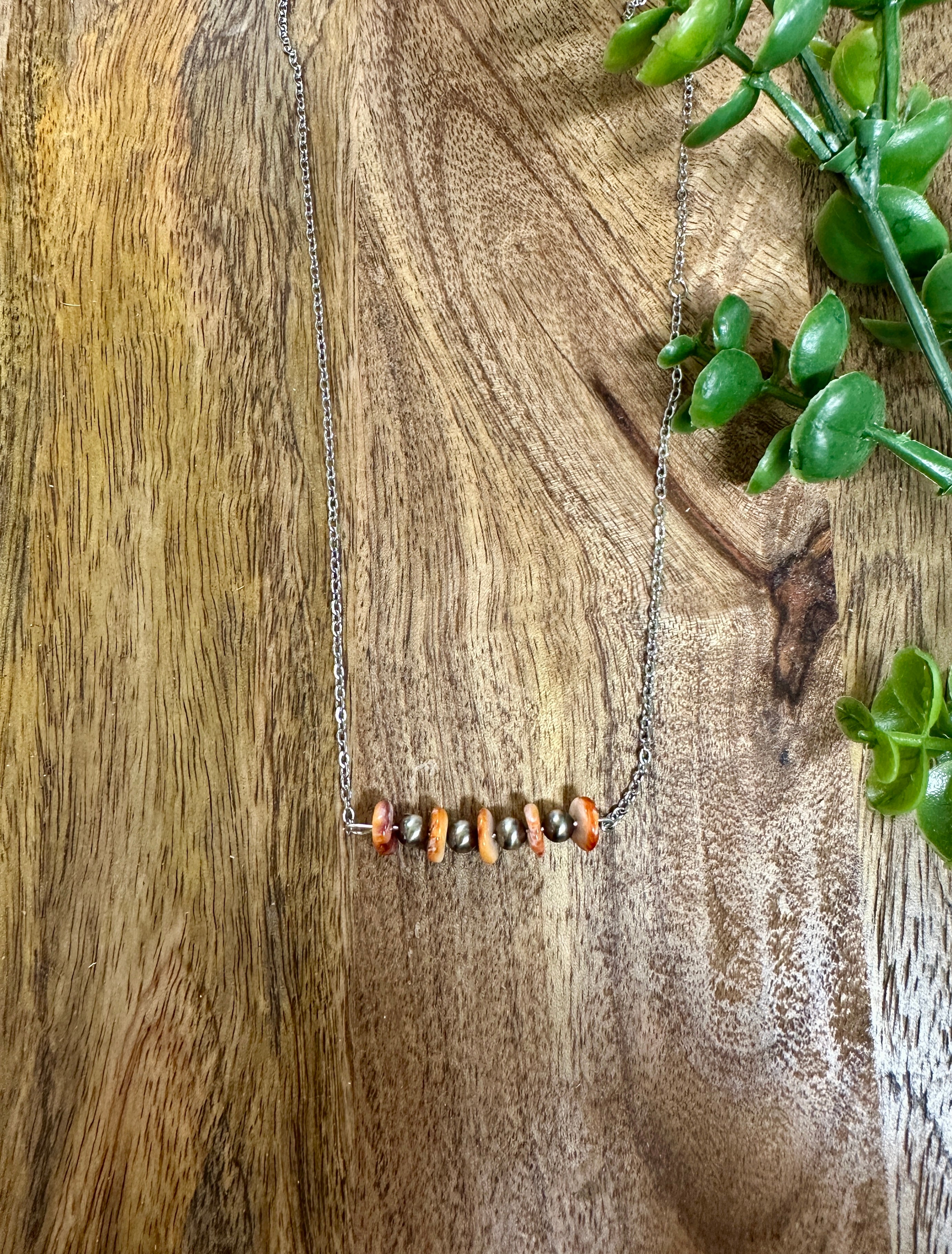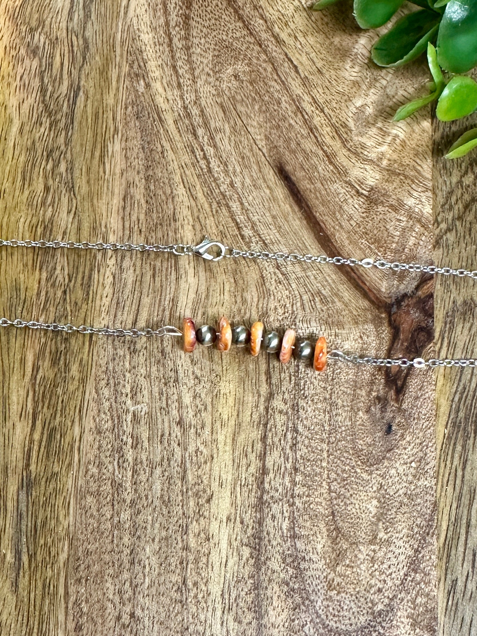 Handmade Spiny Oyster & Sterling Silver Pearl Necklace. Measures 18 inches long.