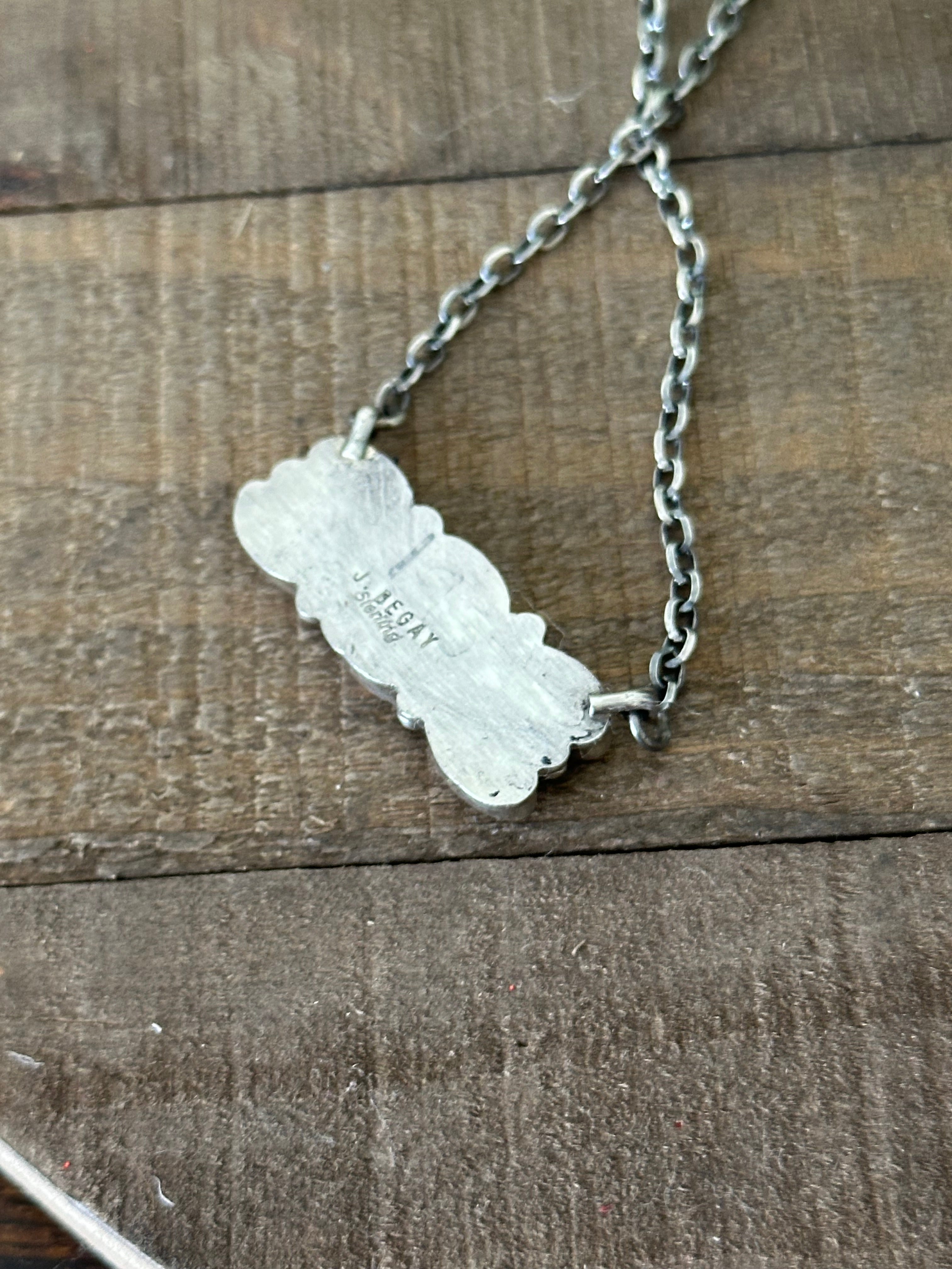 Beautiful Necklace. Jon Begay Pink Conch & Sterling Silver Bar Cluster Necklace. It measures 19 inches long with hang while the chain measures 18 inches long. Signed by the artist and stamped sterling silver. Stones will differ due to natural stones.