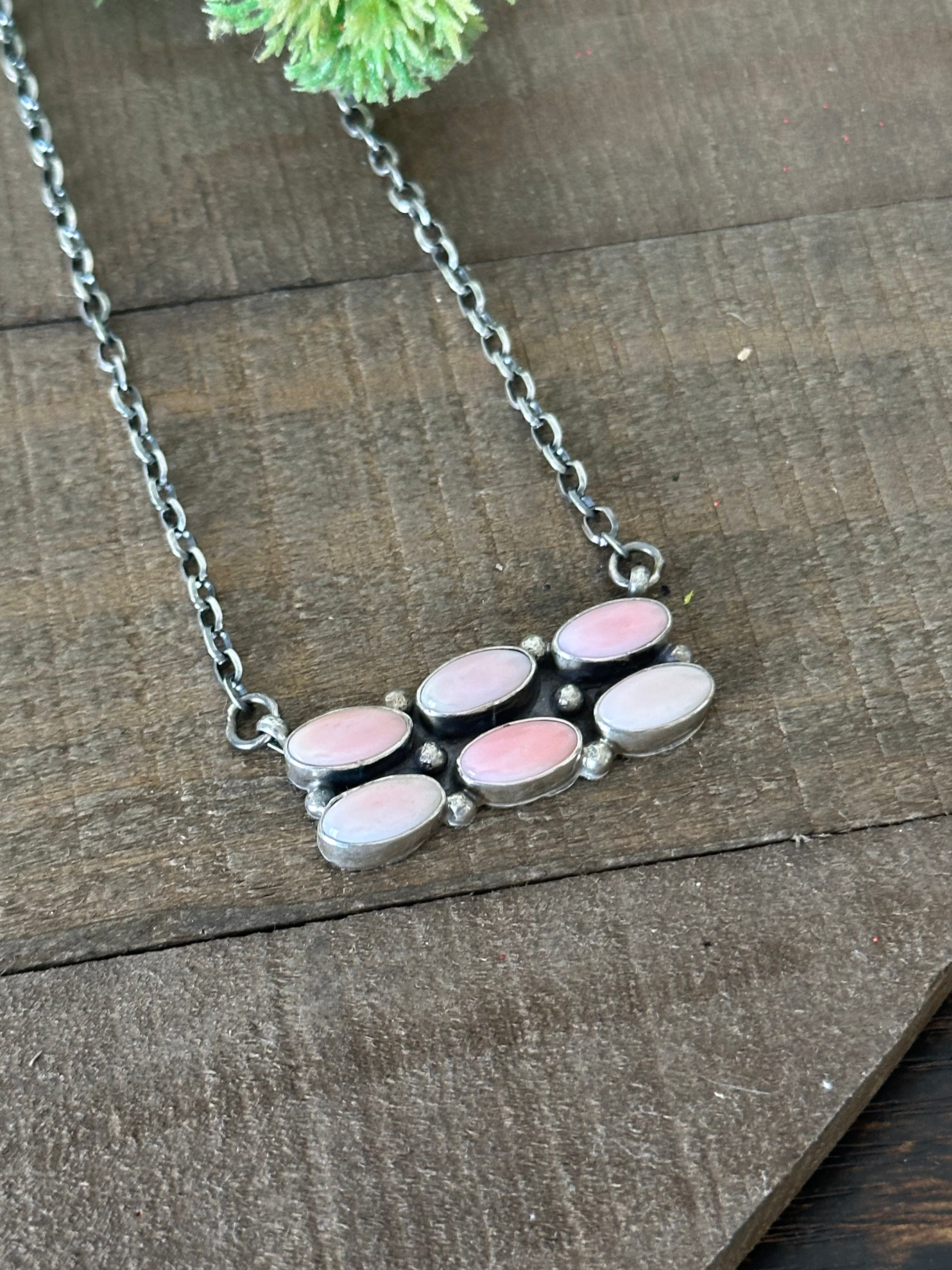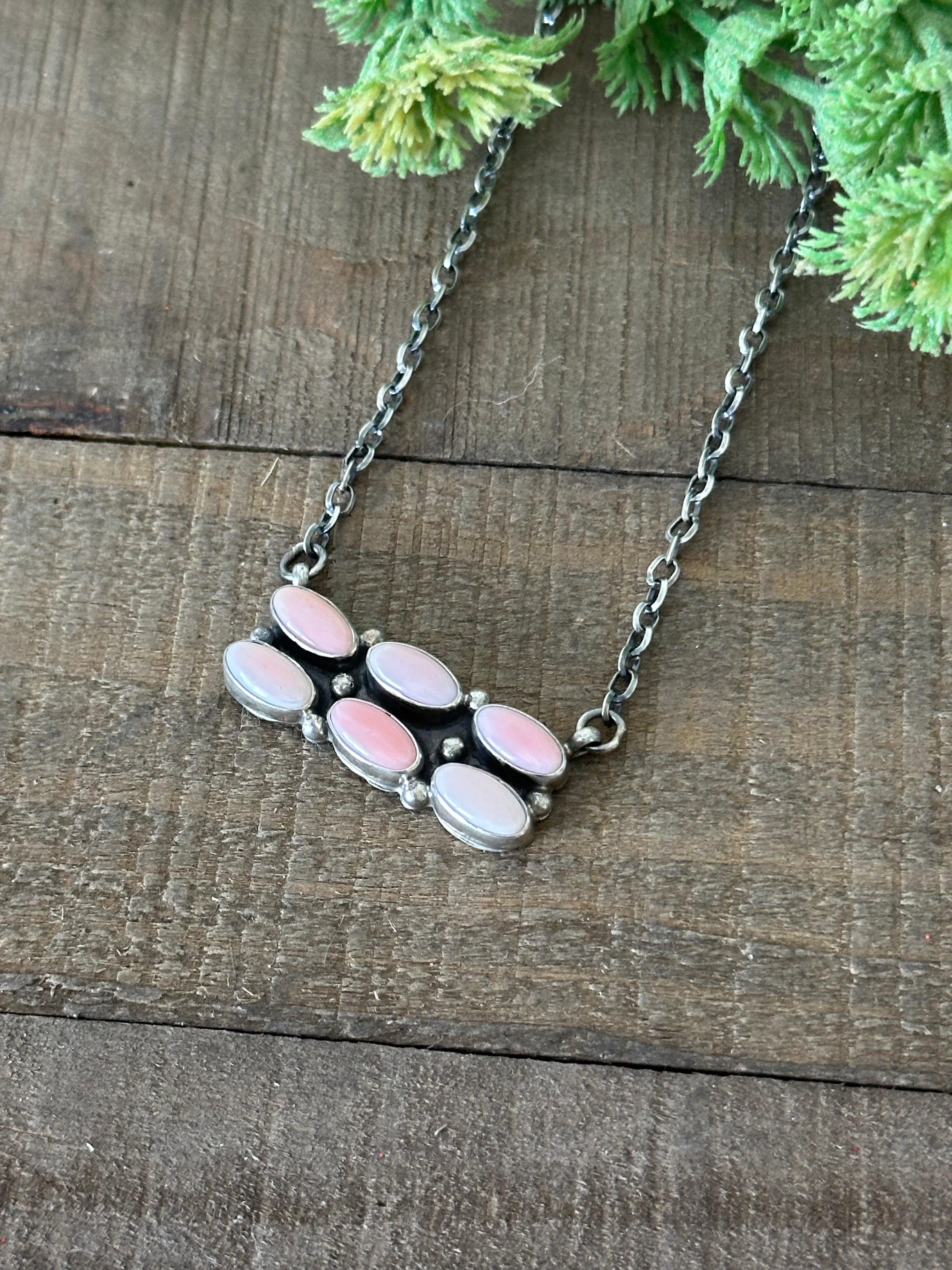Jon Begay Pink Conch & Sterling Silver Bar Cluster Necklace