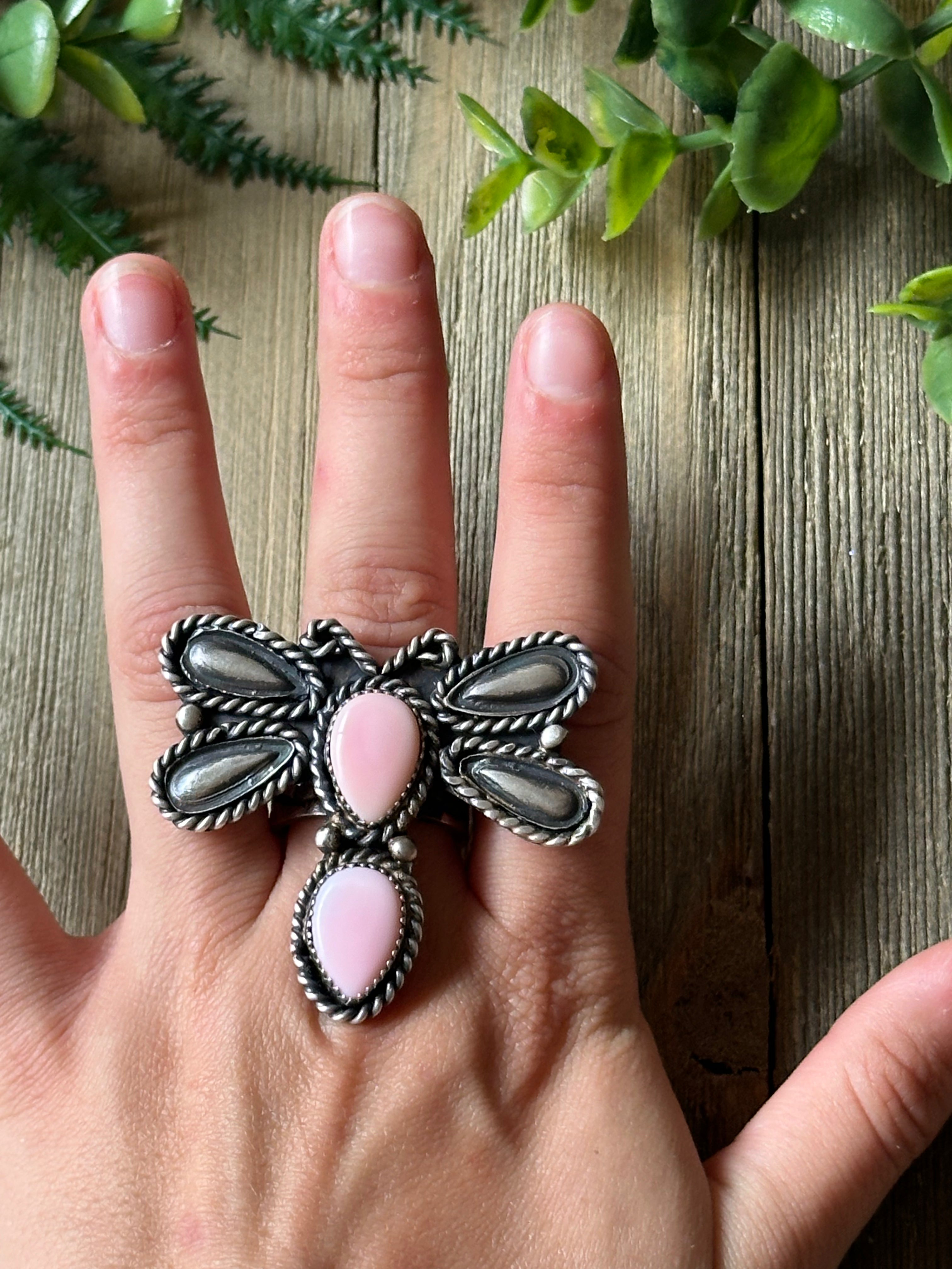 Kindale Billah Pink Conch & Sterling Silver Dragonfly Adjustable Ring
