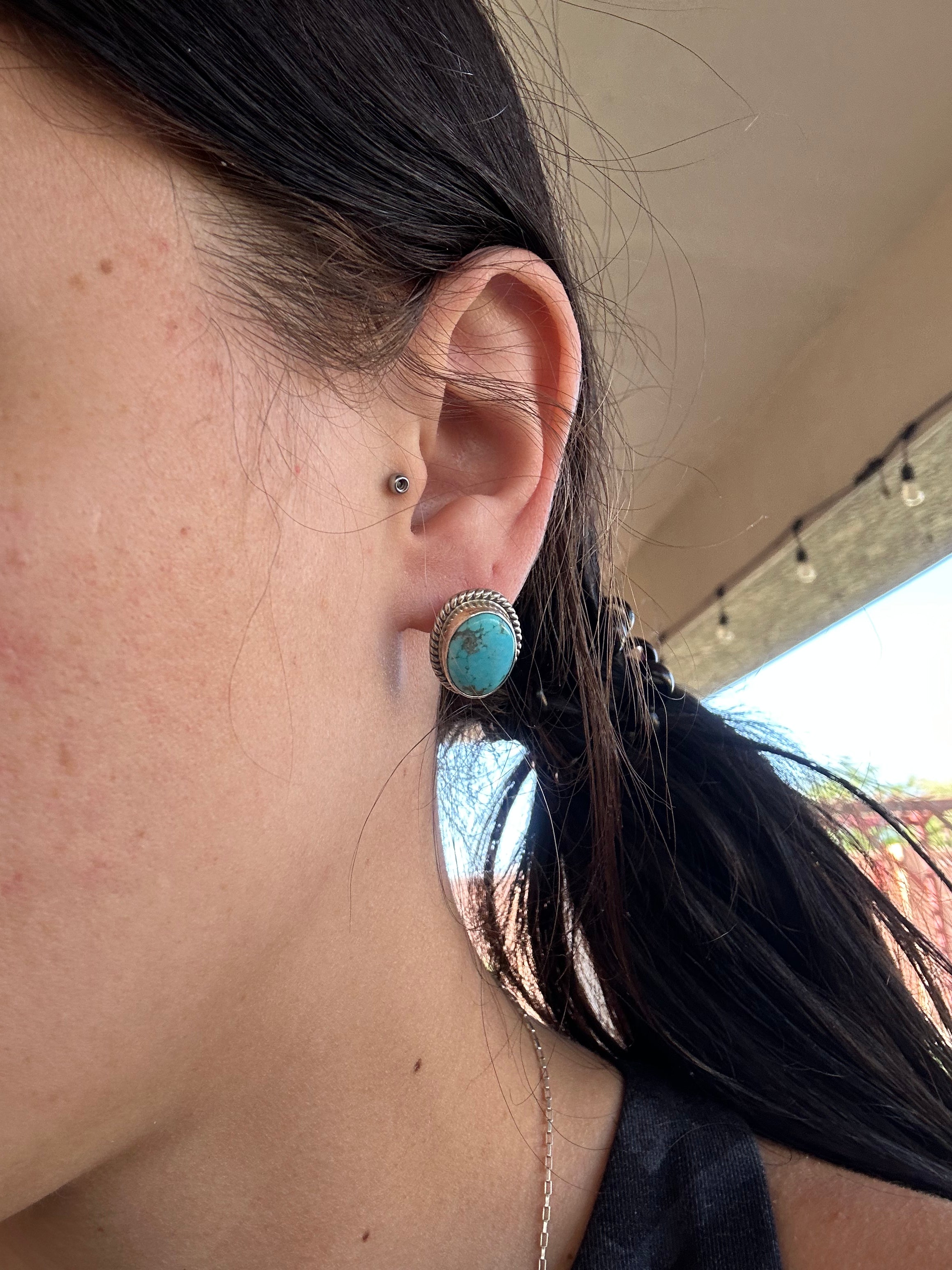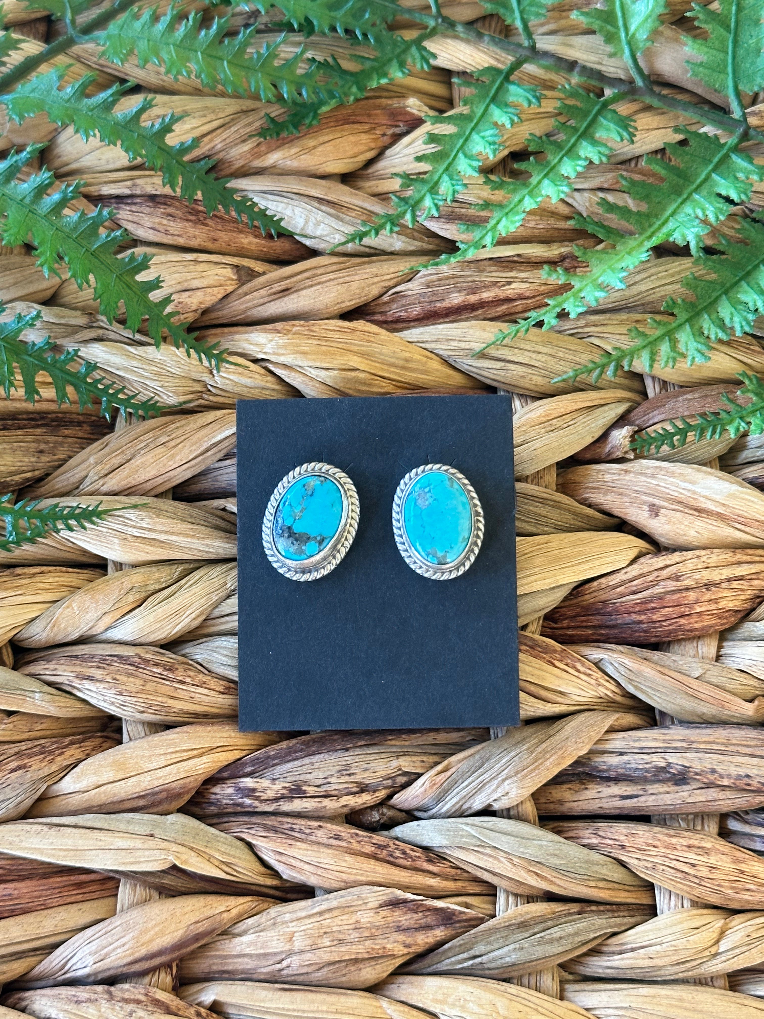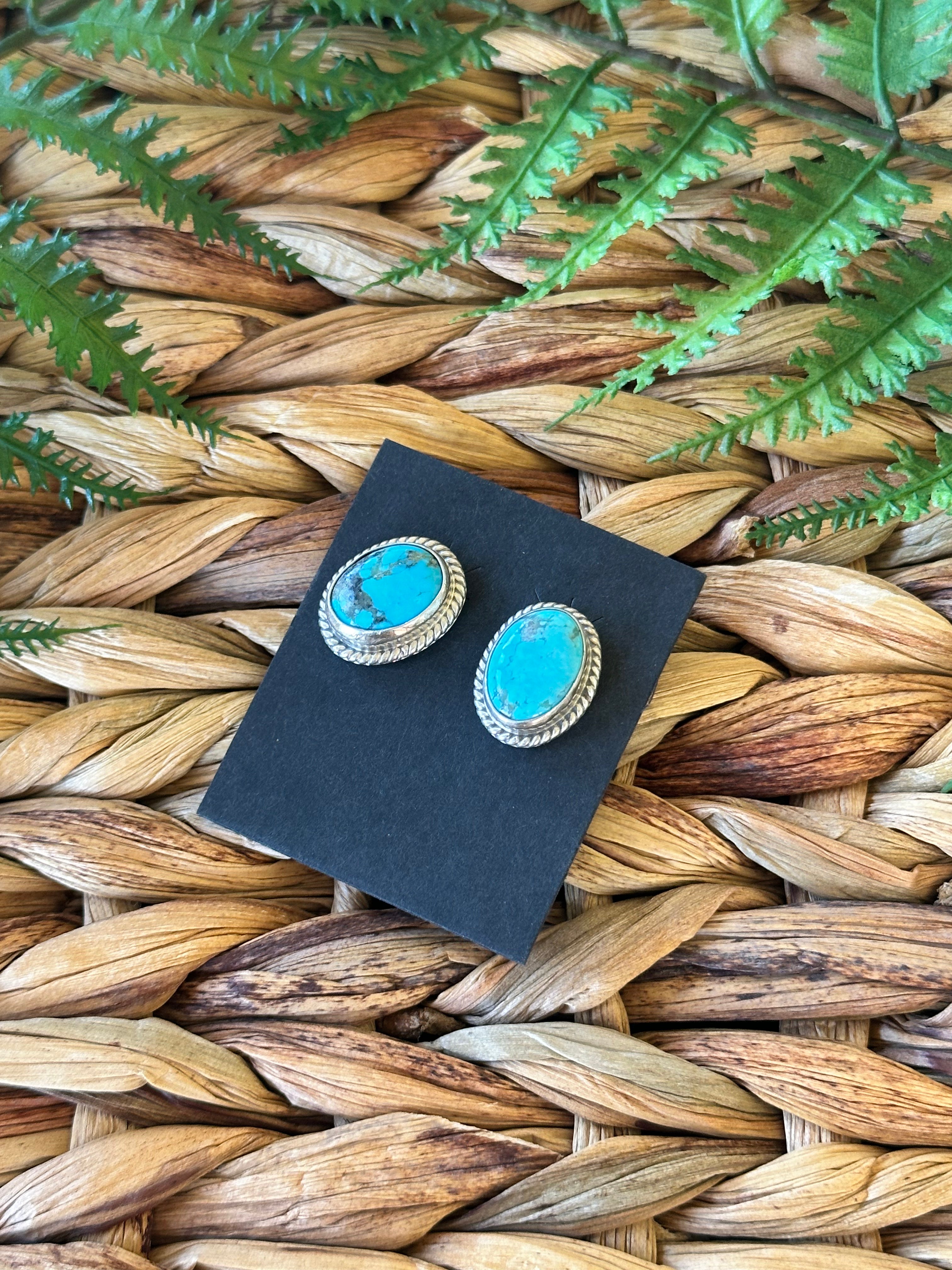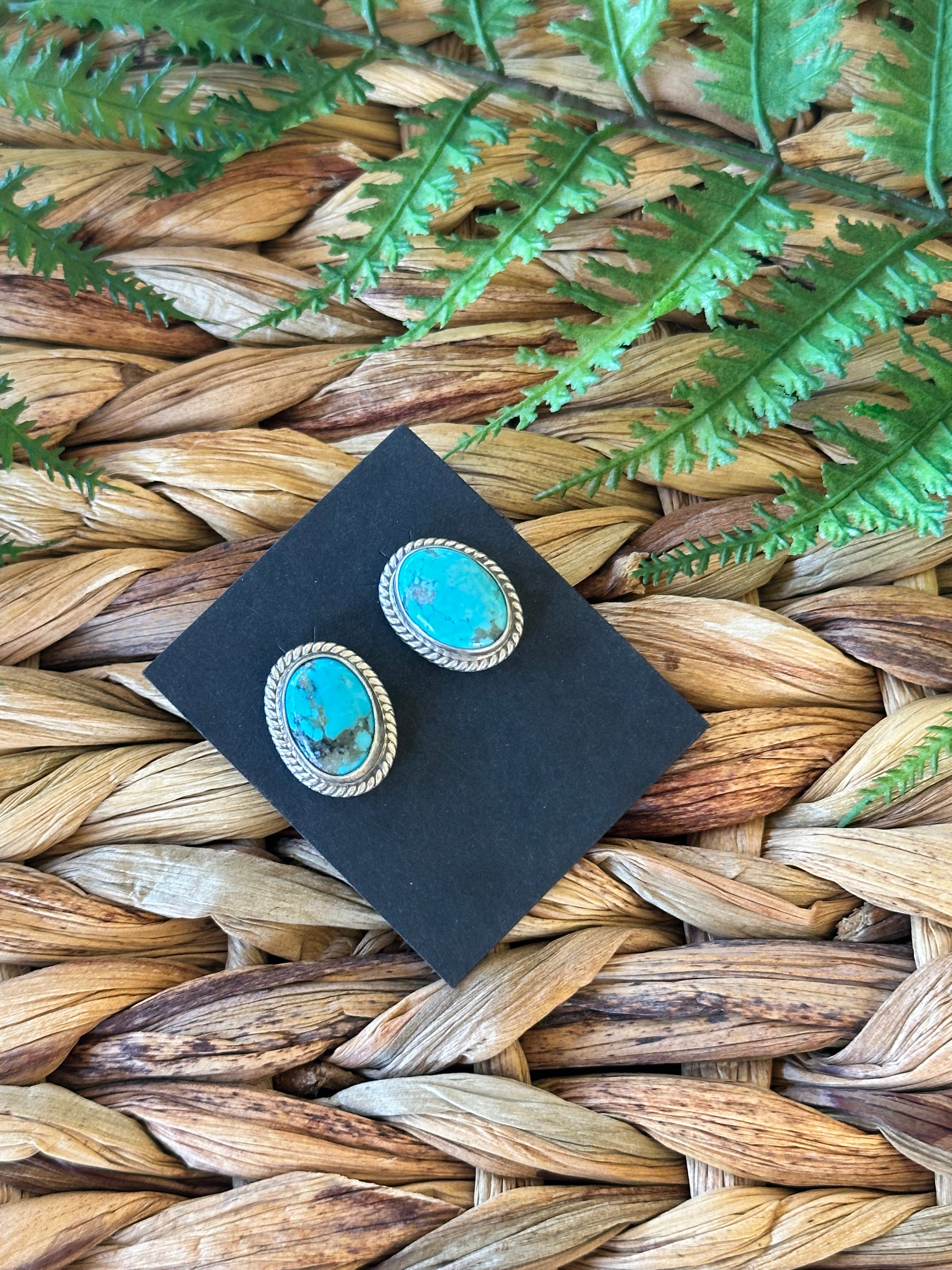 Navajo Handmade Royston Turquoise & Sterling Silver Post Earrings