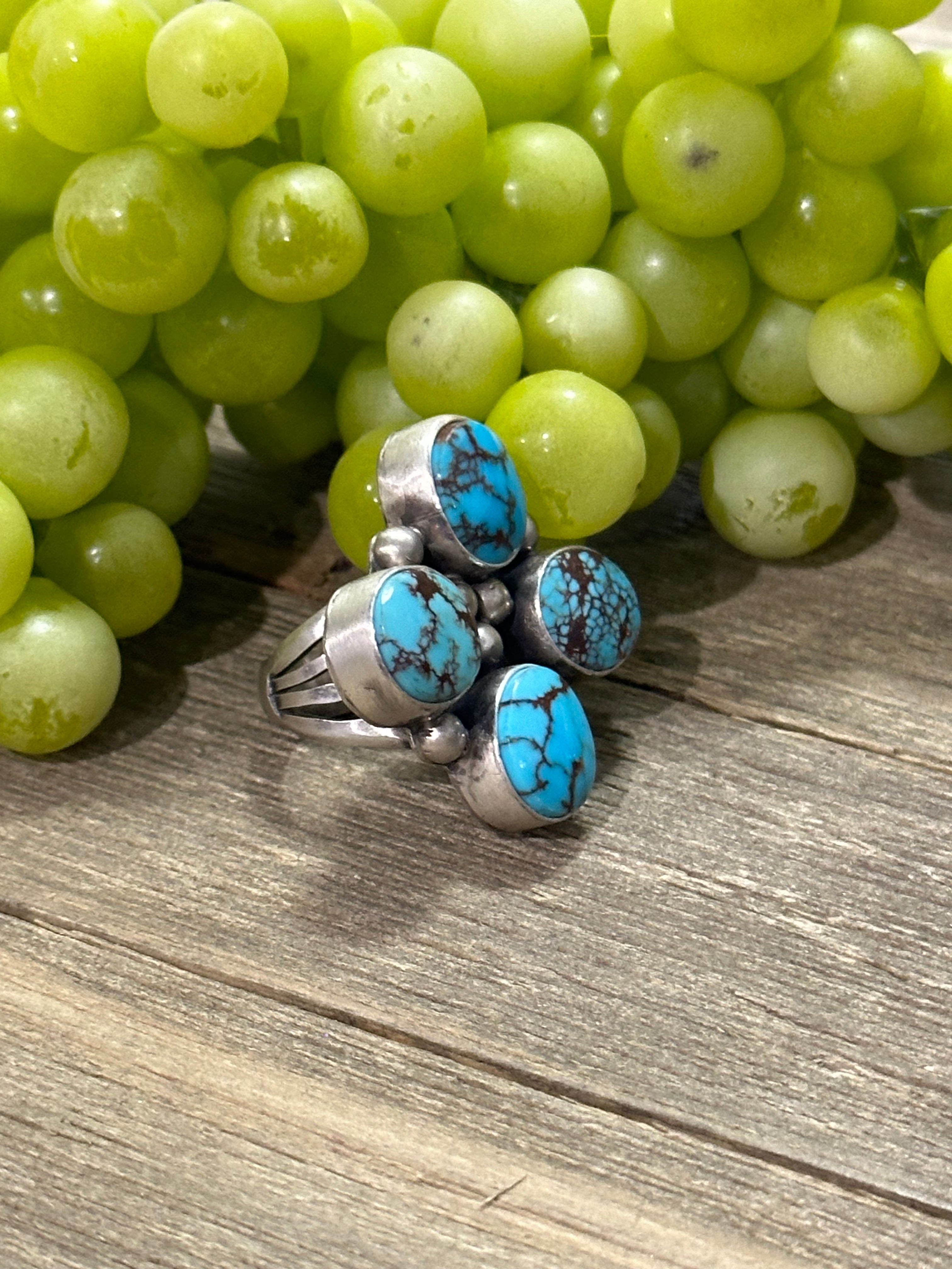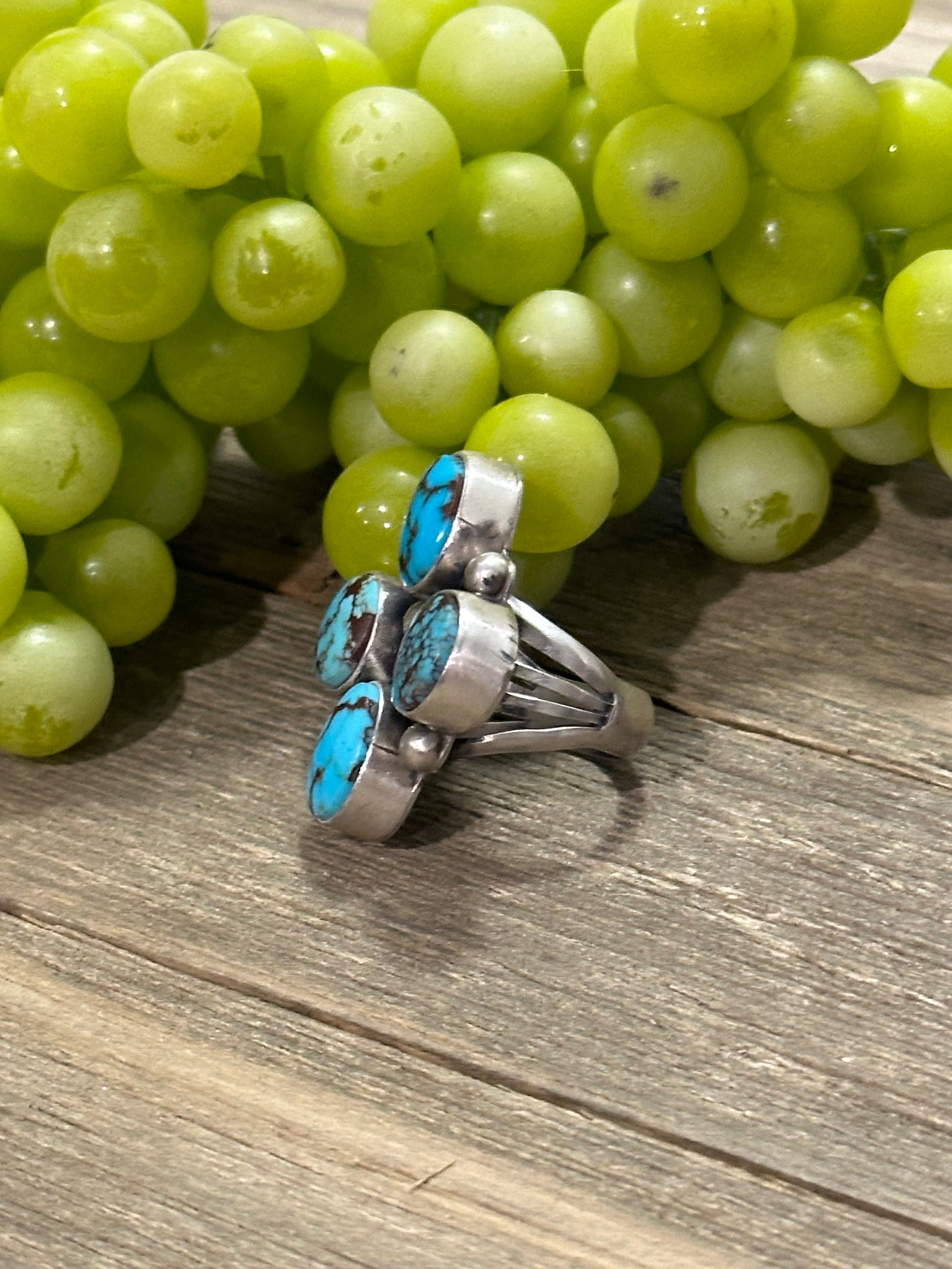 Navajo Made Eygtian Turquoise& Sterling Silver Ring Size 6.25