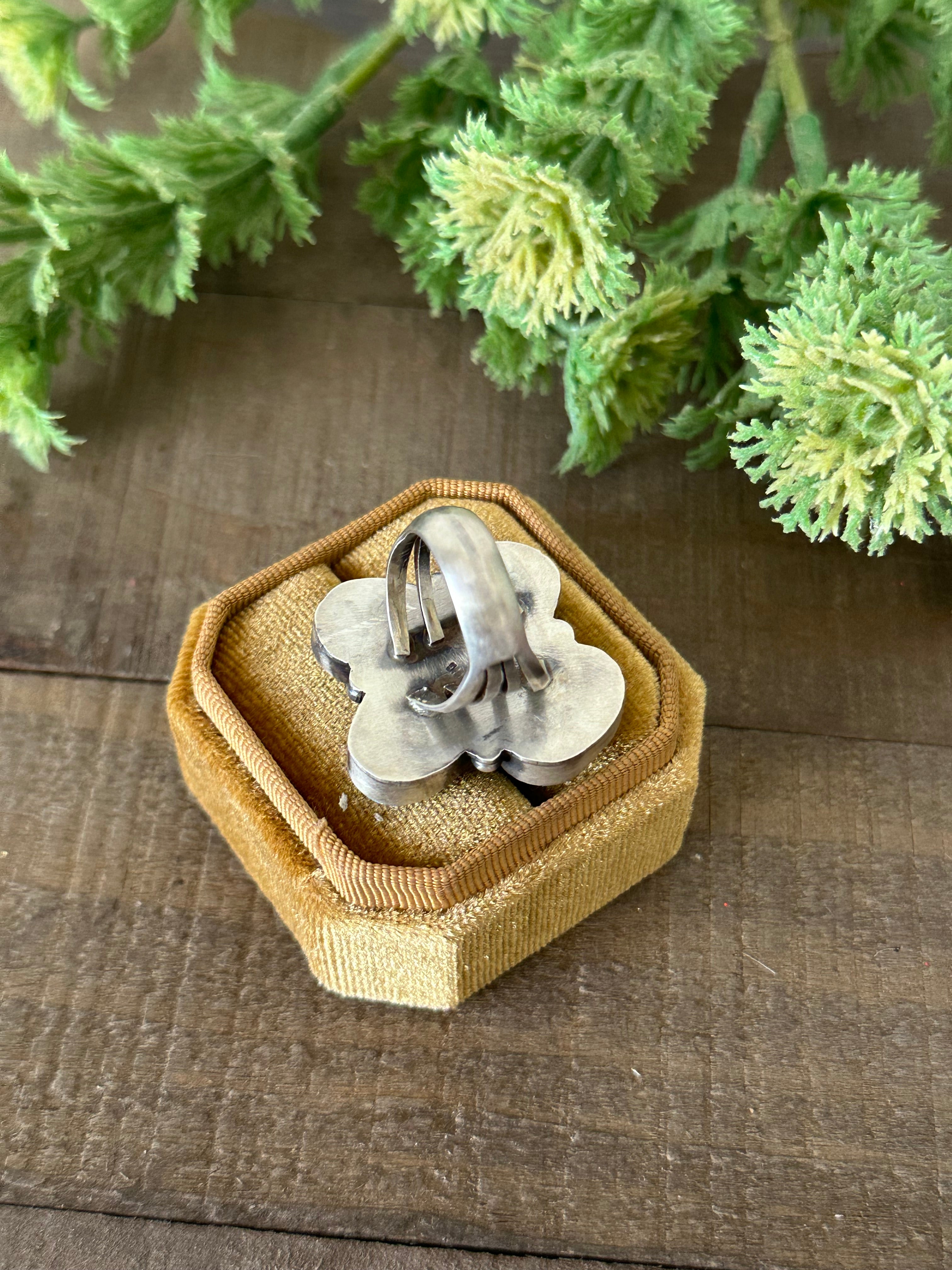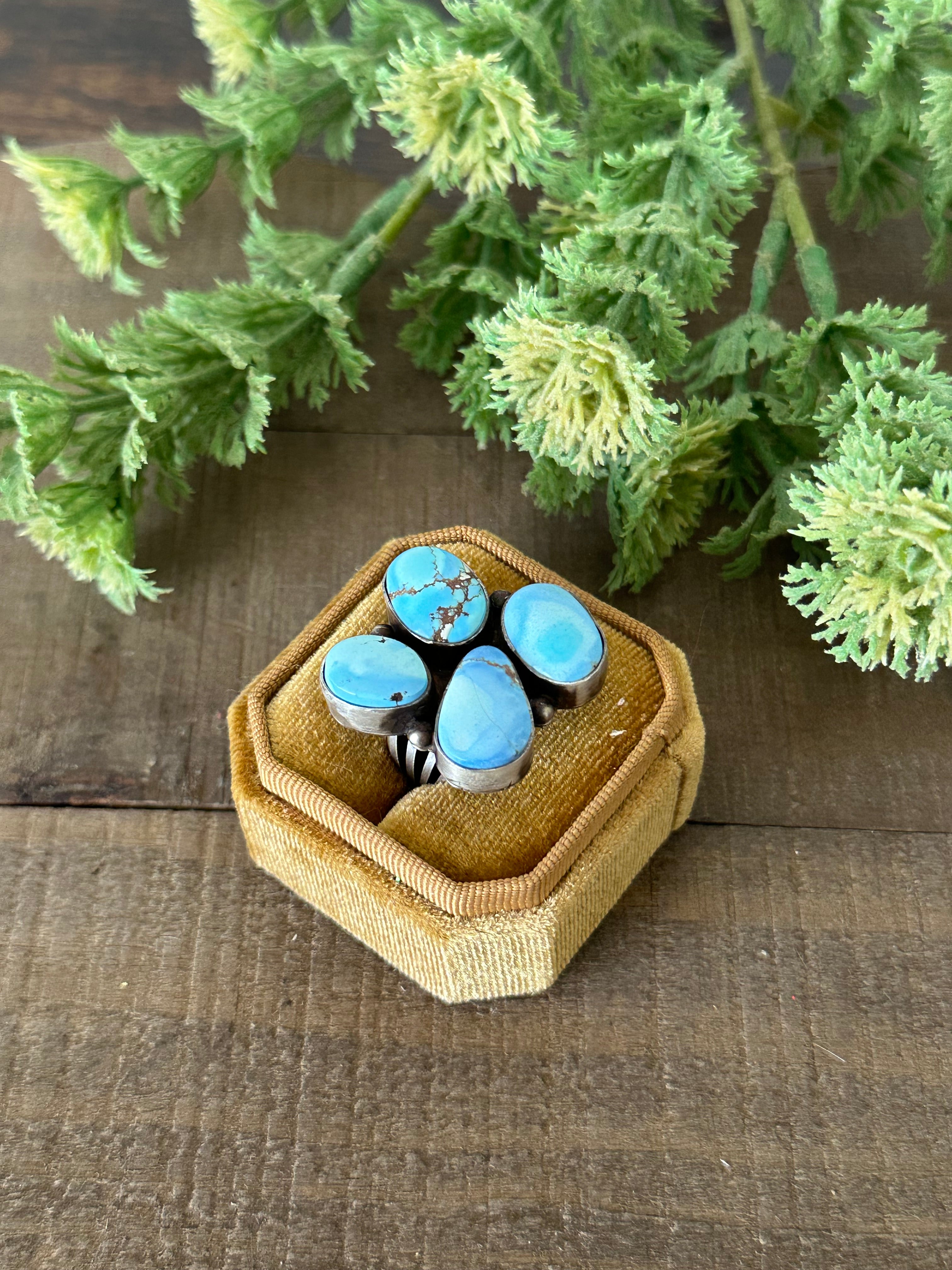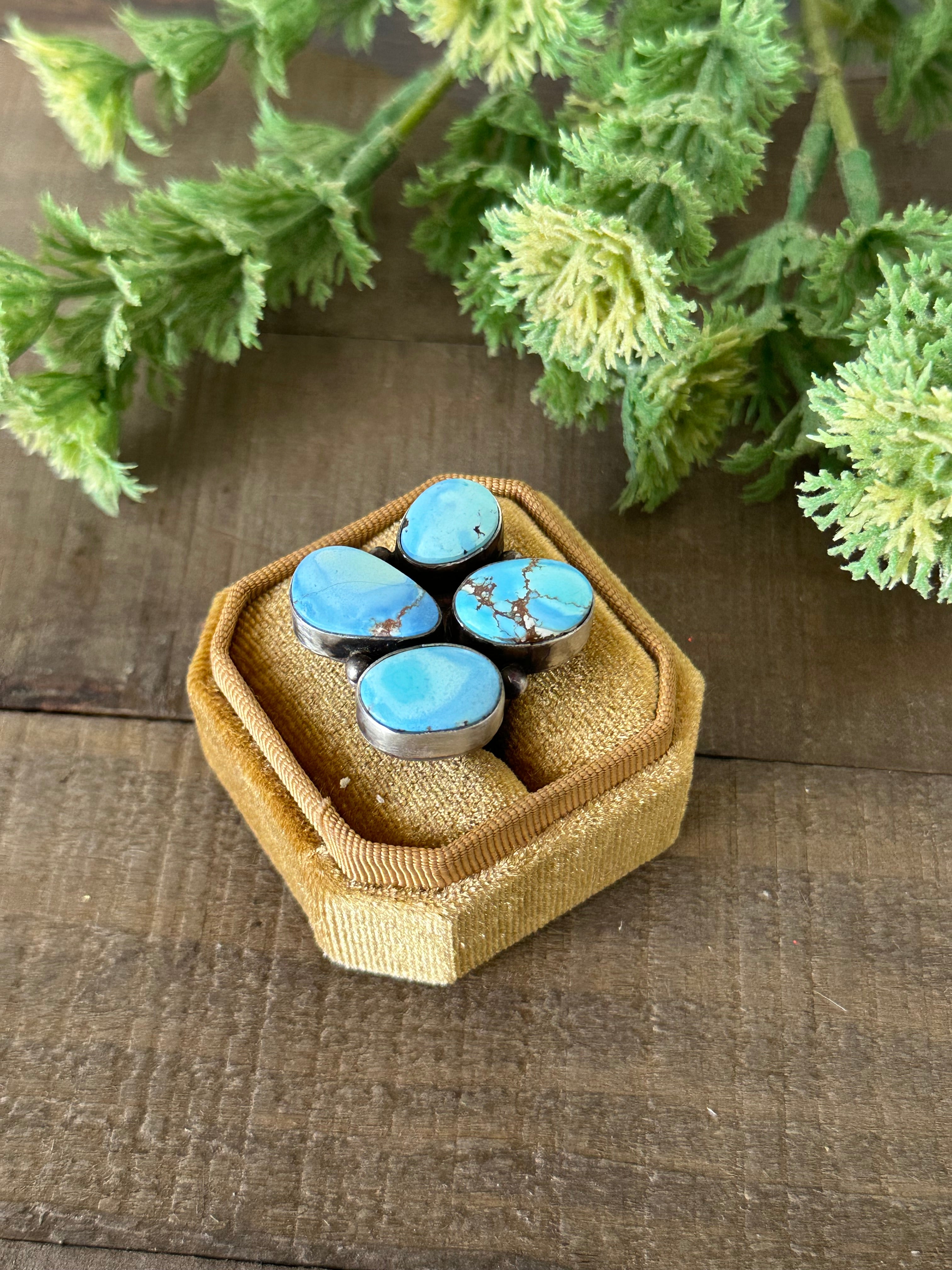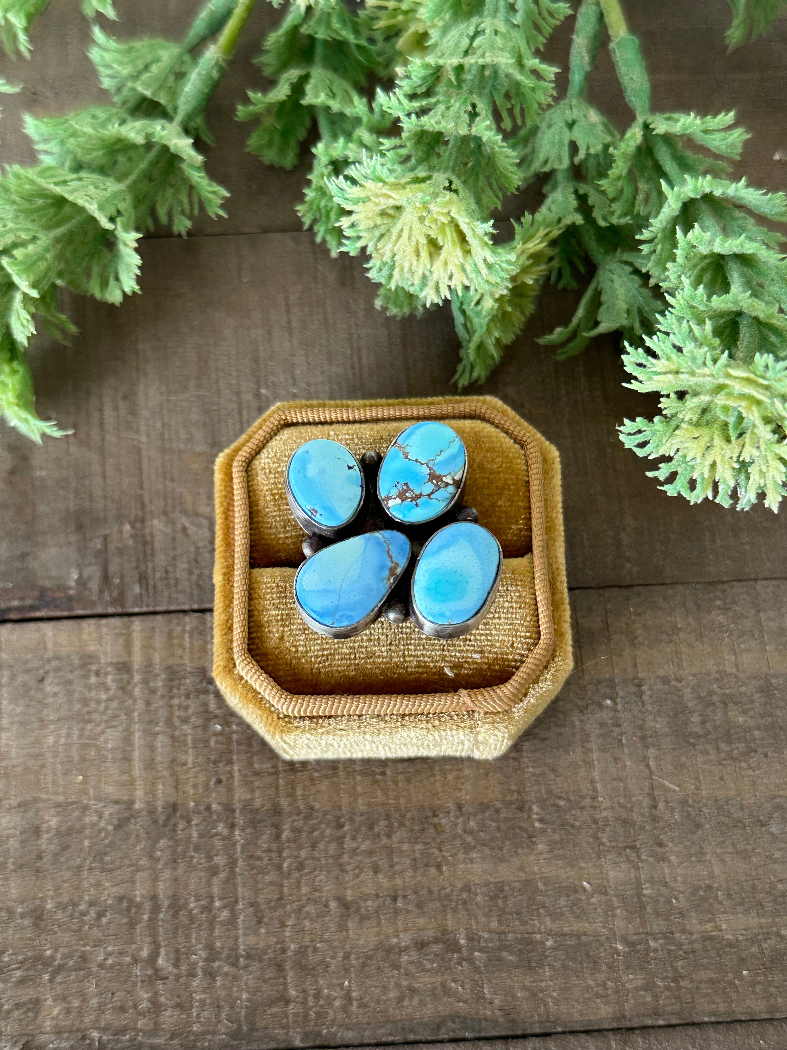 Navajo Made Golden Hills Turquoise & Sterling Silver Cluster Ring Size 5.75