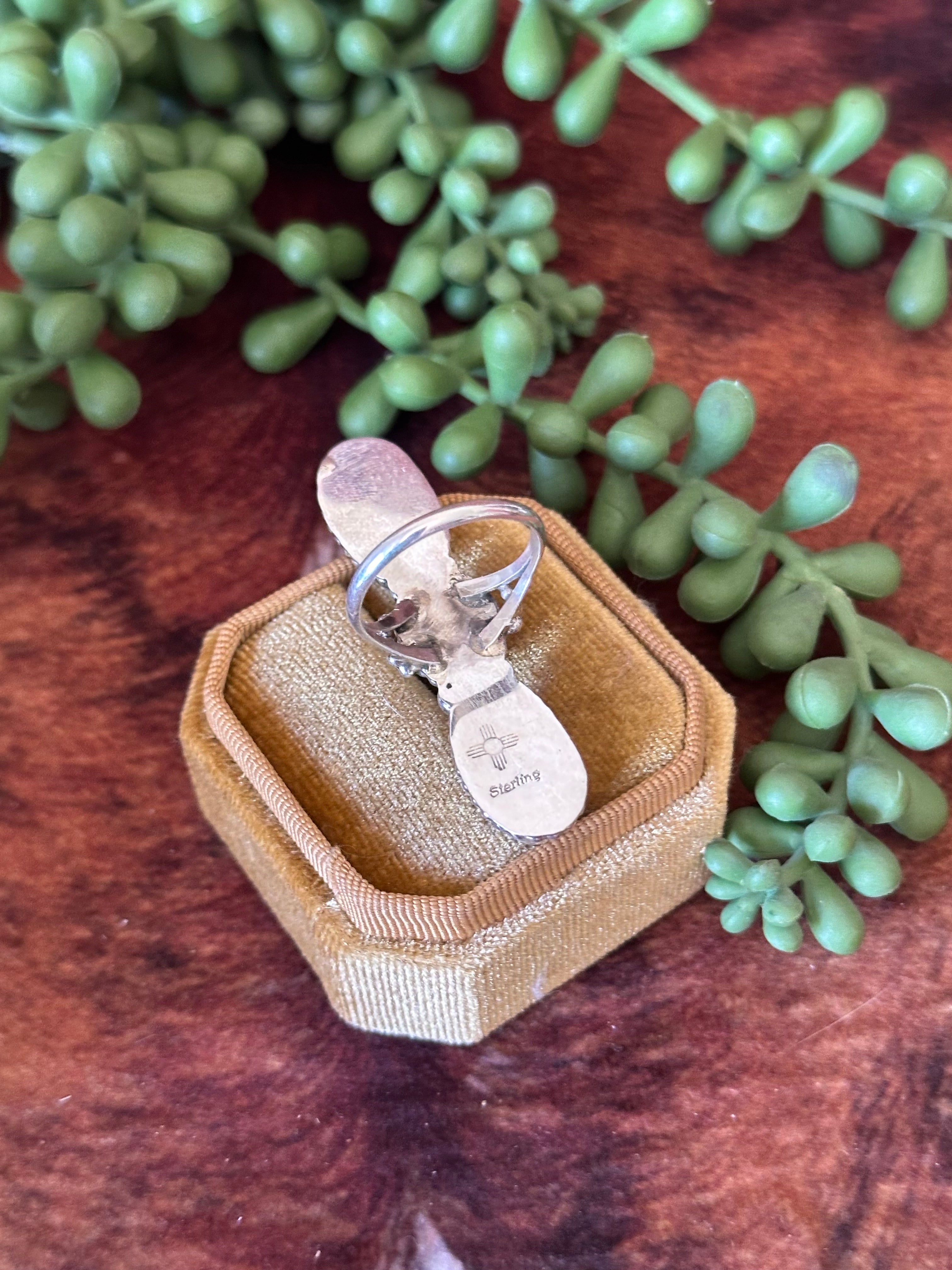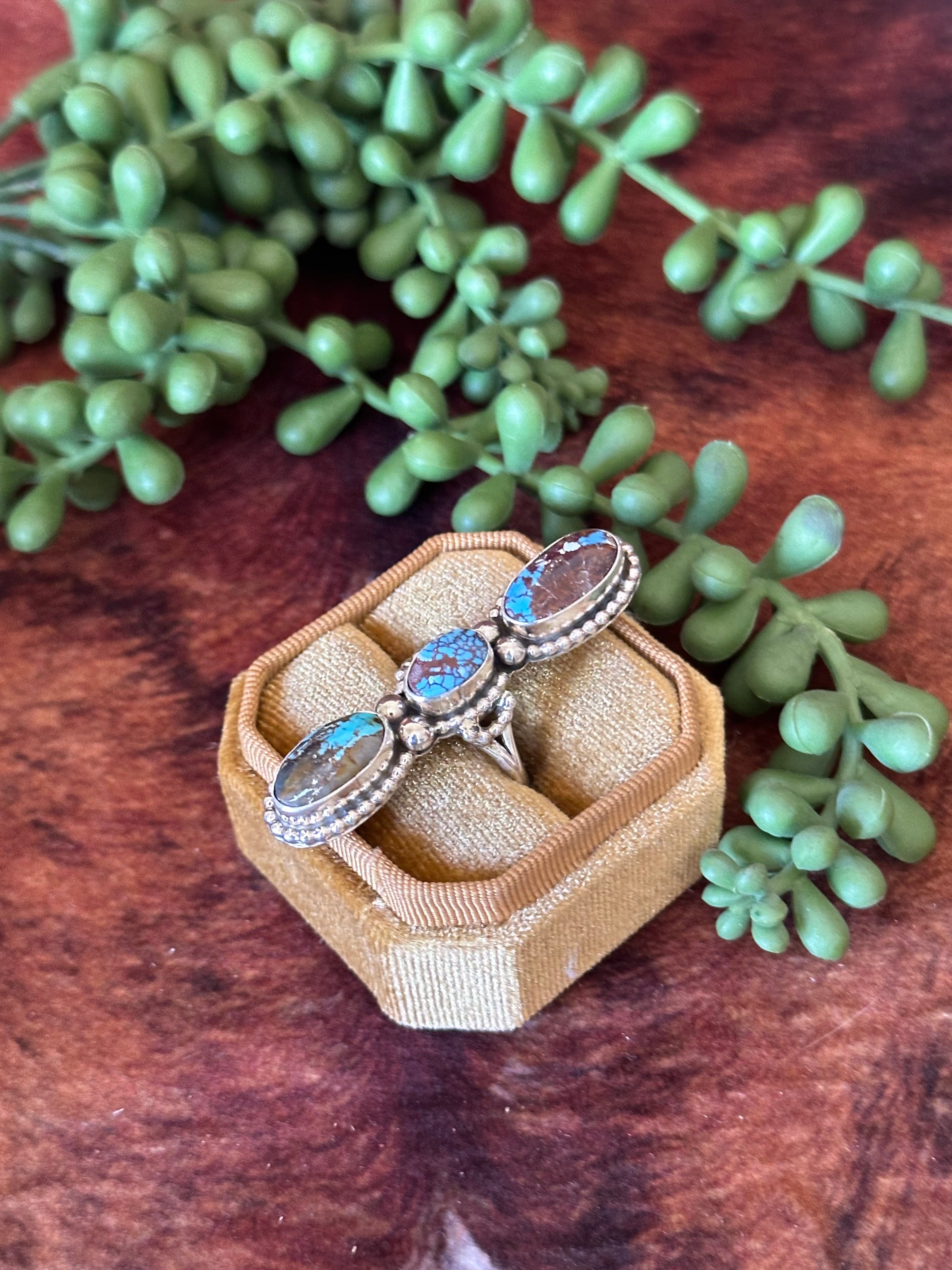 Navajo Made Golden Hills Turquoise & Sterling Silver Cluster Ring Size 8.75
