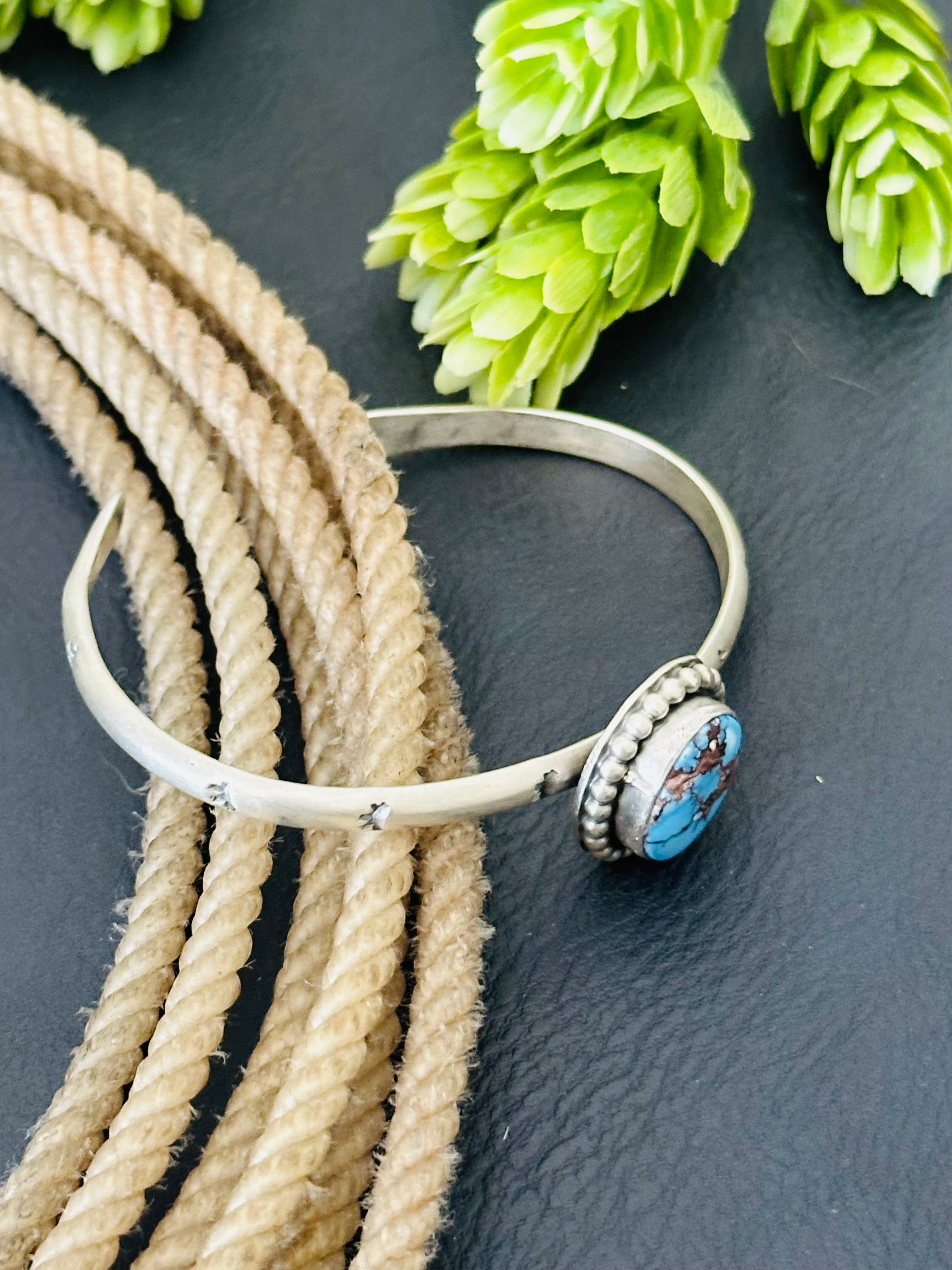 Navajo Made Golden Hills Turquoise & Sterling Silver Cuff Bracelet
