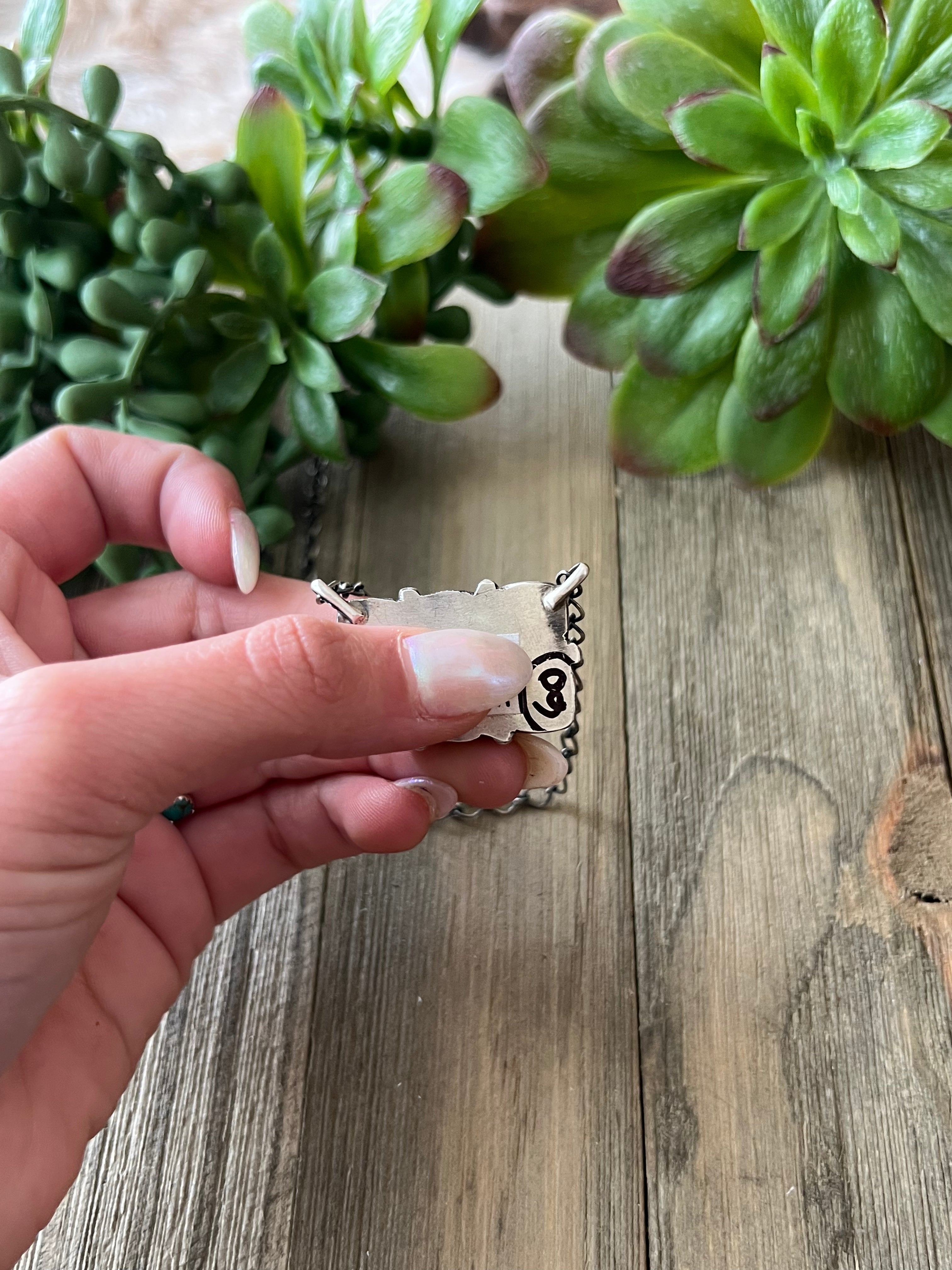 Navajo Made Kingman Turquoise & Sterling Silver Cluster Necklace