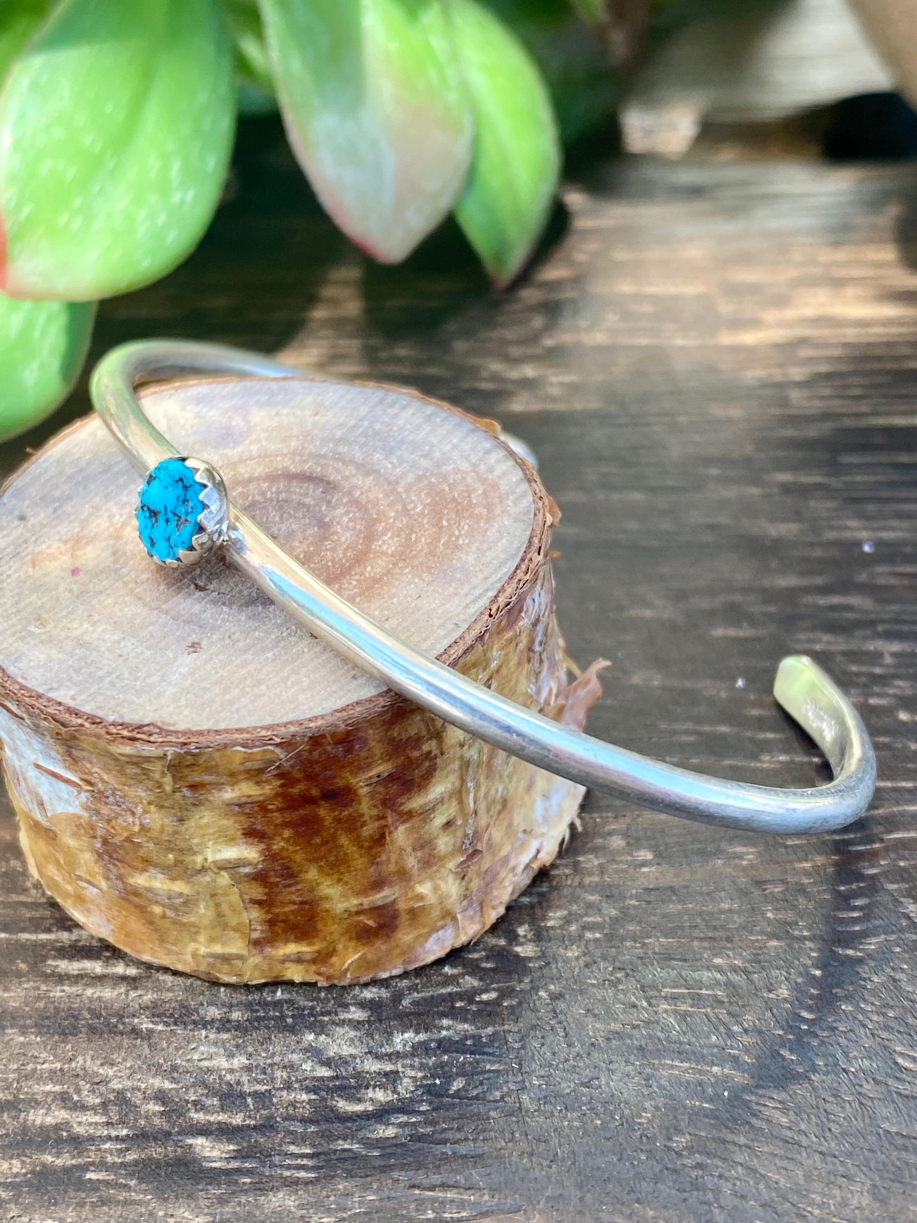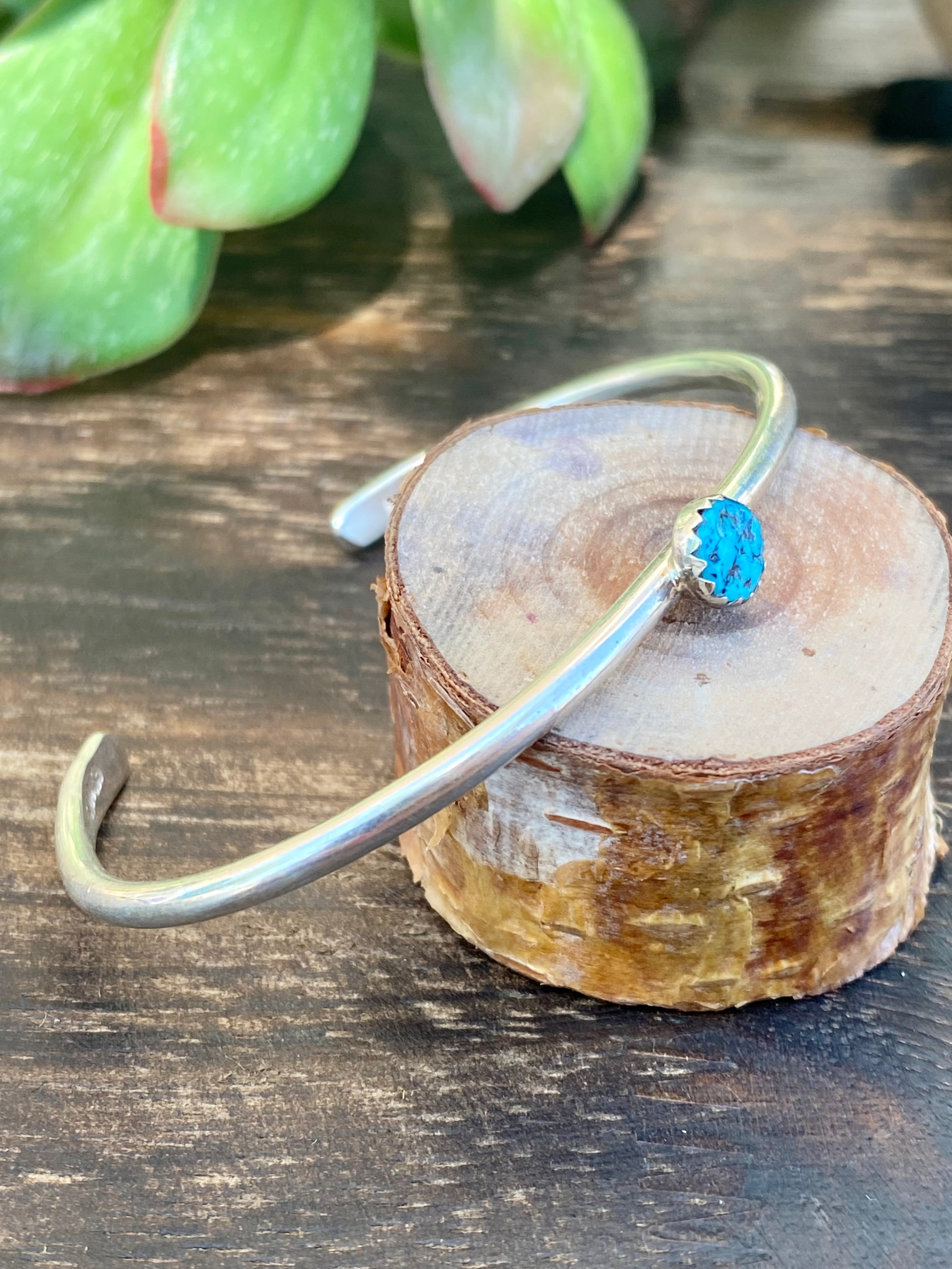 Navajo Made Kingman Turquoise & Sterling Silver Cuff Bracelet