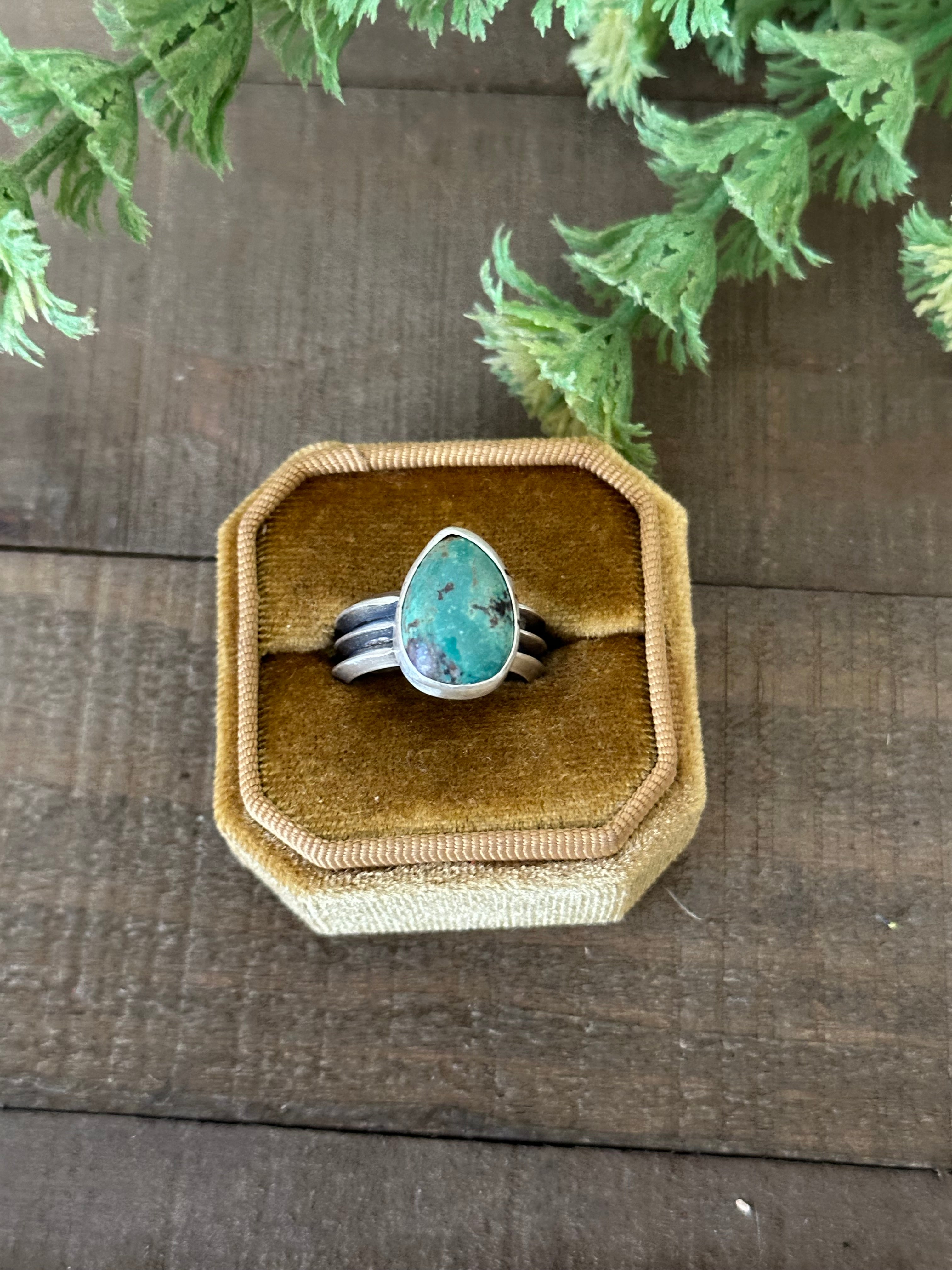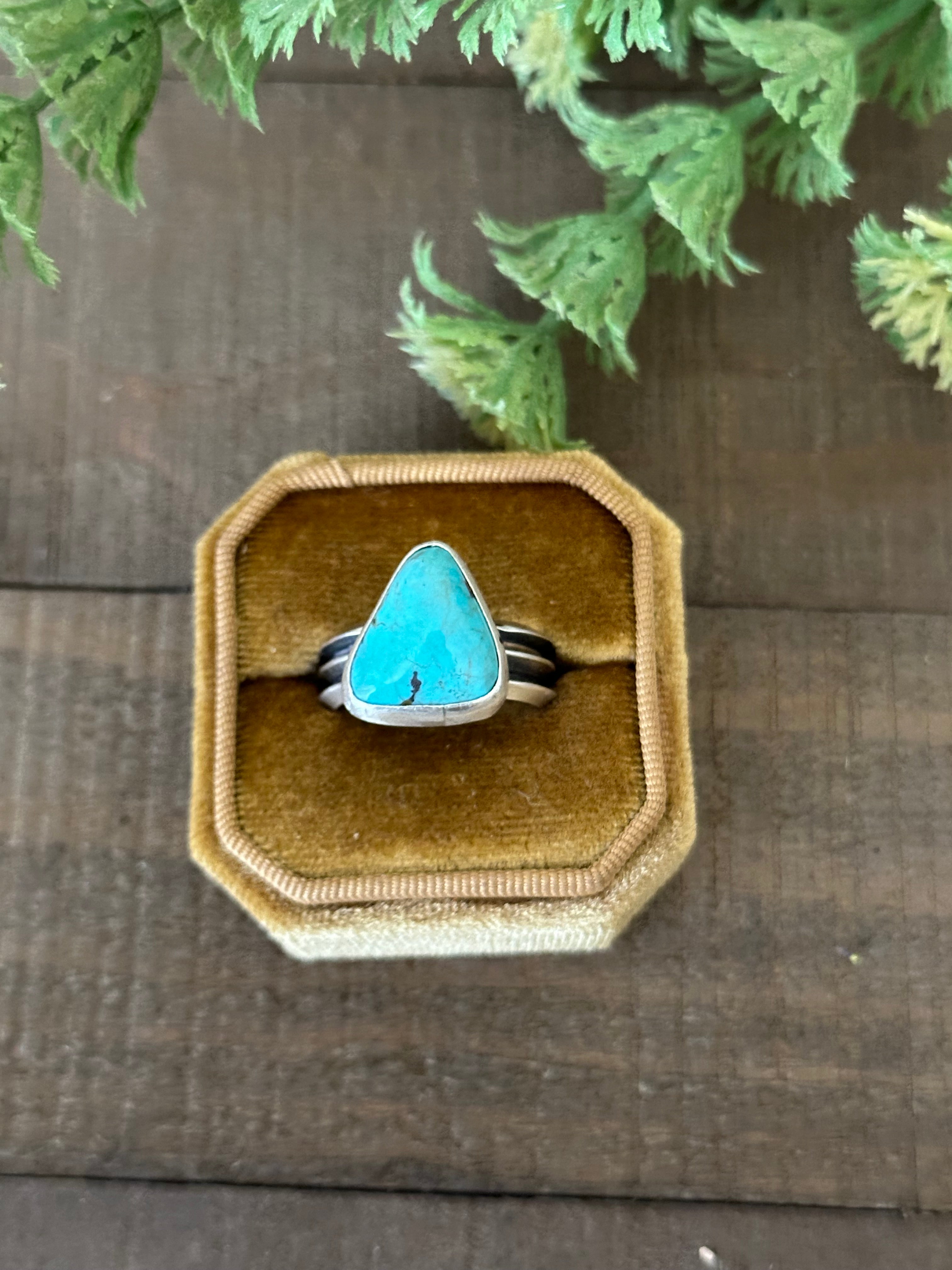 Navajo Made Kingman Turquoise & Sterling Silver Ring