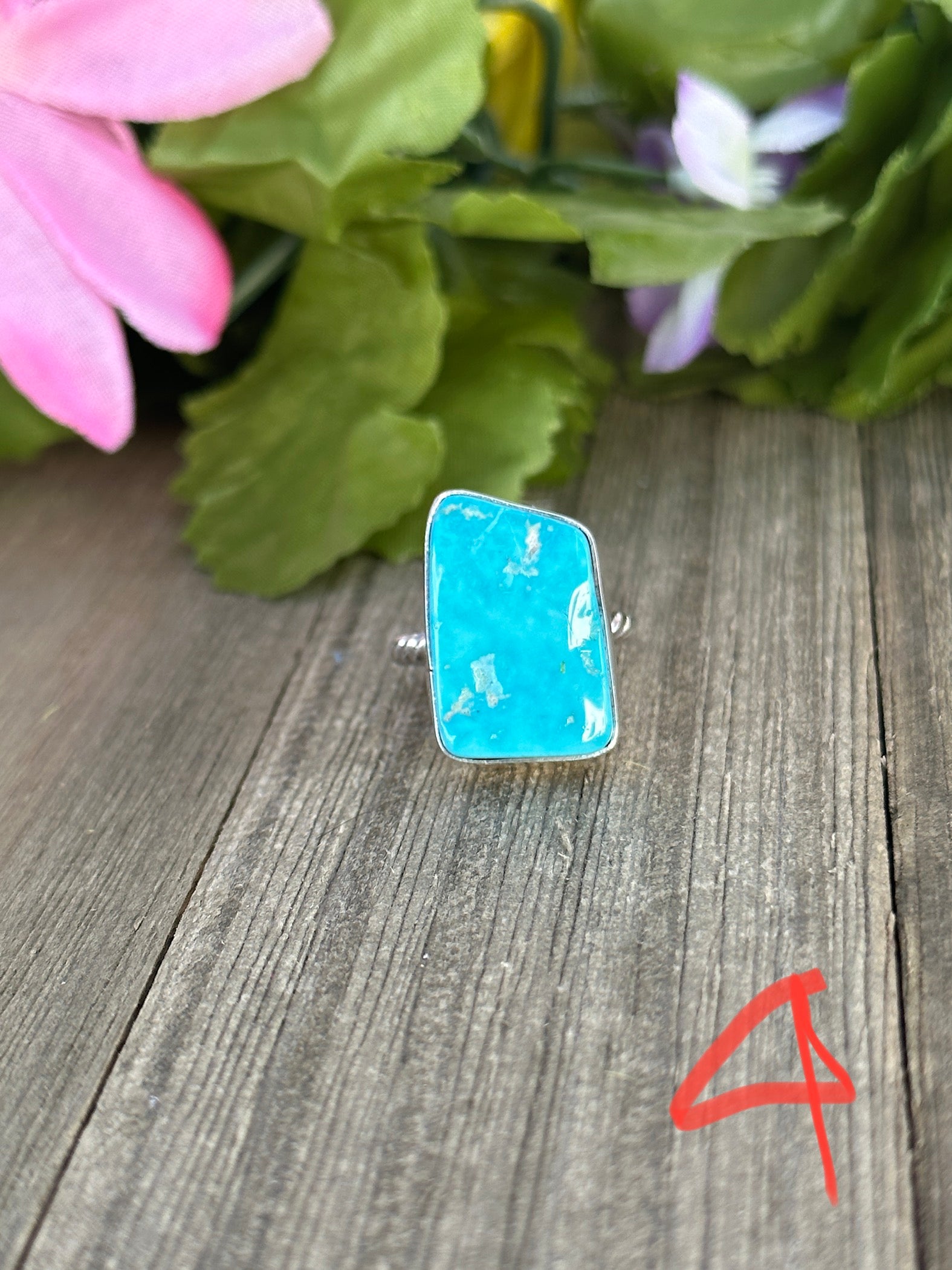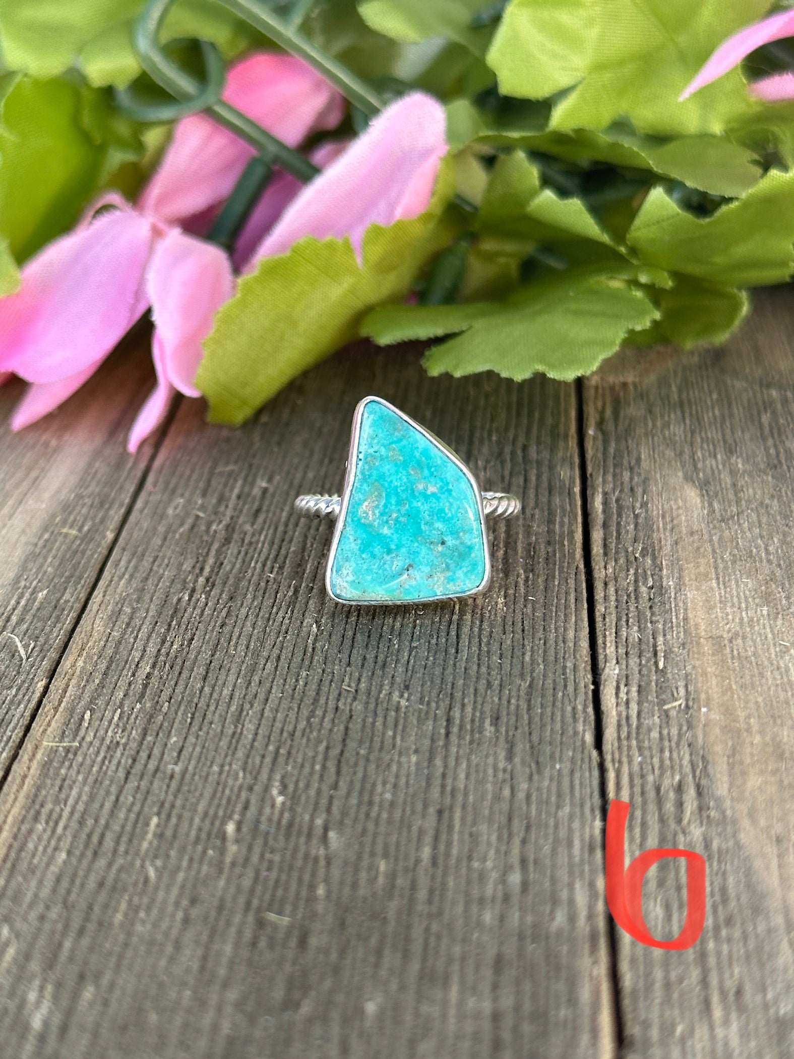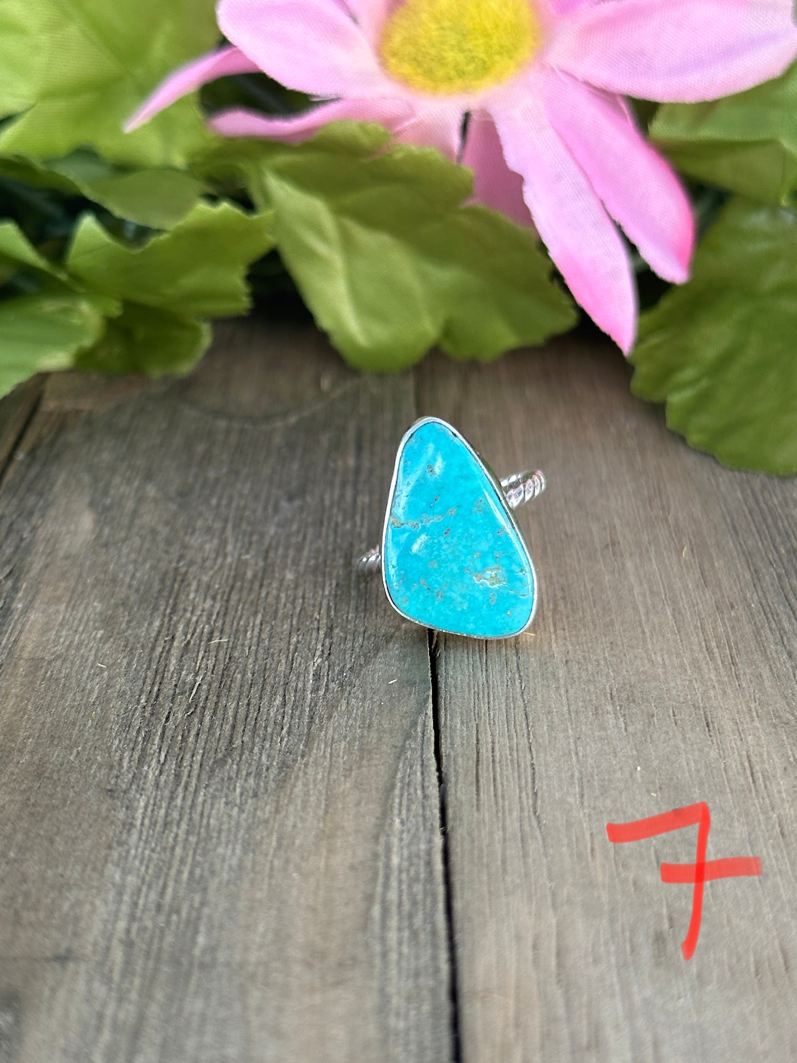 Navajo Made Kingman Turquoise & Sterling Silver Ring