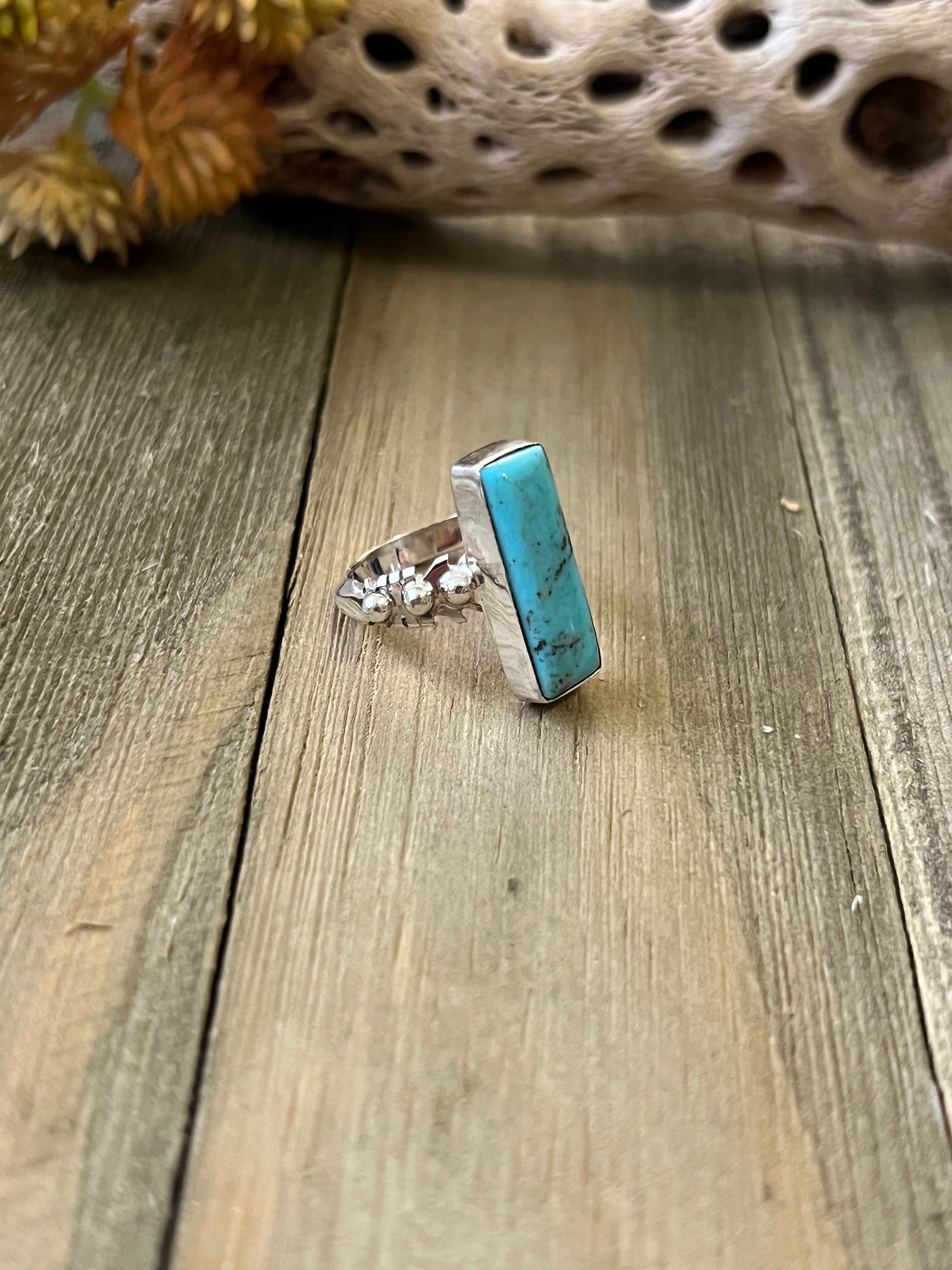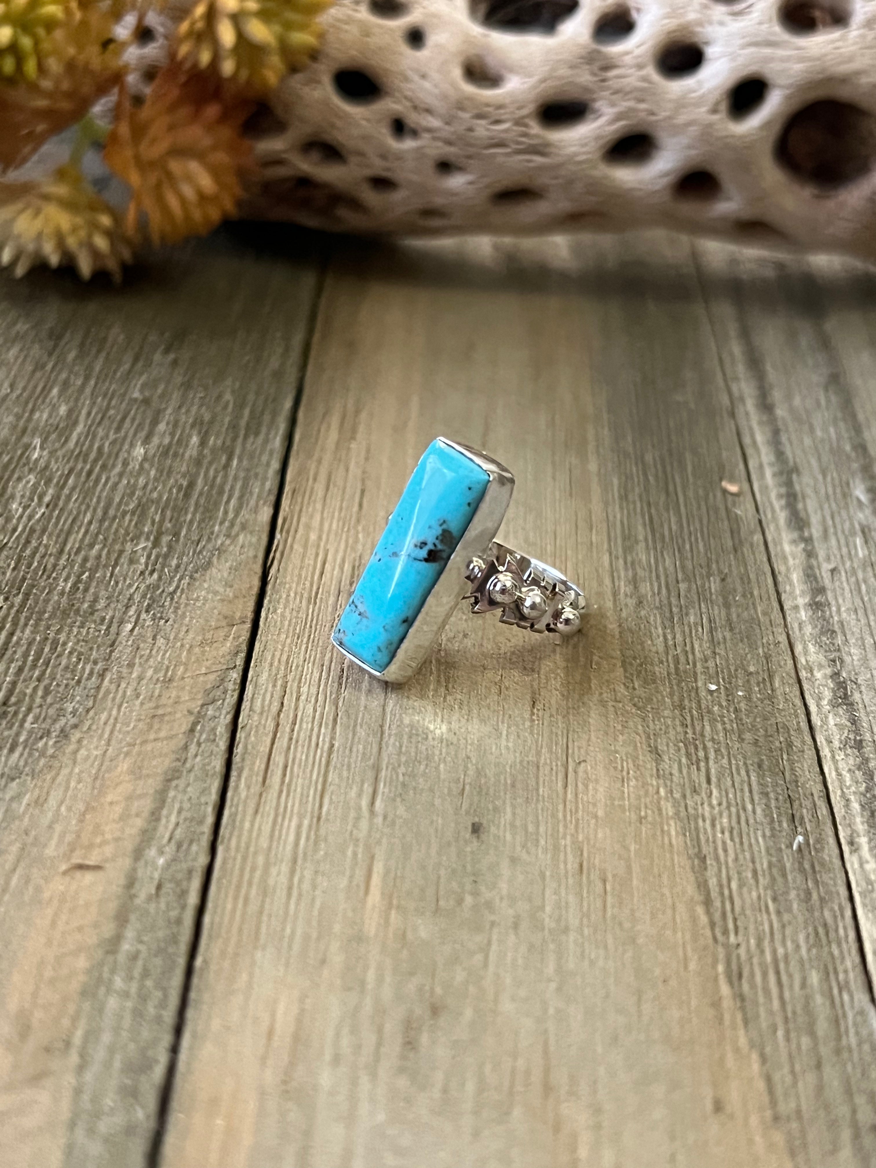 Navajo Made Kingman Turquoise & Sterling Silver Ring Size 5.75