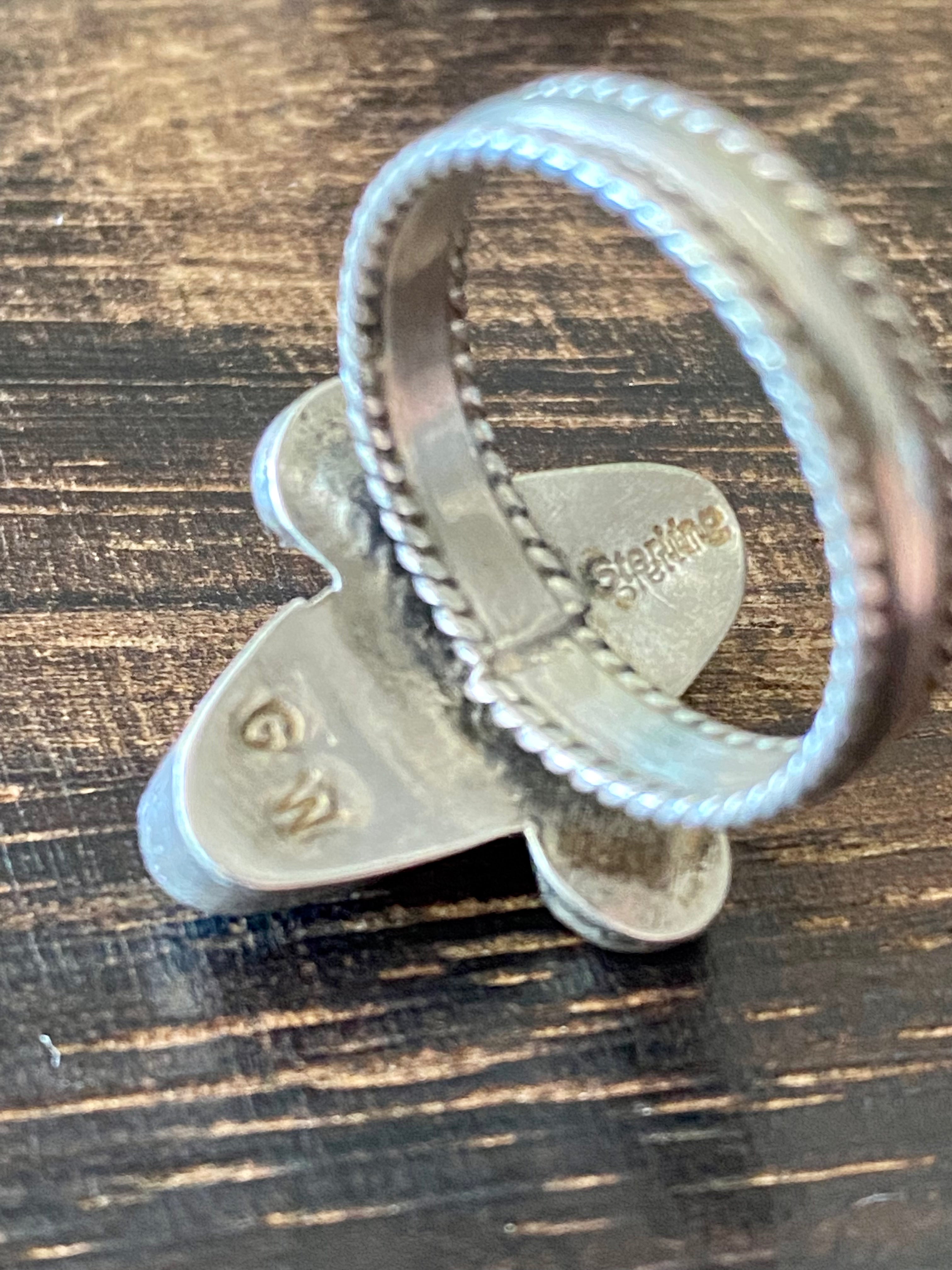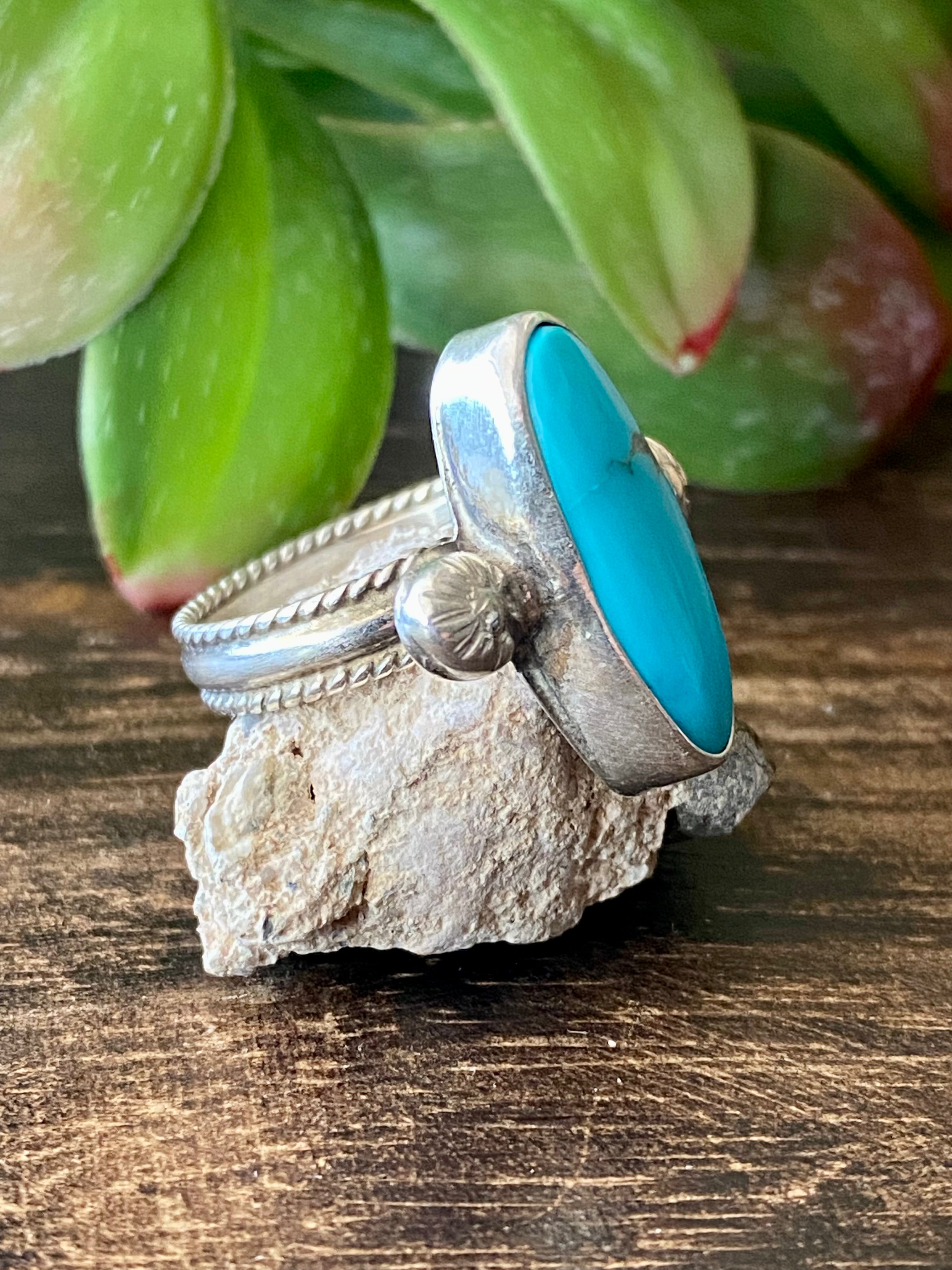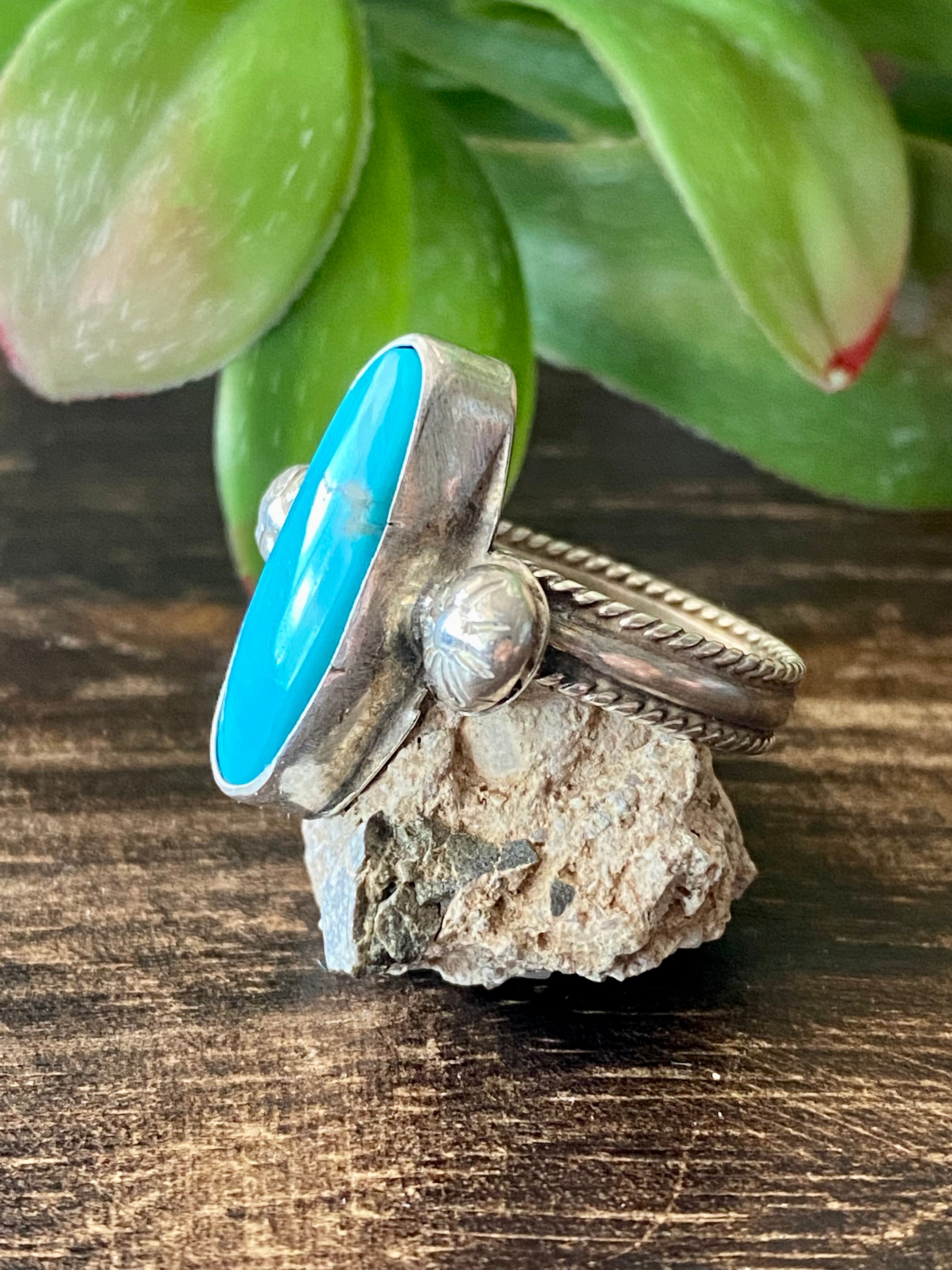 Navajo Made Kingman Turquoise & Sterling Silver Ring Size 7.75